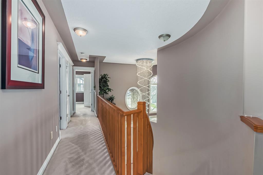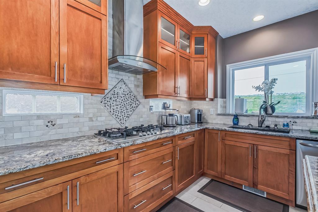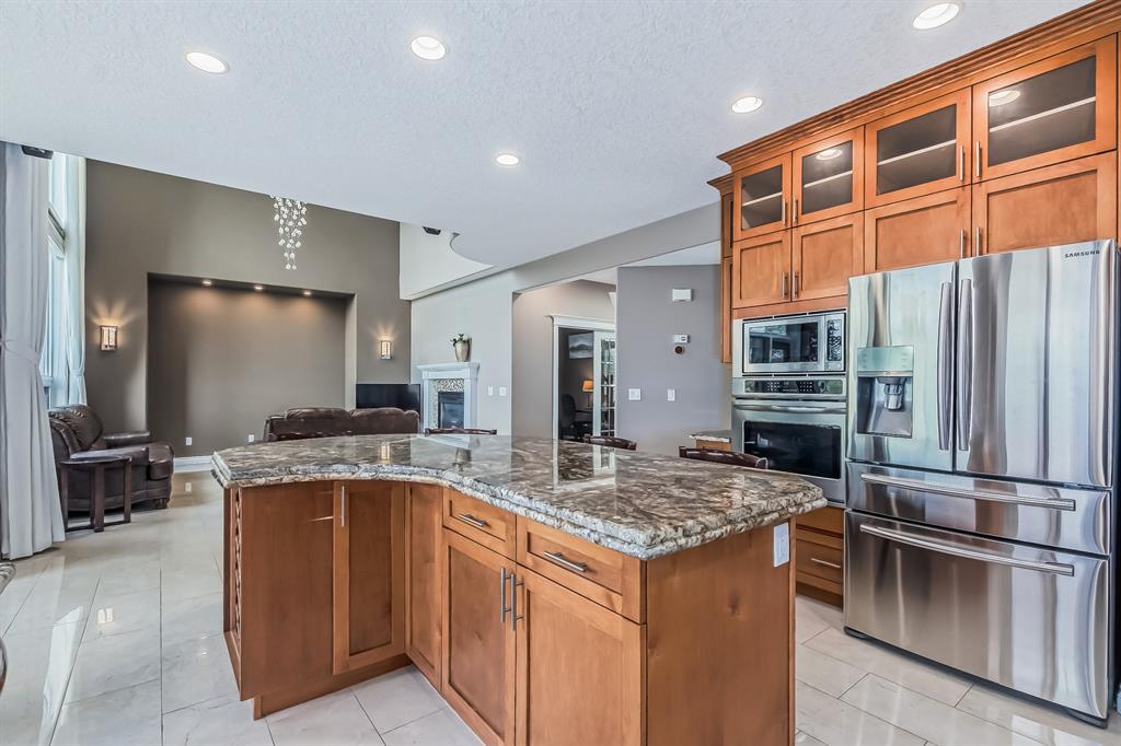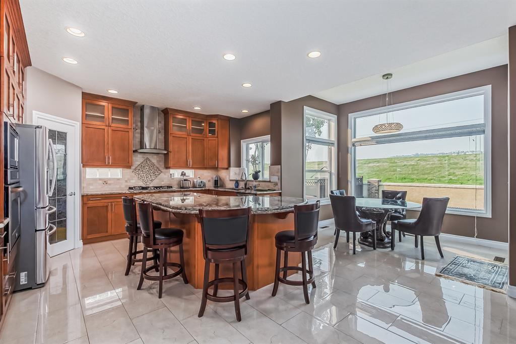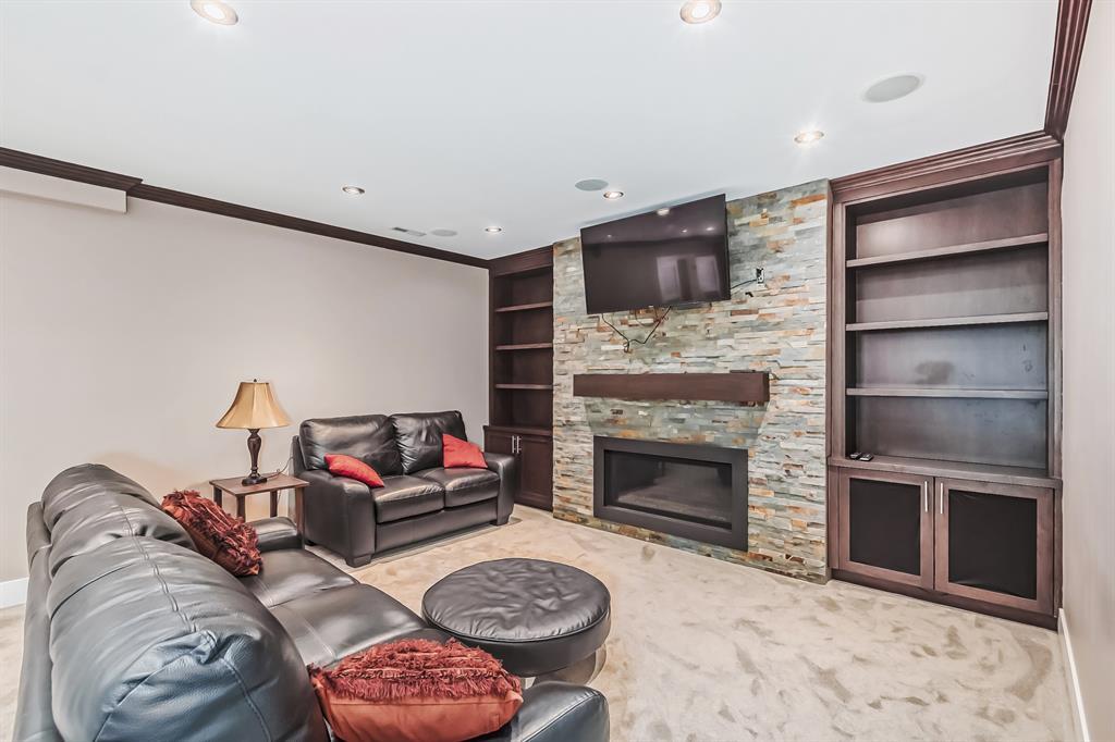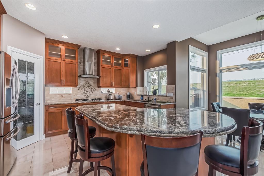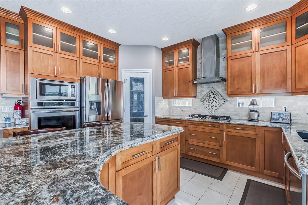 Incredible 2 storey home in prestigious Discovery Ridge. This custom-built home shows pride of ownership and craftsmanship throughout. Bright open plan w/open to above ceilings in the foyer, living room and family room. Elegant formal dining room w/coffered ceiling. Spacious kitchen featuring stunning maple cabintes, gas cooktop, high-end appliances, large island, and extended eating nook overlooking a private backyard with a high cedar wood fence. Family room with feature wall, overhead fan, and a 2-way gas fireplace which adjoins the den w/built-in shelves and double French doors. Upper floor features 3 oversized bedrooms, including Master w/sitting area, vaulted ceiling, 5 pc ensuite, tiled shower, and walk-in closet. Upgrades include central air conditioning, 9ft knock-down ceiling, rounded corners, water-softener, large argon-filled low E windows throughout, maintenance free duradeck w/gas BBQ hookup and more. The FULLY FINISHED basement (with permits) and almost 1300 SF of additional living space is perfect for a growing family or entertaining guests! The spacious rec room is ready for family movie nights with a cozy fireplace and custom built-ins. The WET BAR comes fully equipped with a full size oven, microwave, fridge and notably boasts ceiling height cabinetry with an abundance of cabinet space. TWO additional bedrooms, one including a beautiful en-suite bathroom with heated floors, striking tile and double sinks with a marble top vanity. Additionally, the basement offers a private area enclosed for your home gym, 5th bedroom, laundry and tons of storage space (id:22211)
