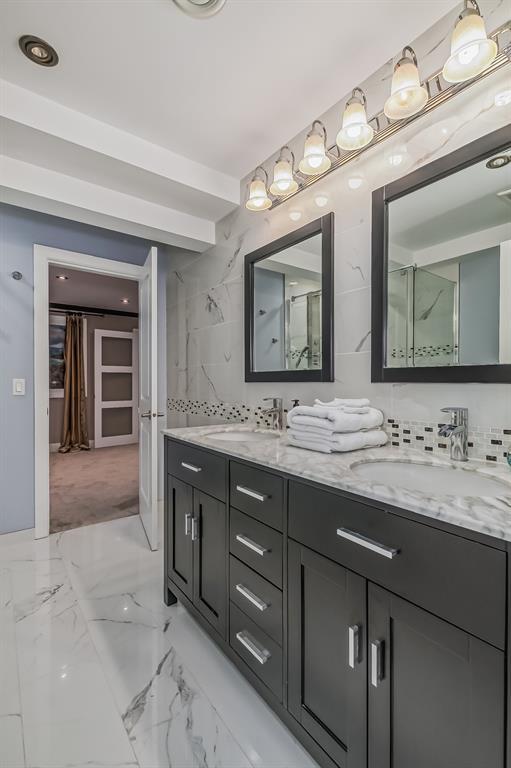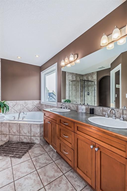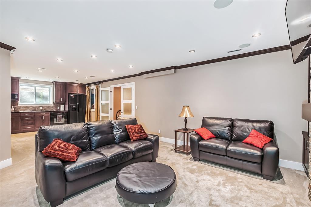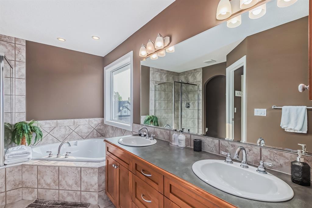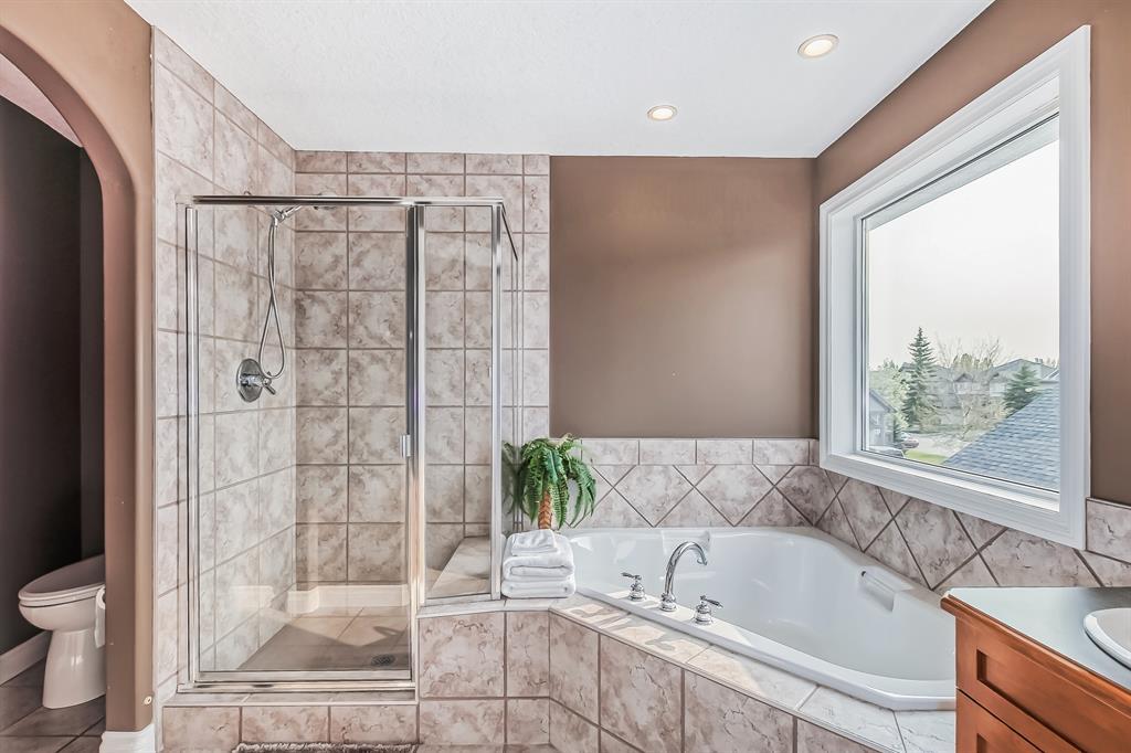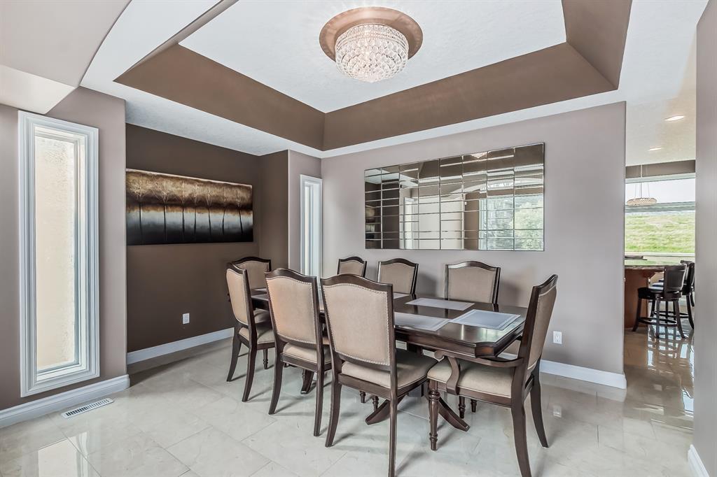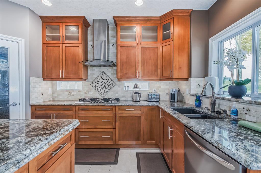 Incredible 2 storey home in prestigious Discovery Ridge. This custom-built home shows pride of ownership and craftsmanship throughout. Bright open plan w/open to above ceilings in the foyer, living room and family room. Elegant formal dining room w/coffered ceiling. Spacious kitchen featuring stunning maple cabintes, gas cooktop, high-end appliances, large island, and extended eating nook overlooking a private backyard with a high cedar wood fence. Family room with feature wall, overhead fan, and a 2-way gas fireplace which adjoins the den w/built-in shelves and double French doors. Upper floor features 3 oversized bedrooms, including Master w/sitting area, vaulted ceiling, 5 pc ensuite, tiled shower, and walk-in closet. Upgrades include central air conditioning, 9ft knock-down ceiling, rounded corners, water-softener, large argon-filled low E windows throughout, maintenance free duradeck w/gas BBQ hookup and more. The FULLY FINISHED basement (with permits) and almost 1300 SF of additional living space is perfect for a growing family or entertaining guests! The spacious rec room is ready for family movie nights with a cozy fireplace and custom built-ins. The WET BAR comes fully equipped with a full size oven, microwave, fridge and notably boasts ceiling height cabinetry with an abundance of cabinet space. TWO additional bedrooms, one including a beautiful en-suite bathroom with heated floors, striking tile and double sinks with a marble top vanity. Additionally, the basement offers a private area enclosed for your home gym, 5th bedroom, laundry and tons of storage space (id:22211)
