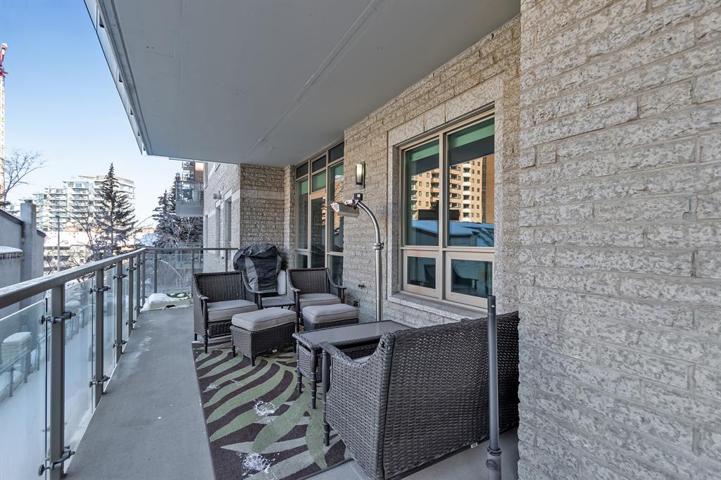 //Open House - Saturday April 22, 2023 1:00-3:00pm// Welcome to 305 701 3 Avenue SW, an elegant executive condo located in the heart of downtown Calgary. Situated on the third floor of a luxurious, concrete building, this two-bedroom, two-bathroom condo features an open concept floor plan with floor-to-ceiling windows that provide plenty of natural light. The 1,100 square feet of living space feels serene and calming; featuring freshly painted neutral colours, light toned cabinetry, and spa like bathrooms. The elegance continues outside, with a massive balcony, with both west and south exposure. The modern kitchen is complete with stainless steel appliances, granite countertops, and plenty of cabinet and counter space for the chef in your life. The living room and dining area are perfect for entertaining, highlighted by downtown views. Unwind in your spa-like master suite, with soaker tub, separate glass shower, and double vanity, plus a generous walk in closet. Let’s not forget about the 4-legged family members, this building is pet friendly and ultra convenient for river access and walking paths! To complete your elevated lifestyle, this unit boasts central air conditioning, in-suite laundry room, with storage, two titled parking spots, a car wash bay, and business hours concierge service. Immerse yourself in the ease of downtown living with restaurants, shopping, entertainment and the river just steps away. (id:22211)