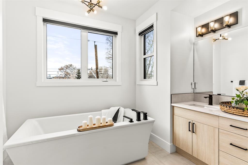Welcome to this immaculate custom built home located right in the heart of Inglewood! The attention to detail in this home is fantastic! Gorgeous exterior featuring brick, HARDIE BOARD and Lux Steel siding with complimentary colors! TONS OF UPGRADES INCLUDING: 9 FT CEILINGS ON ALL 3 FLOORS, TANKLESS BOILR SYSTEM , TRIPLE PANE WINDOWS, FLAT CEILING, 5000 BTU CENTRAL A/C, OAK STAIRS, HEATED FLOORS In ALL Bedroom bathrooms, HEATED FLOORS IN BOTH BASMENT AND GARAGE, CUSTOM FLOATING STAIRCASE, Commercial grade STEAM SHOWER, GEMSTONE LIGHTS, Bluetooth Smart locks on entry doors AND MORE! This home offers over 2400 SQ FT of Quality Luxurious Living Space with 3 Bedrooms, 4 Baths and Attached Single Garage! The garage is ONE OF A KIND as it is a fully finished space featuring HEATED, EPOXY FINISHED FLOORS WITH IT'S OWN THERMOSTAT! Entering the main floor, you will find a family room, dining with access to your deck and half bath. Enjoy the evening sunset from this homes West facing raised front porch, featuring larger glass patio doors opening into the family room. The kitchen is a chef's dream; fully equipped with a large kitchen island, custom cabinets and top of the line Stainless Steel Appliances. The usage of space on the upper level is amazing with no hallways it features 3 spacious bedrooms and 2 FULL baths (ensuite included). Of the 3 bedrooms, 1 is the master that comes with its own 5 PC (STEAM SHOWER) ensuite, Down town views, and W.I.C! The 2 other bedrooms share Jack and Jill access to a washroom! EVERY BEDROOM HAS DIRECT ACCESS TO A WASHROOM! The laundry room is conveniently located on the upper level. It does not end here! The FULLY FINISHED BASEMENT BOASTS HYRDONIC HEATING (HEATED FLOORS)!!! Offering a spacious rec room and FULL bath! The landscaping in the backyard is elegant, private and maintenance free, featuring a patio that is great for gatherings during the summer time! Inglewood is an awesome neighborhood that is blessed with great restaurants, cool s hops, river front cycling pathways, Harvie Passage (summer waterpark), and an amazing view of the Bow River! So if you are talking about quality, appearance, functionality or location? This home has it all! (id:22211)