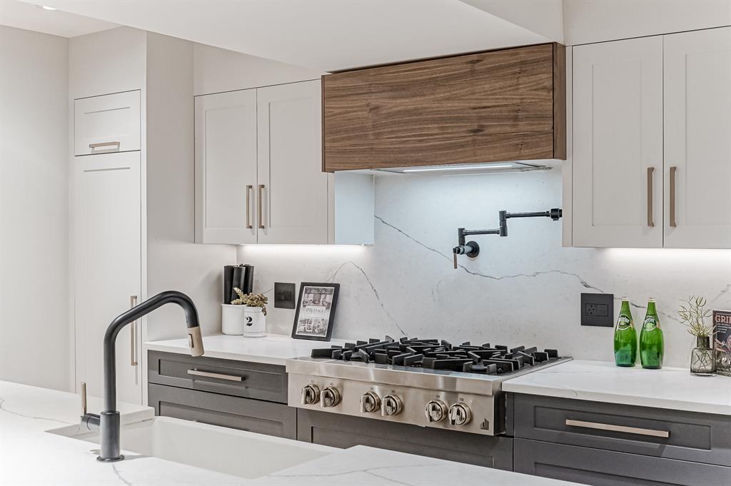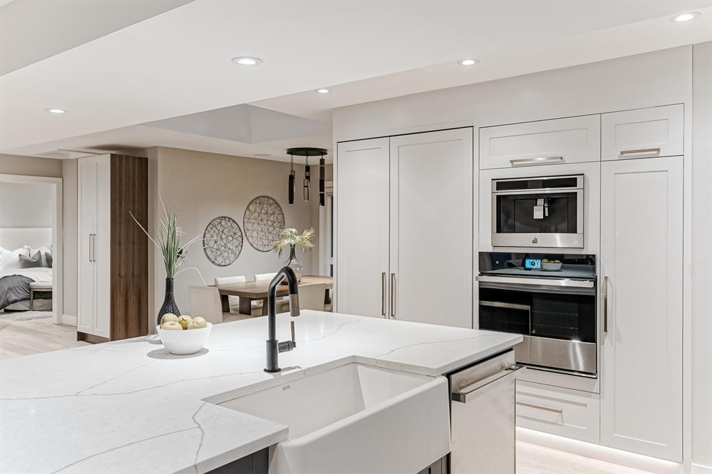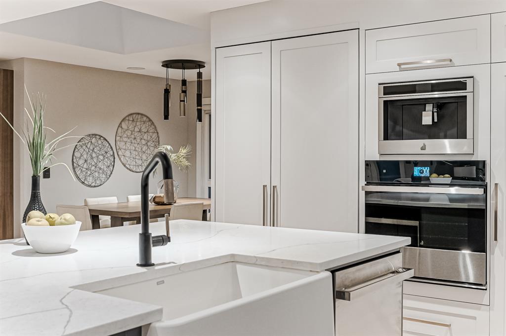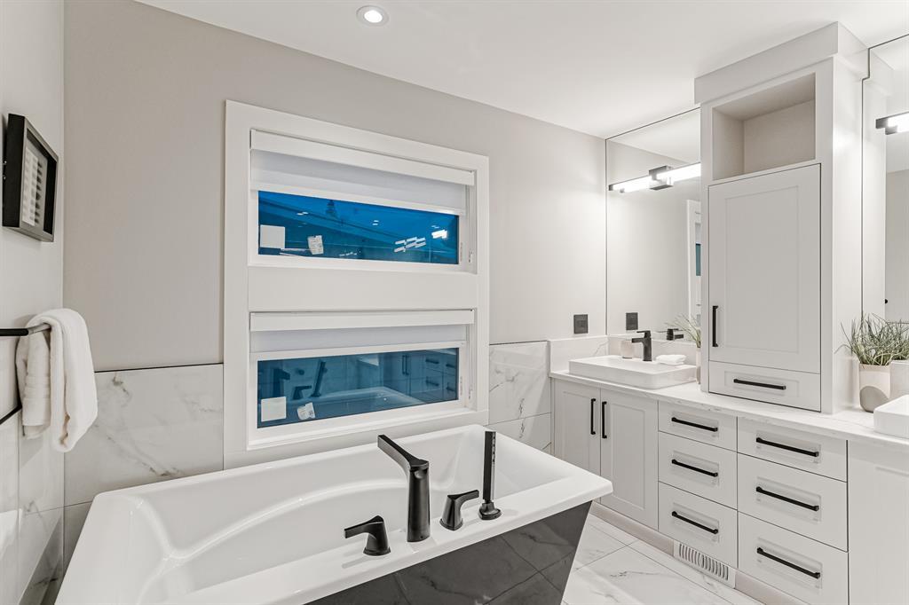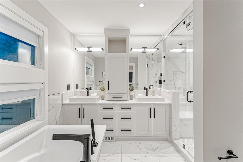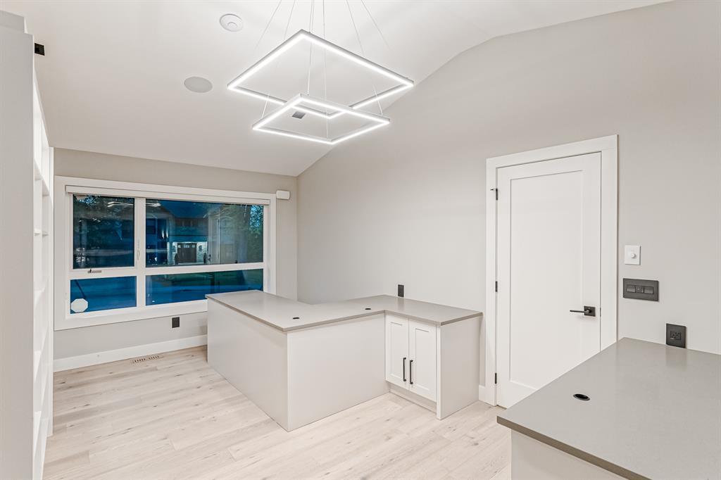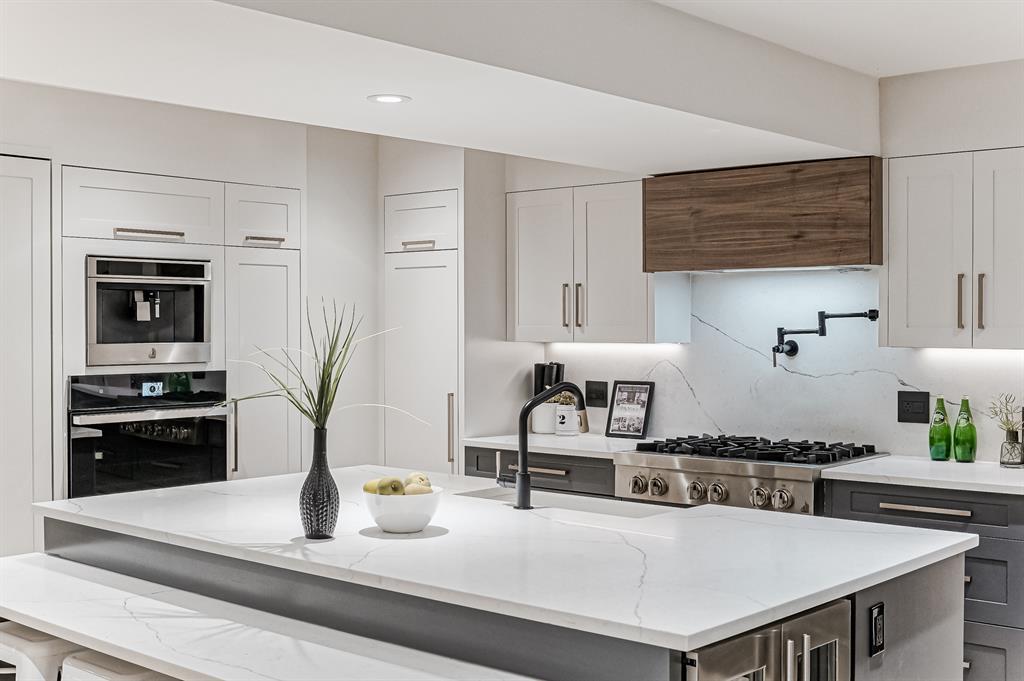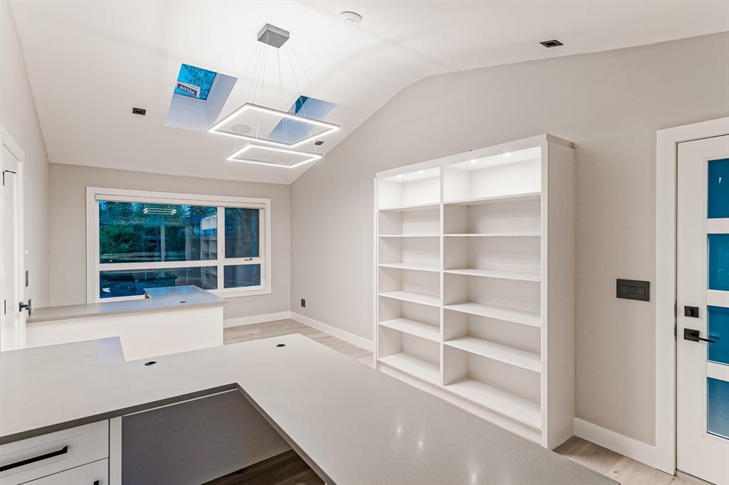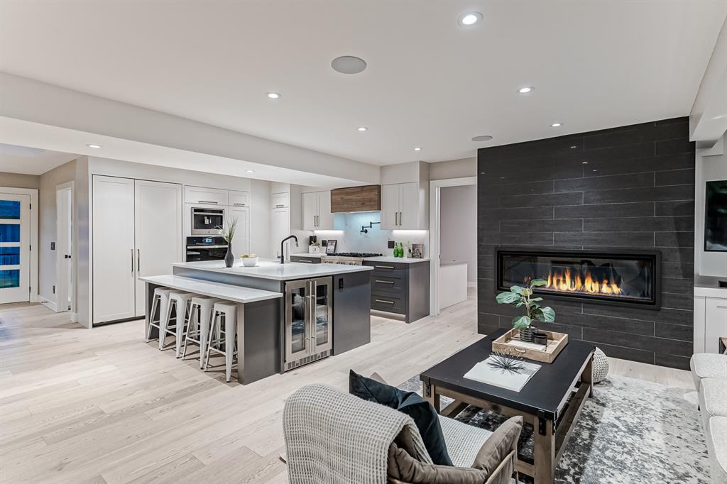 Open House July 22, 1-3 PM. 707 Imperial Way SW is a charming single-family home located in the highly desired community of Britannia. This property offers a comfortable and inviting living space, ideal for individuals or families seeking a cozy and well-maintained residence. Completely gutted and renovated, modern and timeless exterior, all new interior including plumbing, new electrical, new triple car garage with 220 volt and electric car charging station already put in for you. Upon entering the house you step into a well-lit open floor plan, welcomed by natural light with a total of 5 skylights. Engineered hardwood throughout the main floor, the living room features a stunning T60-inch linear gas fireplace. Chef's dream kitchen offers a combination of style and functionality. Exquisite quartz countertops, full stone backsplash, premium 6-Burner gas range, pot filler, farmhouse Silgranit sink, and Jenn-air refrigerator with panels all blending in seamlessly with the surrounding cabinetry. Complete with a beverage cooler, LED under cabinet, and kick lighting. The office features custom desks with matte quartz desktops, a vaulted ceiling with skylights for ample natural light, a custom bookcase with lighting, a separate entrance, and Ethernet plug-ins at each desk with an overhead access point. The powder room features a decorative wall-mount faucet on a black stone backsplash with custom Walnut inlays, exuding a stylish and sophisticated ambiance. The main primary bedroom offers a custom built-in walk-in closet with LED underlighting, providing functionality and a touch of elegance. Its en-suite is designed for relaxation and luxury, featuring a soaker tub, a spacious steam shower with rainfall shower head and body jets, a niche with LED lighting, heated floors, and dual vanities. Similarly, the second primary bedroom includes a cabinet with LED lighting and heated floors, ensuring comfort and sophistication in this private retreat. The basement offers two bedro oms, a family room, and a wet bar with a vanity, beverage cooler, and custom underlit LED shelving. The family room is a "home theatre", prepped for surround sound with built-in ceiling speakers, a laundry area with stacked appliances and storage, a custom linen closet, and bedrooms with roughed-in TV plugs/ethernet and custom closet built-ins with LED lighting. Additionally, there is a washroom in the basement with heated floors, body jets, and a shower wand. (id:22211)