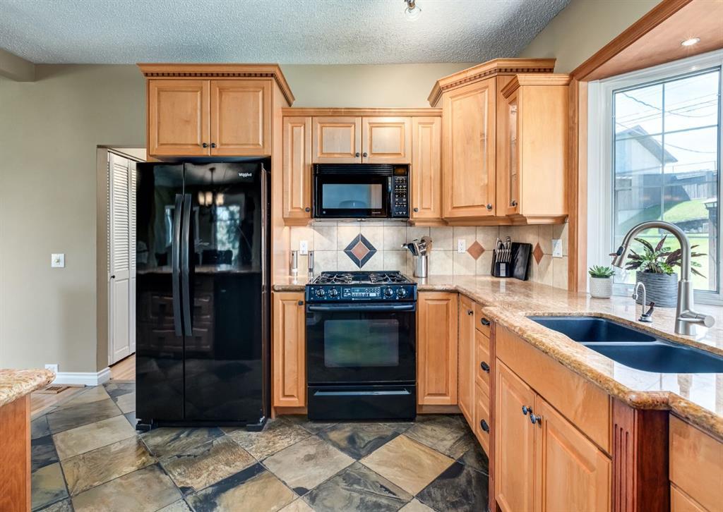 This is the moment you've been eagerly awaiting! Prepare to be amazed because this impeccable home surpasses all others. With its perfect combination of spaciousness + tranquility, this executive 4-bedroom home is situated in an exceptional location, backing onto green space. A solidly constructed residence that will exceed the expectations of even the most discerning buyer. Opportunities like this are rare. Imagine having one of the largest private yards you've ever seen with a 4 zone sprinkler system & an oversized 33 ft garage mahal boasting a remarkable 796 sq ft of space! The yard is absolutely enormous, spanning 13,616 sq ft of meticulously manicured, pet-friendly fenced space exclusively for your enjoyment. It offers numerous seating areas where you can relax and unwind. Step inside this immaculate, lovingly maintained home & be greeted by a fabulous open & bright layout. With over 2100 sq ft of finished living space, including 4 bedrooms & 2 bathrooms, it offers the perfect setup & is located on a quiet cul-de-sac. From the moment you enter, you'll be captivated by the serene elegance & extensive upgrades. The classic wood floors are not only stylish but also low maintenance. The large living room features high-end turn & tilt windows, while the formal dining room sets the stage for memorable gatherings.The open kitchen is a chef's dream, boasting ample cupboard and counter space, a stylish upgraded backsplash, premium granite counters, sleek black appliances & gas stove. The kitchen bay nook area provides a breathtaking view of the park-like yard & offers direct access to the yard itself, making it perfect for hosting friends & enjoying evening barbecues while taking in the splendid yard & enjoying the hot tub in any season.The spacious primary bedroom is perfectly situated for ultimate privacy and offers generous closet space. The fabulous 4-piece bathroom features high-end quality fixtures and a convenient storage closet is across the hall. The second be droom also impresses with its ample size, while the third bedroom can easily serve as a home office, with a patio door providing access to the yard. The fully finished basement has in floor heat and is flooded with light, thanks to its large windows and additional lighting. The recreation room provides ample space for a sectional couch, perfect for cozy Netflix nights, & there's even room for a games area. Another sizeable bedroom awaits across the hall from a show-stopping 3-piece bathroom complete with a steam shower. The basement also offers a storage room & a large laundry room with additional storage or a possible kitchenette, ideal for those wanting to rent out the basement. Additional highlights of this remarkable home include ample parking, newer windows, central AC, central vacuum, upgraded furnace + HWT and landscaping. The vibrant area offers an abundance of shopping, LRT& dining options just steps away, Southcentre Mall, schools, skate park and more. A must to see, Call Today! (id:22211)