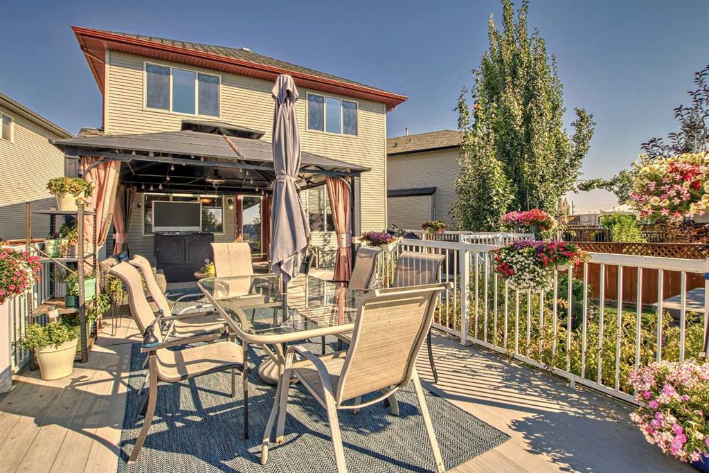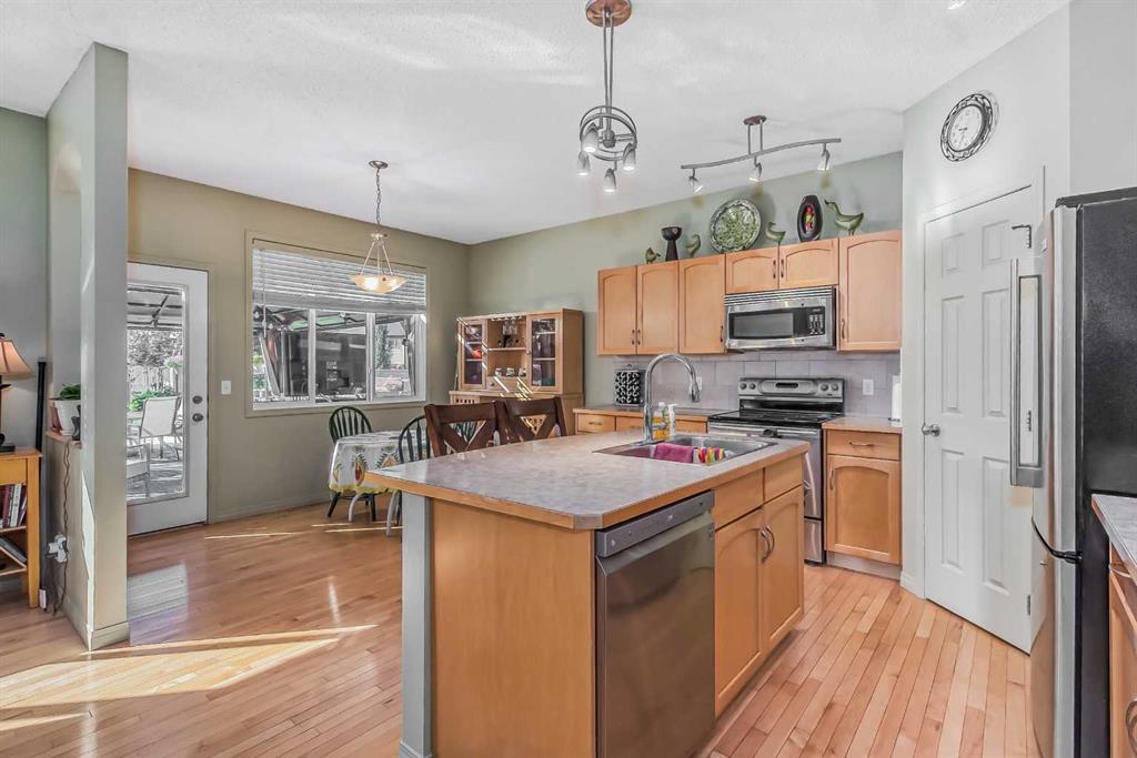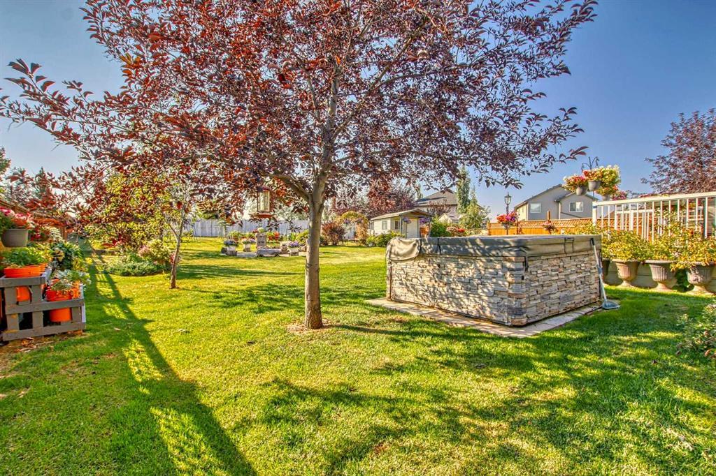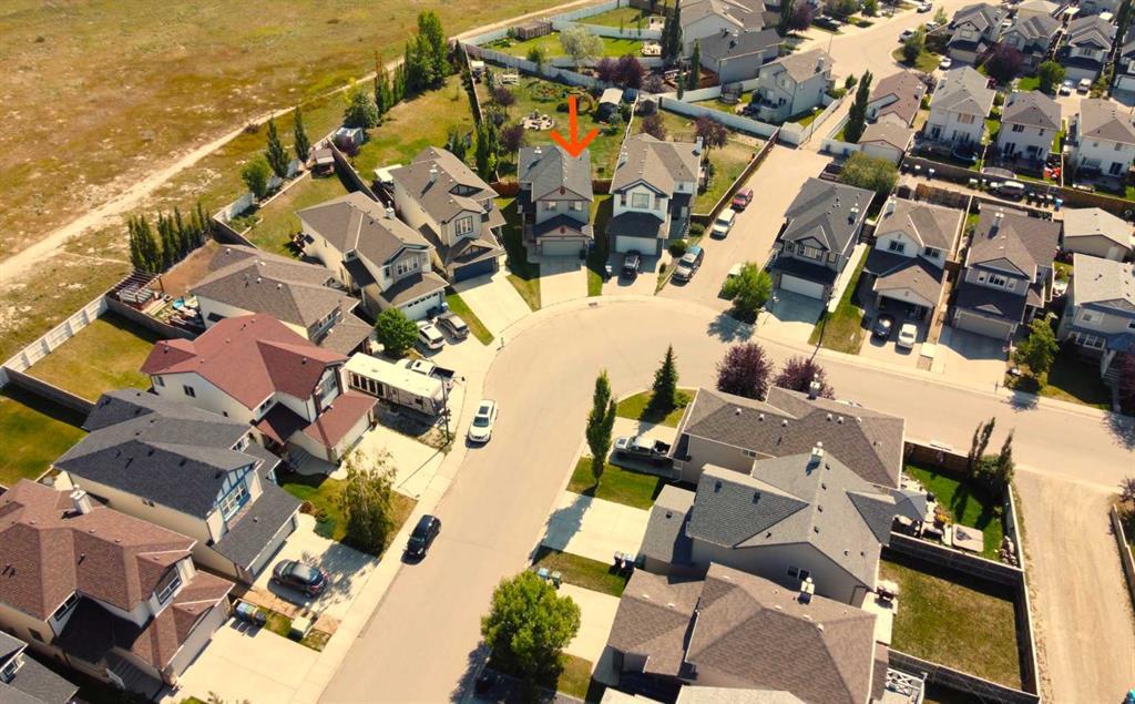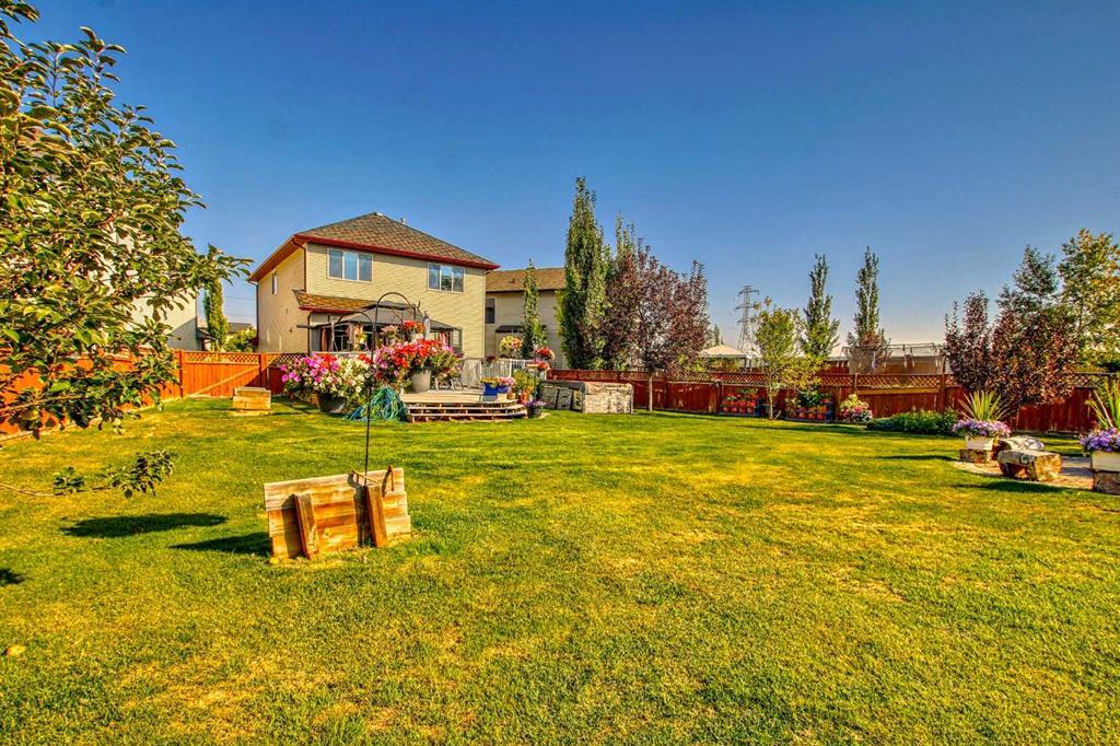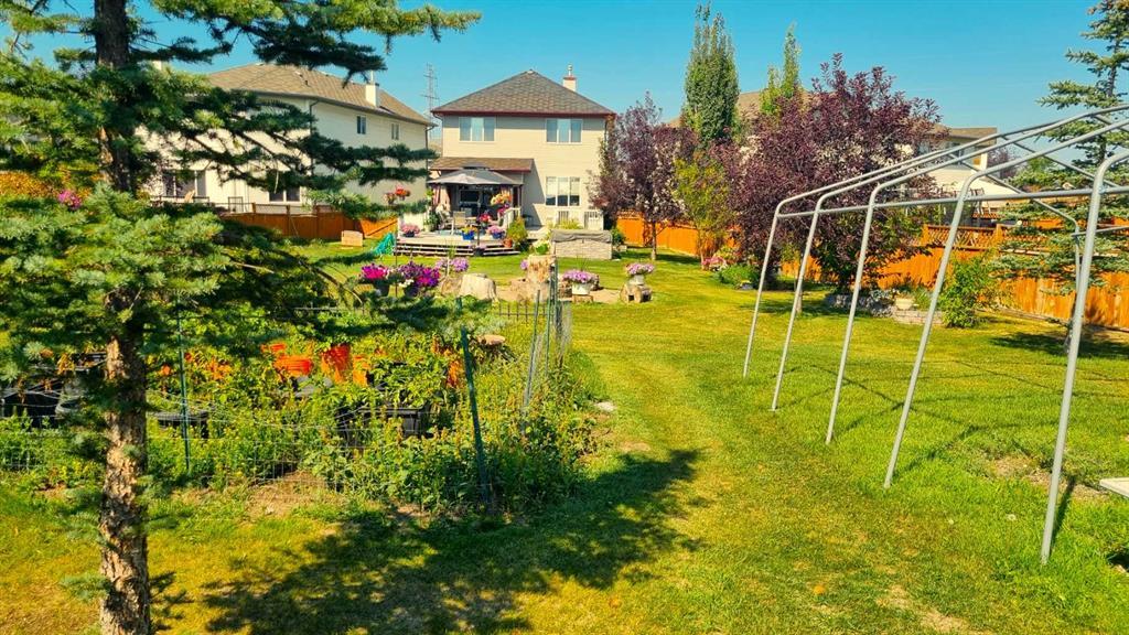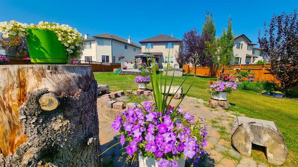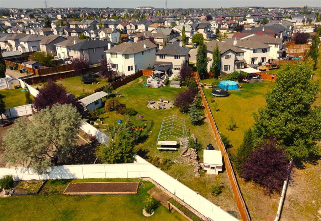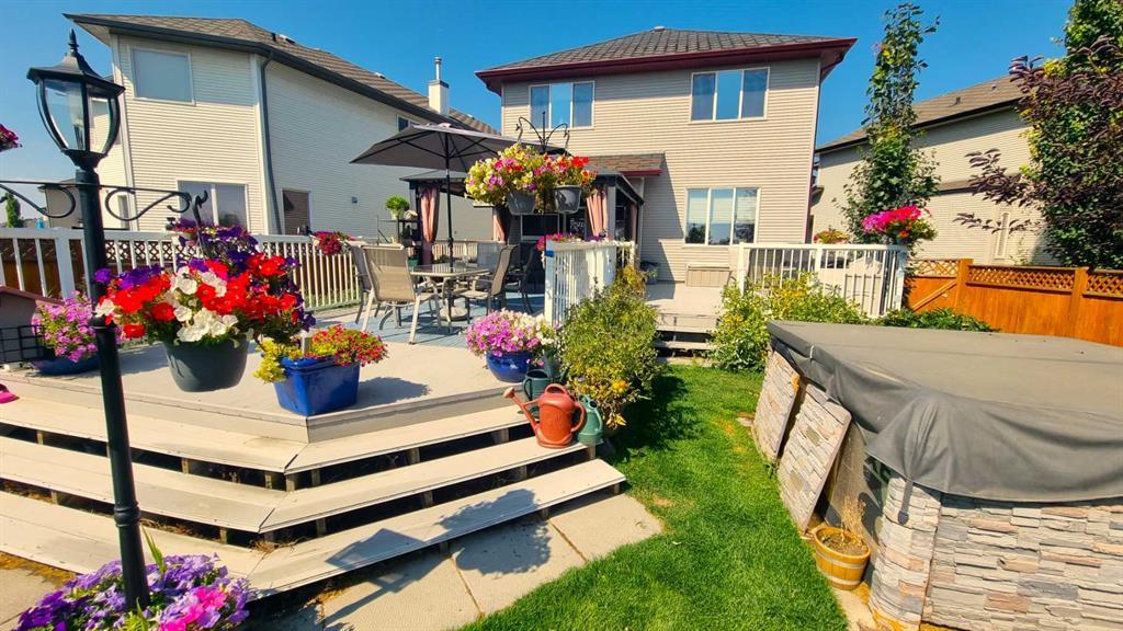 Beautiful wide open floorplan, with many upgrades, on one of the largest lots you will see in Calgary, If you are looking for a HUGE, beautifully manicured yard with a HUGE covered deck and LOTS of room for the kids to play, located on a quiet Cul-De-Sac, with a tot lot at one end of the street and a HUGE off-leash area at the other, this home is for you. The first thing you will notice as you enter the home is the gleaming hardwood floors that cover the whole main floor. As you enter the home, the inviting foyer with soaring cathedral ceilings and open stairway give you a welcoming feeling. The wide open Great Room and Kitchen are perfect for entertaining or keeping an eye on your kids as they play. The main floor has been repainted last year in a warm taupe green shade that perfectly match the hardwood floor and maple cupboards. The huge island with breakfast bar is the perfect place for a quick snack or lunch for the kids. The inviting kitchen nook looks out to the back yard, where you will likely enjoy your meals on the covered deck on warm summer days. The deck is perfectly equipped with a gas line for the BBQ plus another area that is perfect for outdoor dining while enjoying your HUGE private yard. The pie shaped lot has a fire pit, horseshoe pit and a hot tub plus a cute shed that could be converted into a children's playhouse. When you eventually come back inside, you will appreciate the air-conditioned home on hot summer days. The main floor is finished off with a main floor laundry and half bath plus access to your double attached garage with built-in shelving, cupboards and work bench. When you need to get away from the rest of the family, just head upstairs to the right to the large bonus room at the top of the stairs. If you go to the left, you will go to the 3 bedrooms. The primary bedroom is very spacious and has a large ensuite bathroom with walk-in shower and soaker tub. You will also appreciate the large walk-in closet. The other two bedrooms a re great for kids or an office. Down the hall you have the other full bathroom. As you head downstairs to the unspoiled basement, you will see how bright it is with large egress windows, making it perfect for future development. As you head out the front door, just down the street you will go to one of the largest off-leash areas in the city. Few people know about this HUGE 3 km long area to take your dog, jog or just go for a relaxing walk. Evanston has 3 schools and over 6 km of pathways plus beautiful natural ponds. Call your favorite Realtor to take a look at this one-of-a-kind home before it's gone. (id:22211)