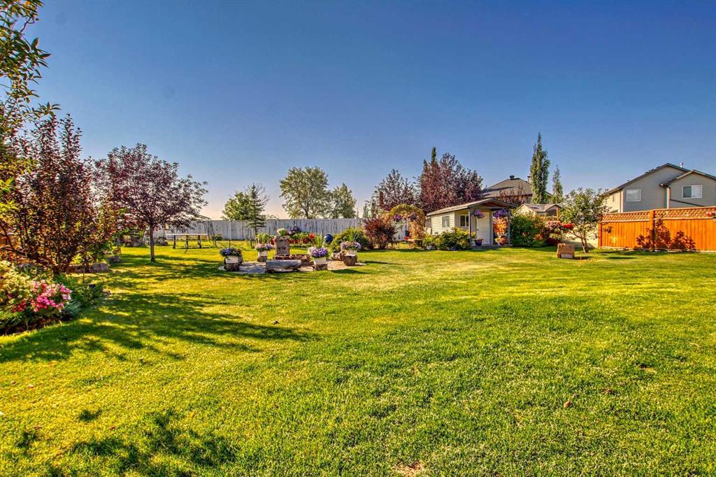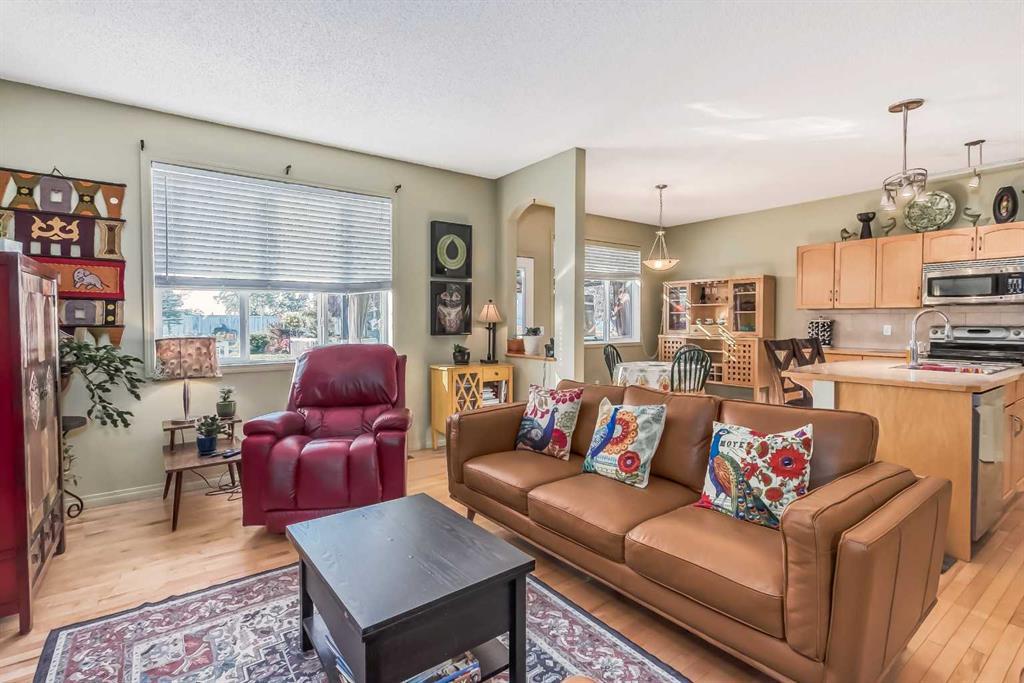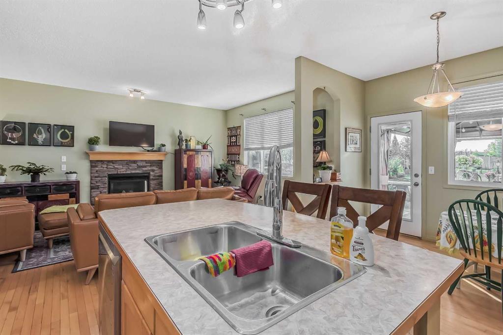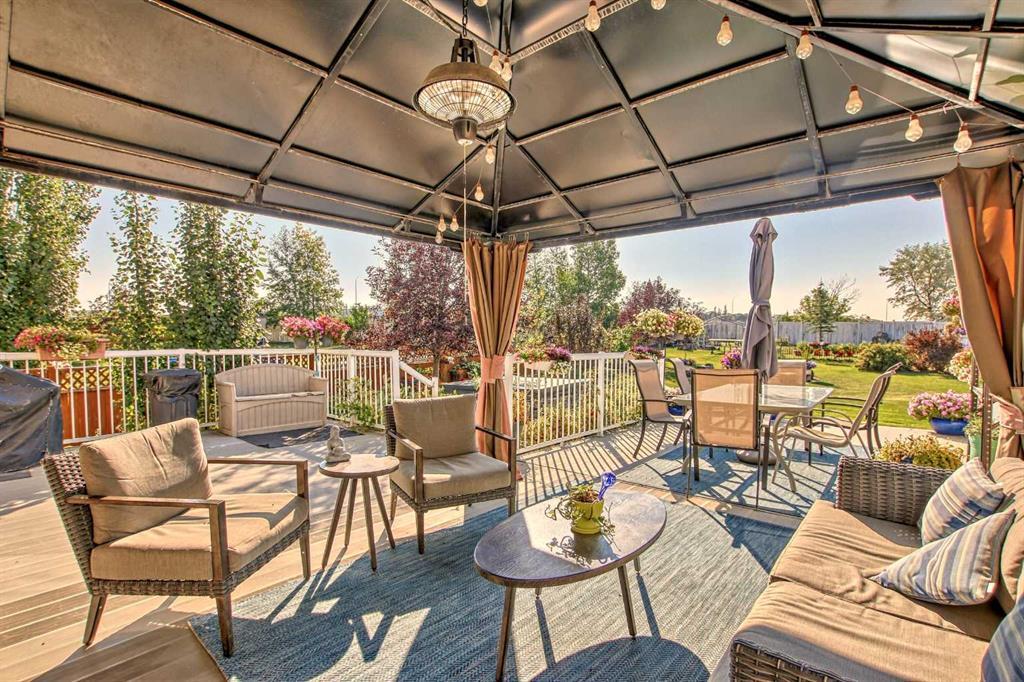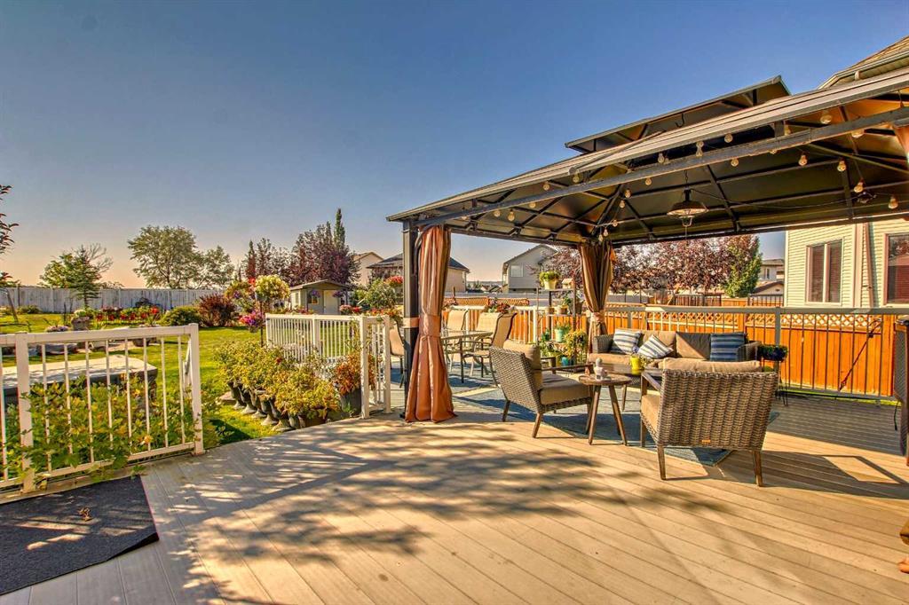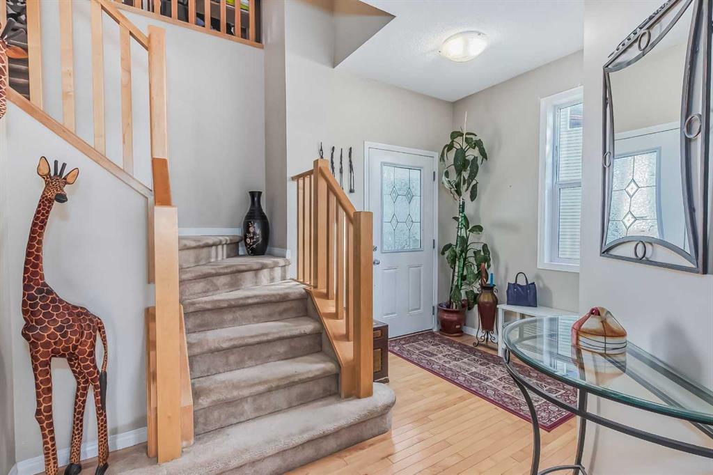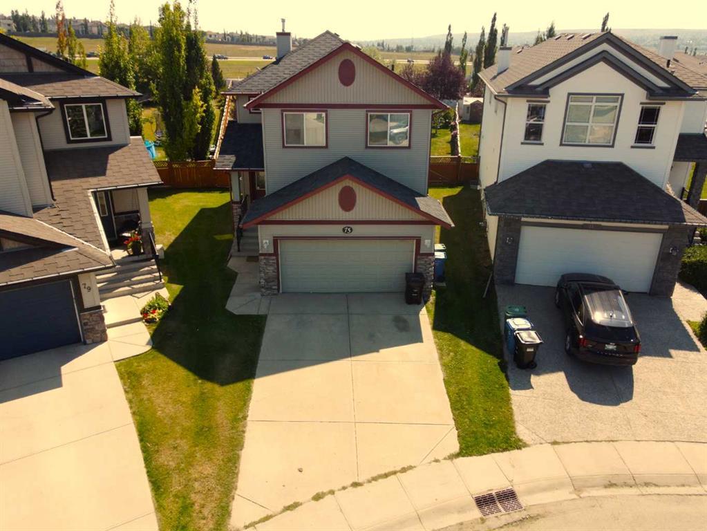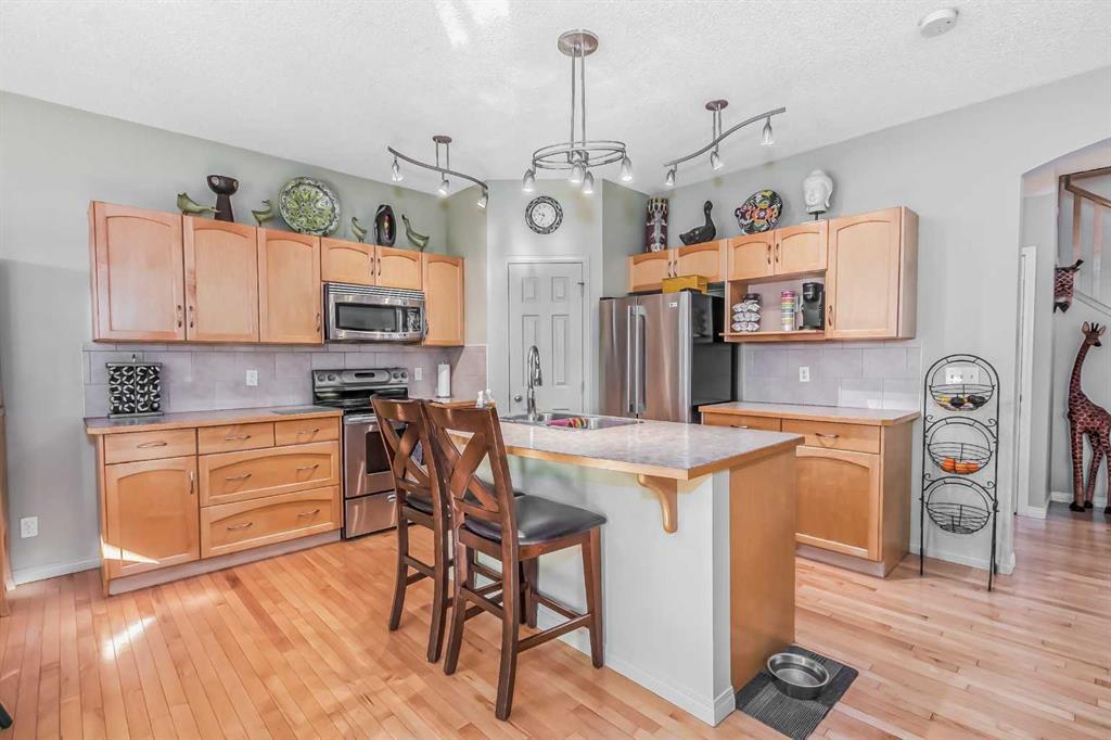 Beautiful wide open floorplan, with many upgrades, on one of the largest lots you will see in Calgary, If you are looking for a HUGE, beautifully manicured yard with a HUGE covered deck and LOTS of room for the kids to play, located on a quiet Cul-De-Sac, with a tot lot at one end of the street and a HUGE off-leash area at the other, this home is for you. The first thing you will notice as you enter the home is the gleaming hardwood floors that cover the whole main floor. As you enter the home, the inviting foyer with soaring cathedral ceilings and open stairway give you a welcoming feeling. The wide open Great Room and Kitchen are perfect for entertaining or keeping an eye on your kids as they play. The main floor has been repainted last year in a warm taupe green shade that perfectly match the hardwood floor and maple cupboards. The huge island with breakfast bar is the perfect place for a quick snack or lunch for the kids. The inviting kitchen nook looks out to the back yard, where you will likely enjoy your meals on the covered deck on warm summer days. The deck is perfectly equipped with a gas line for the BBQ plus another area that is perfect for outdoor dining while enjoying your HUGE private yard. The pie shaped lot has a fire pit, horseshoe pit and a hot tub plus a cute shed that could be converted into a children's playhouse. When you eventually come back inside, you will appreciate the air-conditioned home on hot summer days. The main floor is finished off with a main floor laundry and half bath plus access to your double attached garage with built-in shelving, cupboards and work bench. When you need to get away from the rest of the family, just head upstairs to the right to the large bonus room at the top of the stairs. If you go to the left, you will go to the 3 bedrooms. The primary bedroom is very spacious and has a large ensuite bathroom with walk-in shower and soaker tub. You will also appreciate the large walk-in closet. The other two bedrooms a re great for kids or an office. Down the hall you have the other full bathroom. As you head downstairs to the unspoiled basement, you will see how bright it is with large egress windows, making it perfect for future development. As you head out the front door, just down the street you will go to one of the largest off-leash areas in the city. Few people know about this HUGE 3 km long area to take your dog, jog or just go for a relaxing walk. Evanston has 3 schools and over 6 km of pathways plus beautiful natural ponds. Call your favorite Realtor to take a look at this one-of-a-kind home before it's gone. (id:22211)