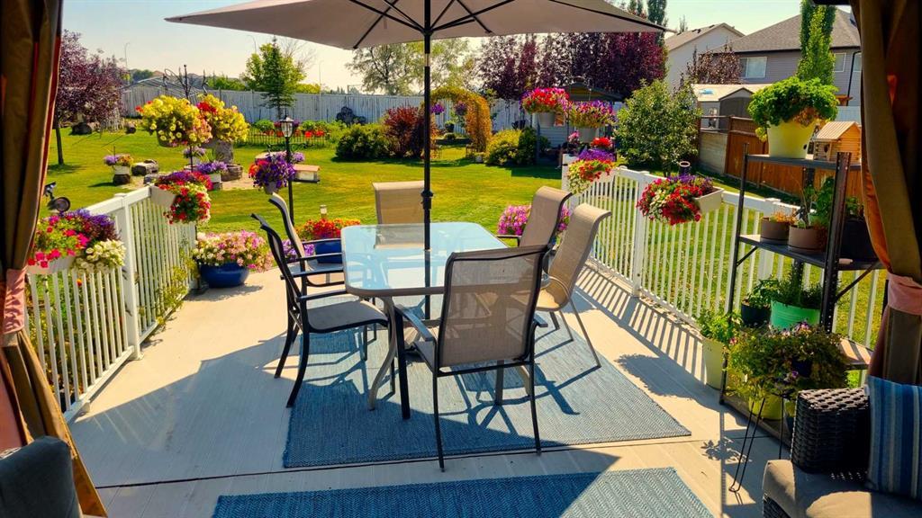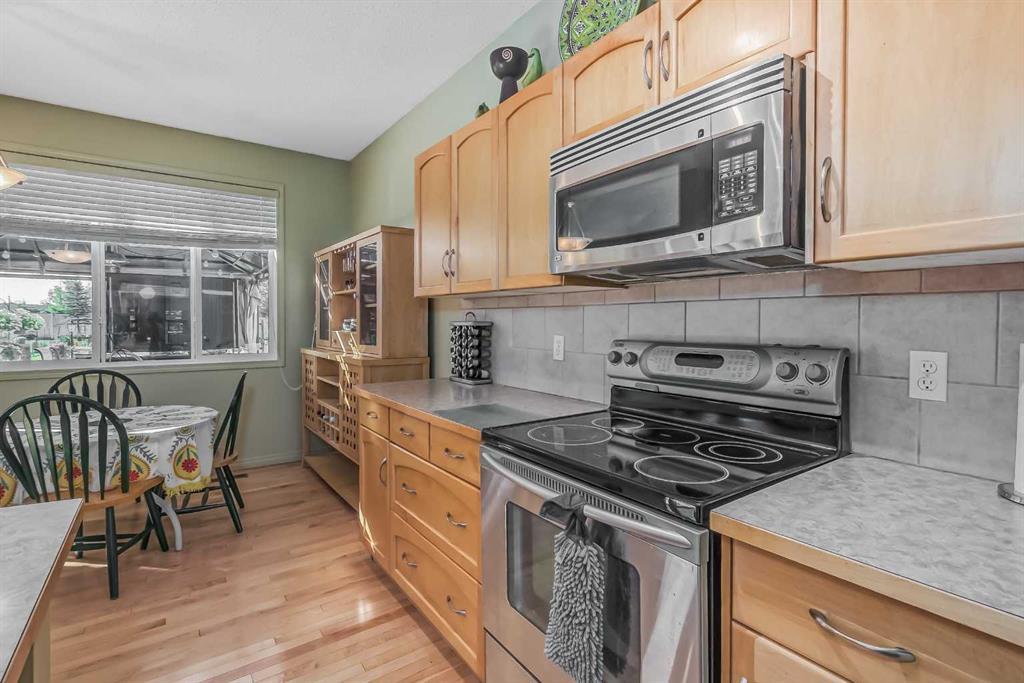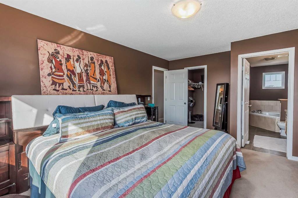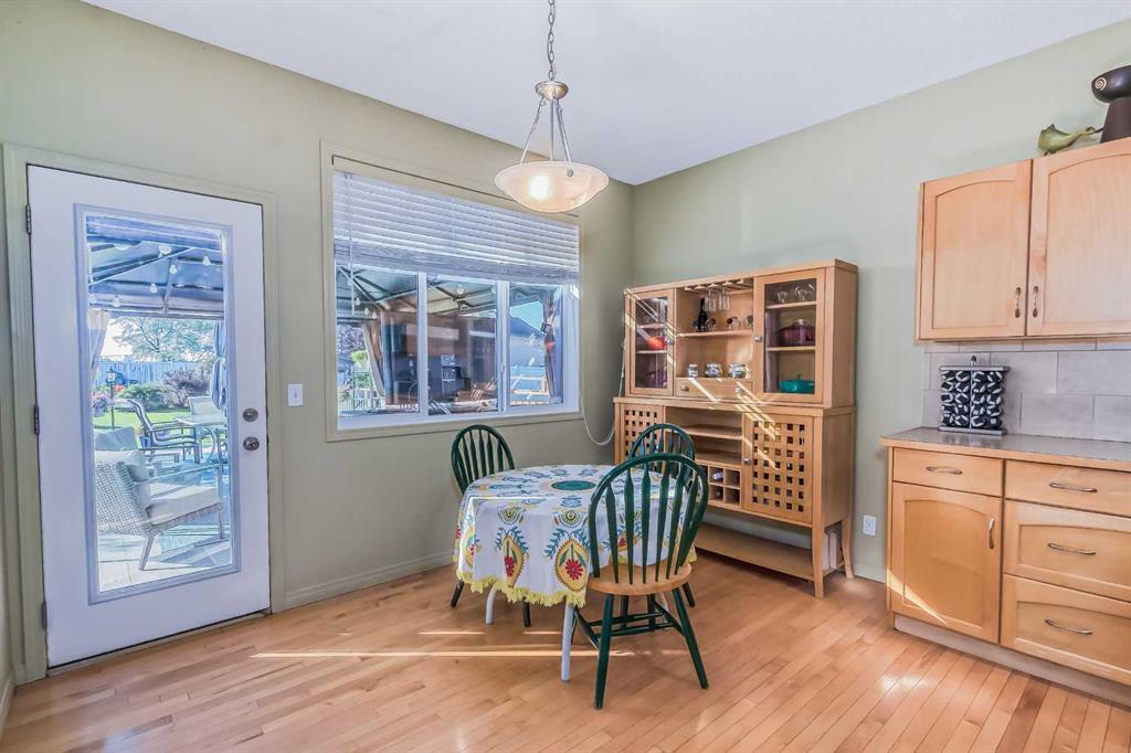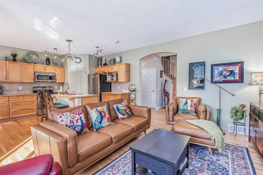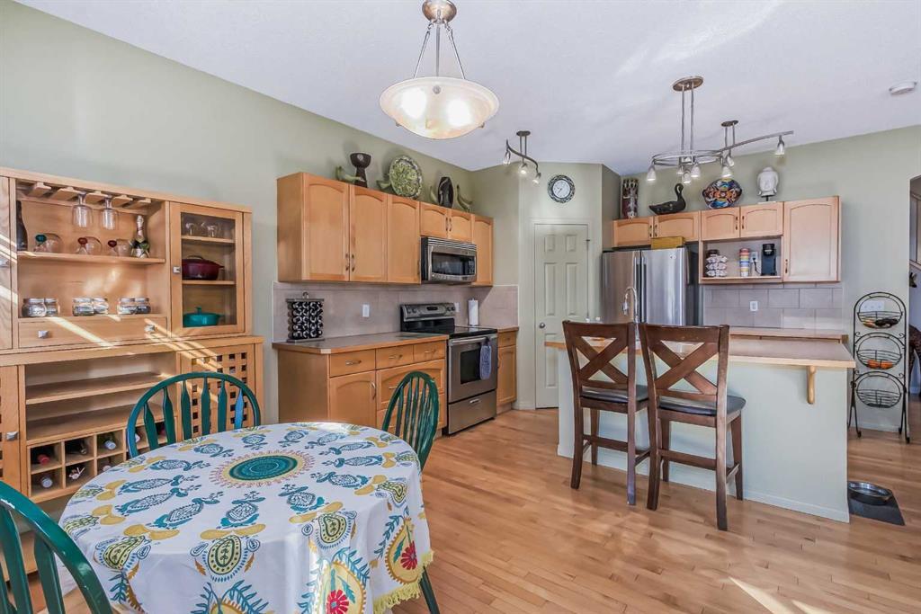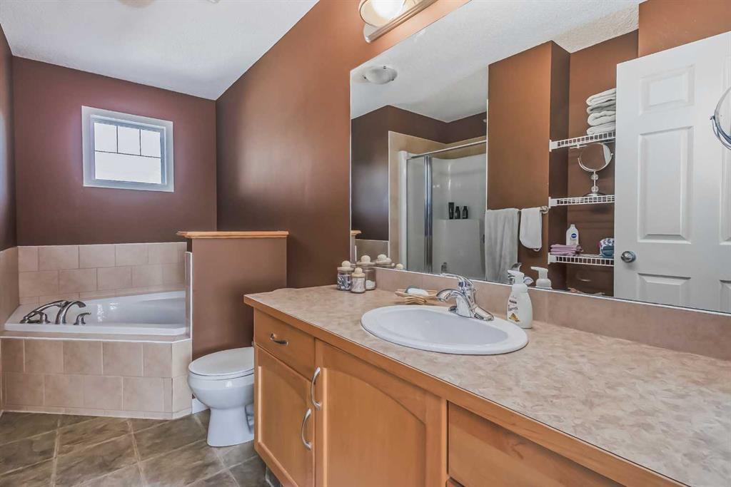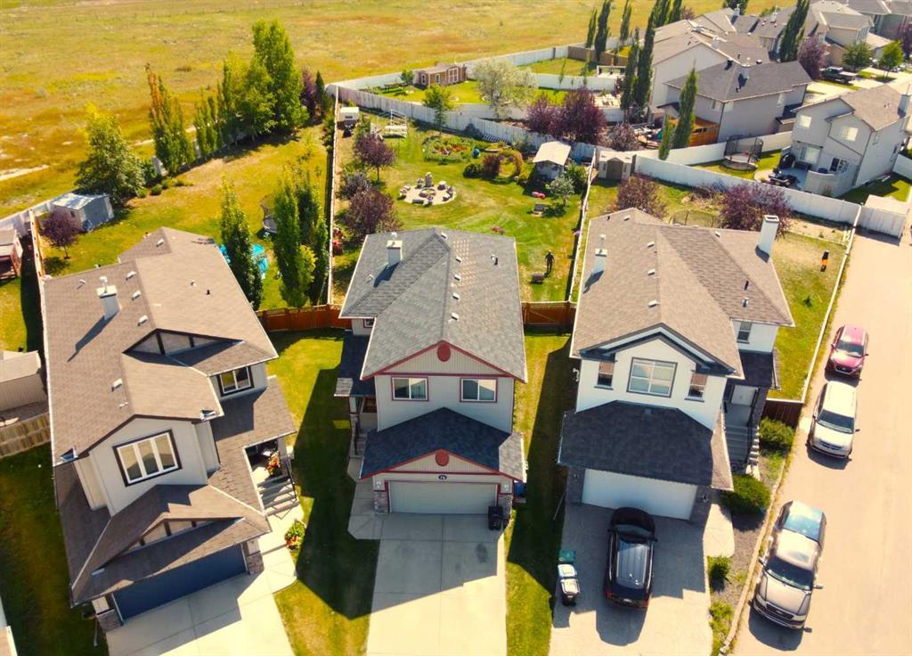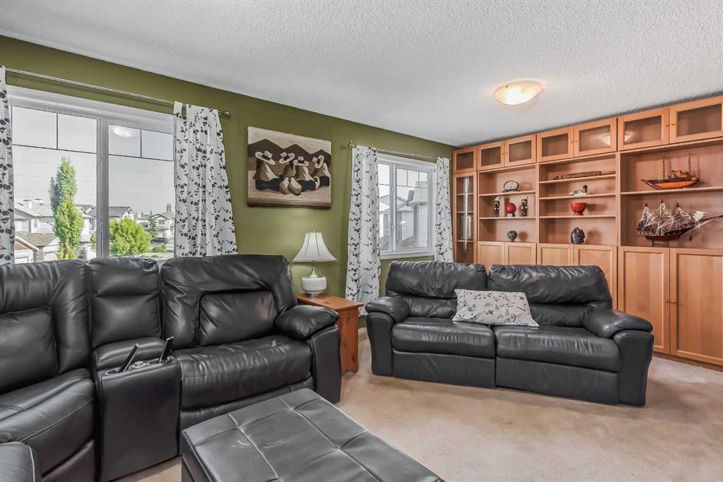 Beautiful wide open floorplan, with many upgrades, on one of the largest lots you will see in Calgary, If you are looking for a HUGE, beautifully manicured yard with a HUGE covered deck and LOTS of room for the kids to play, located on a quiet Cul-De-Sac, with a tot lot at one end of the street and a HUGE off-leash area at the other, this home is for you. The first thing you will notice as you enter the home is the gleaming hardwood floors that cover the whole main floor. As you enter the home, the inviting foyer with soaring cathedral ceilings and open stairway give you a welcoming feeling. The wide open Great Room and Kitchen are perfect for entertaining or keeping an eye on your kids as they play. The main floor has been repainted last year in a warm taupe green shade that perfectly match the hardwood floor and maple cupboards. The huge island with breakfast bar is the perfect place for a quick snack or lunch for the kids. The inviting kitchen nook looks out to the back yard, where you will likely enjoy your meals on the covered deck on warm summer days. The deck is perfectly equipped with a gas line for the BBQ plus another area that is perfect for outdoor dining while enjoying your HUGE private yard. The pie shaped lot has a fire pit, horseshoe pit and a hot tub plus a cute shed that could be converted into a children's playhouse. When you eventually come back inside, you will appreciate the air-conditioned home on hot summer days. The main floor is finished off with a main floor laundry and half bath plus access to your double attached garage with built-in shelving, cupboards and work bench. When you need to get away from the rest of the family, just head upstairs to the right to the large bonus room at the top of the stairs. If you go to the left, you will go to the 3 bedrooms. The primary bedroom is very spacious and has a large ensuite bathroom with walk-in shower and soaker tub. You will also appreciate the large walk-in closet. The other two bedrooms a re great for kids or an office. Down the hall you have the other full bathroom. As you head downstairs to the unspoiled basement, you will see how bright it is with large egress windows, making it perfect for future development. As you head out the front door, just down the street you will go to one of the largest off-leash areas in the city. Few people know about this HUGE 3 km long area to take your dog, jog or just go for a relaxing walk. Evanston has 3 schools and over 6 km of pathways plus beautiful natural ponds. Call your favorite Realtor to take a look at this one-of-a-kind home before it's gone. (id:22211)