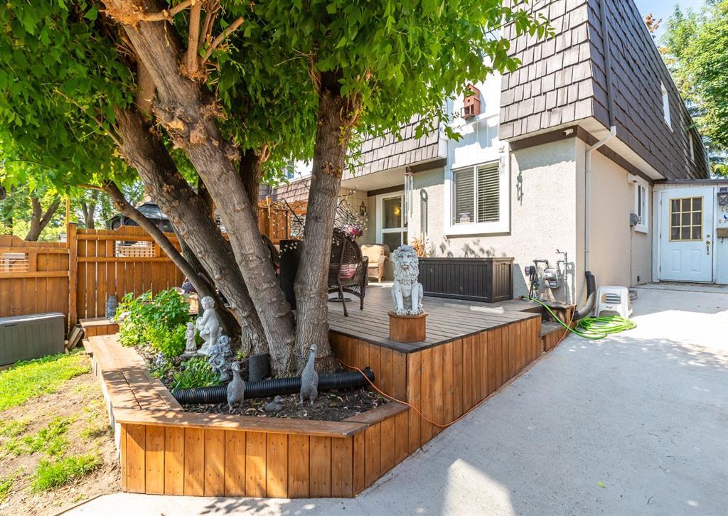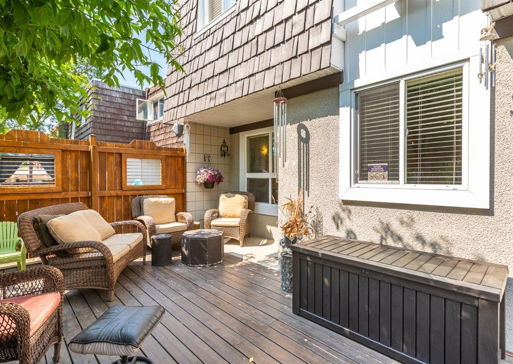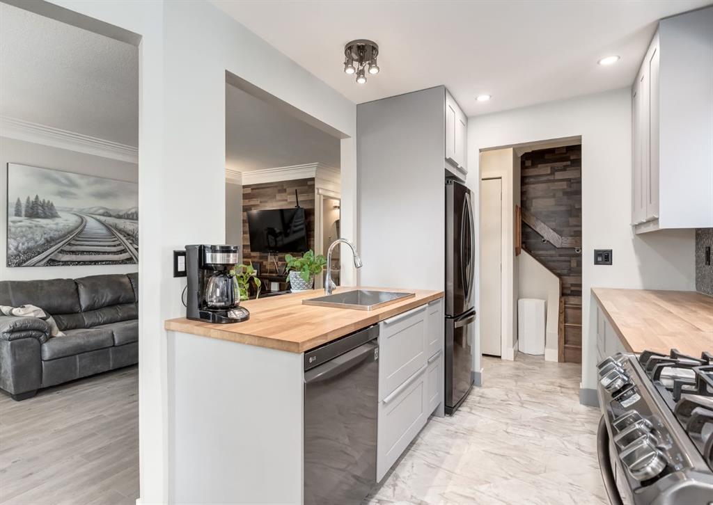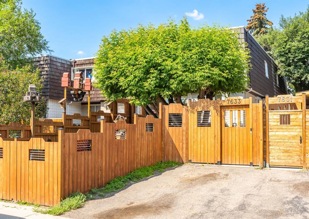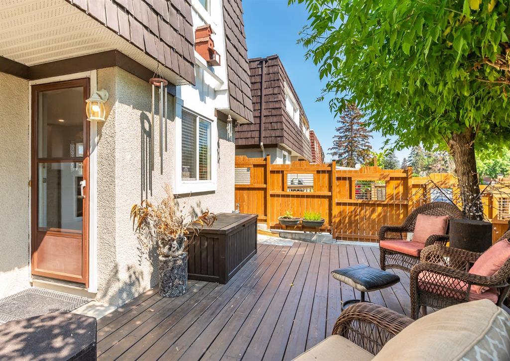 Welcome to 7633 25 Street SE in the established community of Ogden. This exceptional 2-storey end unit offers over 1000 sqft of developed living space, providing an inviting atmosphere for you and your family. The property boasts several impressive updates, including newer windows, soffits, and a hot water tank. The double drywalled ceilings and insulated and drywalled concrete party walls not only enhance privacy but also contribute to a peaceful living experience. Step into the newer kitchen, a true highlight of this home. It features a large basin sink and gleaming gun metal grey stainless steel appliances, including a 5-burner gas stove. You'll appreciate the ample storage options, making it effortless to keep your kitchen organized. The mosaic backsplash adds a touch of elegance, while the LED pot lights create a warm and inviting ambiance for cooking and entertaining. The upper level boasts 2 bedrooms & a fully tiled 4-piece bath, complete with a jetted tub and heated floors, offering a luxurious retreat after a long day. The spacious primary bedroom is a true haven, featuring a walk-in closet with built-ins, ensuring all your storage needs are met. Outside, you'll find a newer concrete ramp leading to the storage shed, providing convenient and secure storage options. Relax on the large shaded deck, surrounded by the beauty of a massive maple tree.. The newer security fence, complete with a sliding gate and doorbell, adds an extra layer of safety and peace of mind. Don't miss the opportunity to make this exceptional property your own. Schedule a viewing today and envision the possibilities of your new home (id:22211)