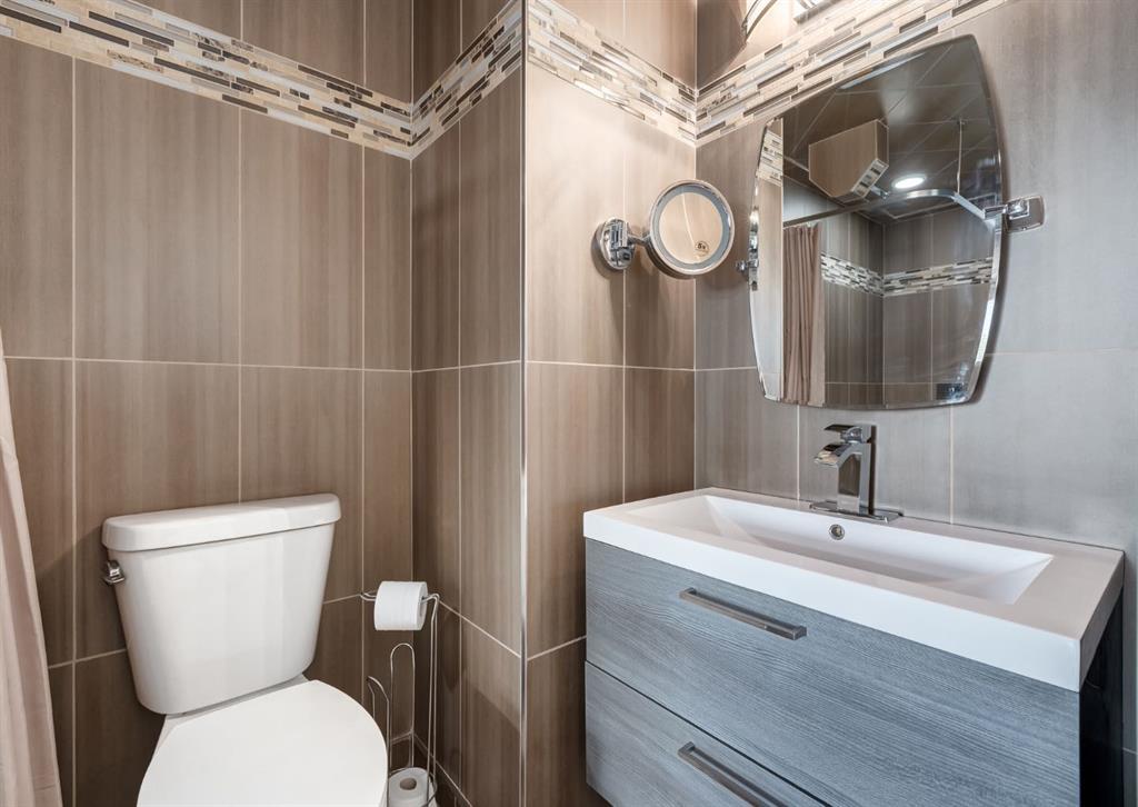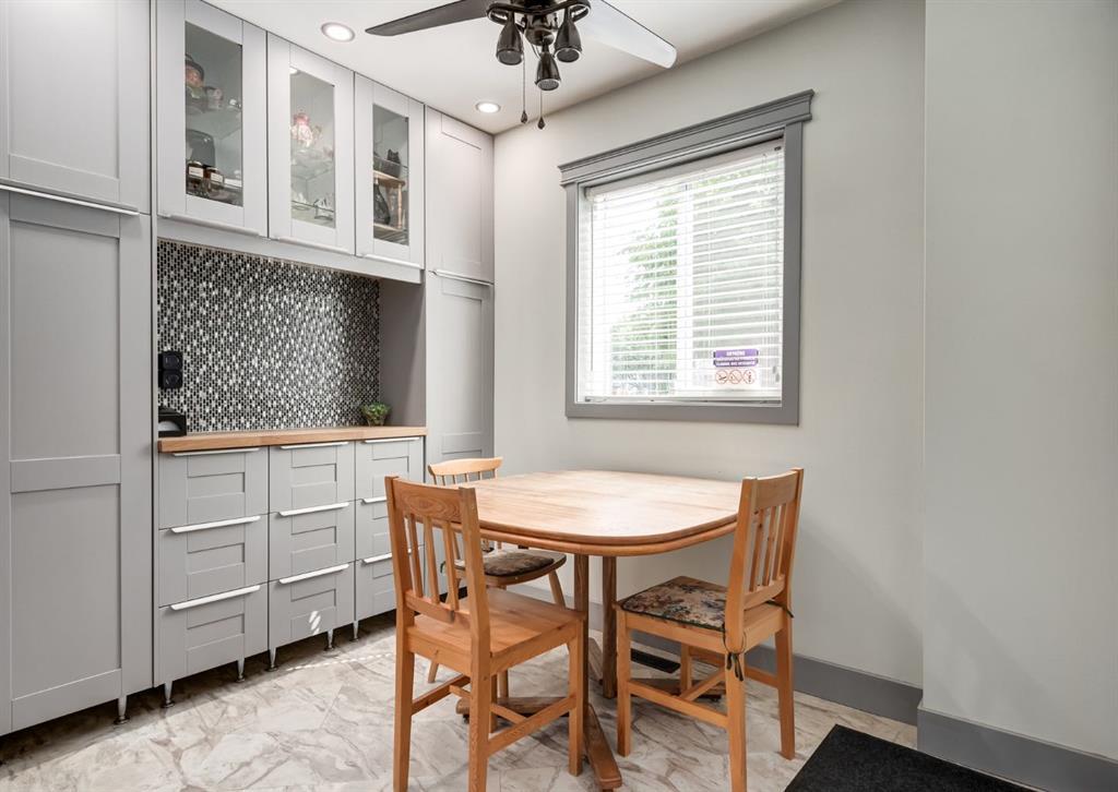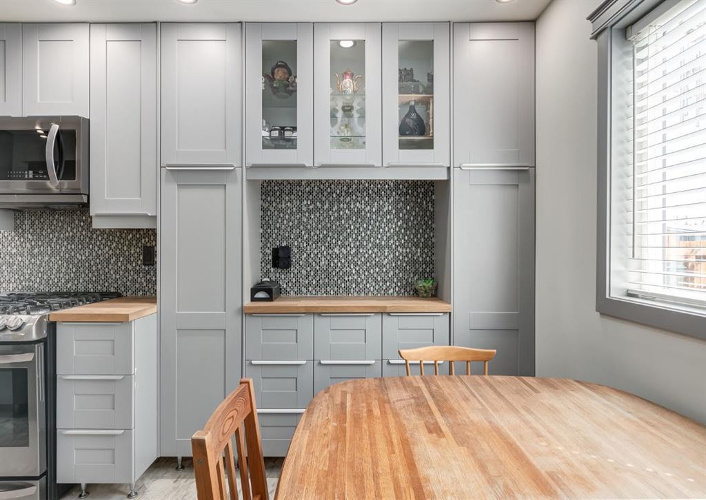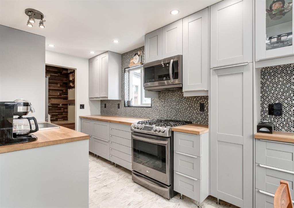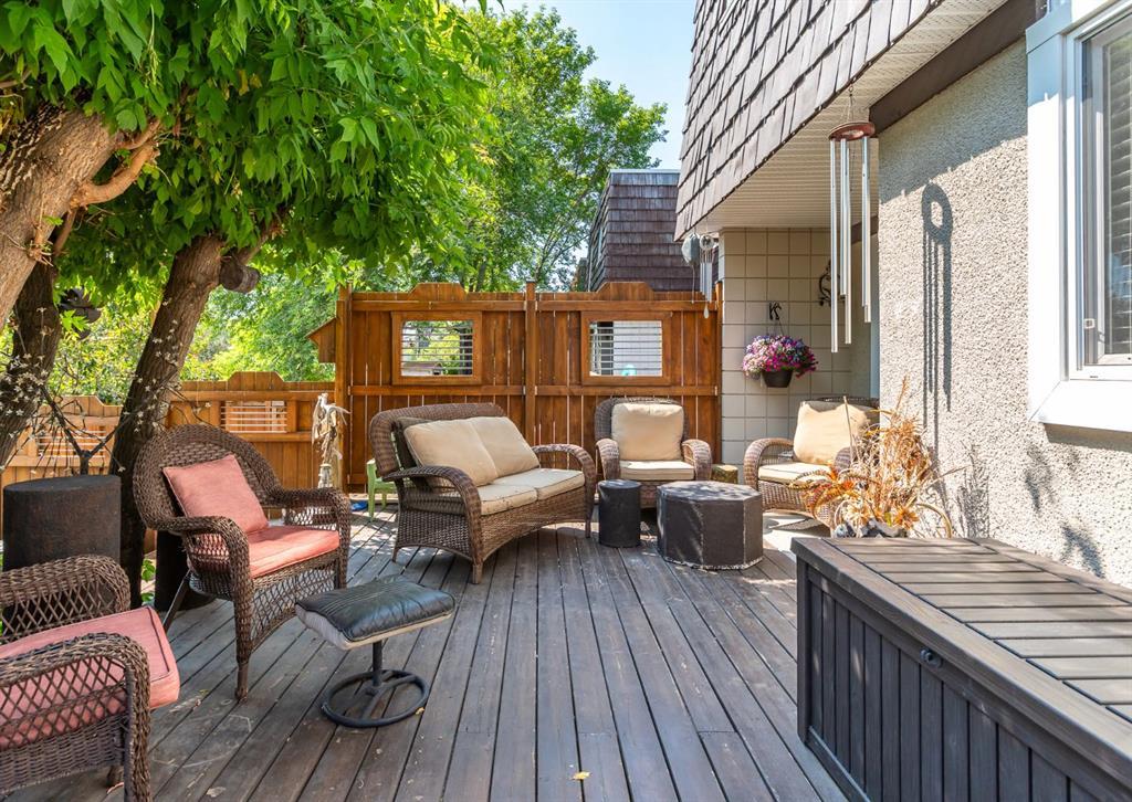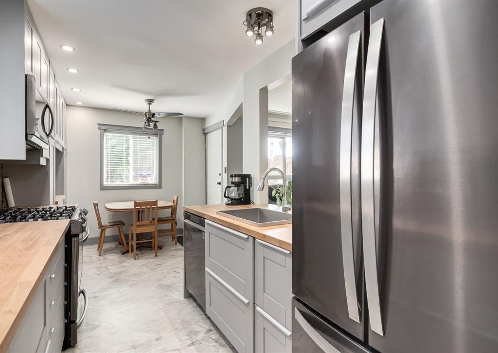 Welcome to 7633 25 Street SE in the established community of Ogden. This exceptional 2-storey end unit offers over 1000 sqft of developed living space, providing an inviting atmosphere for you and your family. The property boasts several impressive updates, including newer windows, soffits, and a hot water tank. The double drywalled ceilings and insulated and drywalled concrete party walls not only enhance privacy but also contribute to a peaceful living experience. Step into the newer kitchen, a true highlight of this home. It features a large basin sink and gleaming gun metal grey stainless steel appliances, including a 5-burner gas stove. You'll appreciate the ample storage options, making it effortless to keep your kitchen organized. The mosaic backsplash adds a touch of elegance, while the LED pot lights create a warm and inviting ambiance for cooking and entertaining. The upper level boasts 2 bedrooms & a fully tiled 4-piece bath, complete with a jetted tub and heated floors, offering a luxurious retreat after a long day. The spacious primary bedroom is a true haven, featuring a walk-in closet with built-ins, ensuring all your storage needs are met. Outside, you'll find a newer concrete ramp leading to the storage shed, providing convenient and secure storage options. Relax on the large shaded deck, surrounded by the beauty of a massive maple tree.. The newer security fence, complete with a sliding gate and doorbell, adds an extra layer of safety and peace of mind. Don't miss the opportunity to make this exceptional property your own. Schedule a viewing today and envision the possibilities of your new home (id:22211)