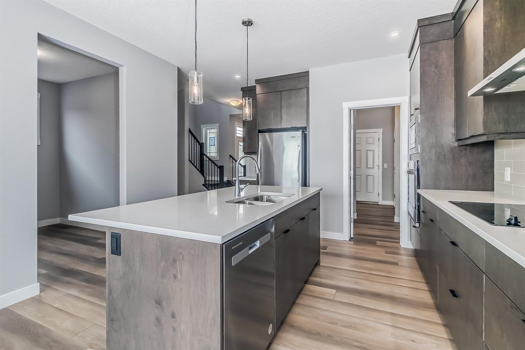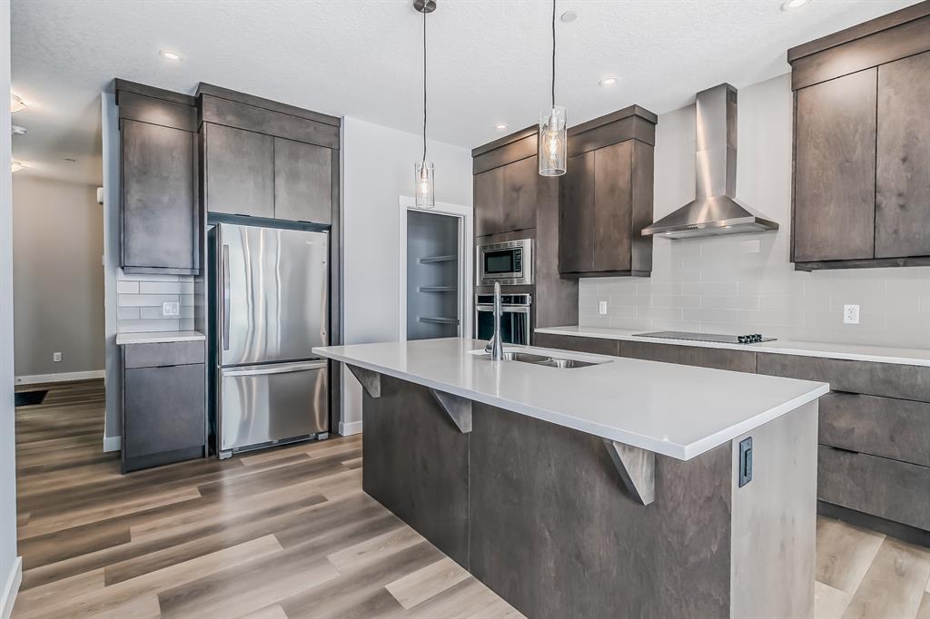 Brand new - Quick possession - Never lived in - Located in one of the most desirable communities in all of Calgary, Livingston! Come home to this beautifully planned, 2 storey, double car garage property that boasts over 2,200 square feet plus of living space over 2-levels. This home offers in-demand selections and upgrades that is sure to knock your socks off. For starters, upgrades converting the standard kitchen into a builder gourmet kitchen that includes full height cabinets with rise and crown. Built-in wall oven, built in microwave, cooktop, and chimney style hood fan. LVP flooring throughout the main floor area, carpet on the second floor and ceramic tiles throughout the washrooms and laundry room. The counter tops we're also upgrades to granite. The primary bedroom upstairs includes a spacious 5-piece, spa like ensuite bathroom, which includes a soaker tub, double vanities and a fiberglass stand-in shower layered with tile. Can we talk about room sizes? Each of the 3 upstairs bedrooms and bonus room offer an abundance of living space. The well-thought-out basement is primed for your future development ideas. Finally, move in with peace of mind knowing the extended builder warranty has you covered. Located near the recreational centre, golf courses, parks, and pathways. Easy access from Stoney Trail and Country Hills Boulevard, call before this home is gone. (id:22211)
