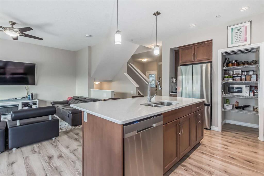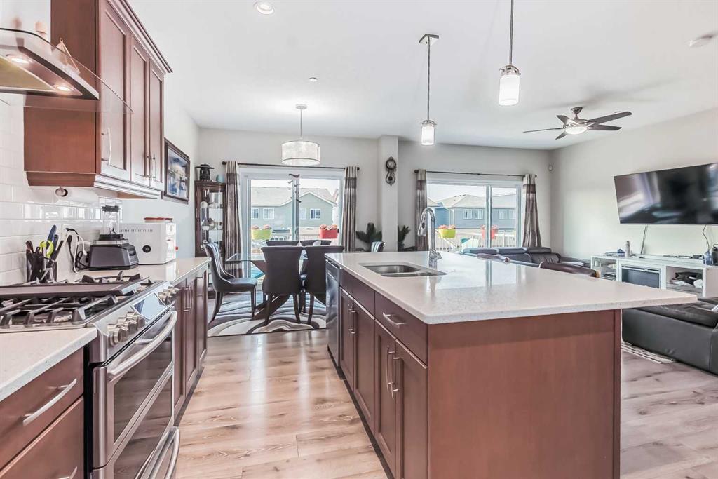 This is the house for you. Come LIVE in this two-story walkout Livingston Home (built in 2017). This attractive home, with 9 ft ceilings on both the main floor and the basement, is where you will make memories with your family and friends. The maple cabinets stand out in this kitchen with stainless steel appliances (1 year old) including complimenting the beautiful laminate floor. Appliances include a gas range with an extended warranty which is transferable to the new owner. Enjoy the ceiling fan in the living room on a hot day and brighten your space with pot lights. This house has a beautiful deck with a well-kept yard and separate entrance for the basement. Upstairs has a bonus room, with a ceiling fan, perfect for gatherings, three bedrooms and two bathrooms. You will love the master bedroom, walk-in closet and its 4 piece ensuite bathroom. The basement, currently rented for $1200/month (illegal suite) has a full kitchen, living room, bedroom and bathroom. It even has its own washer/dryer! The furnace also has a tankless water heater which you will love! The house also features a residential fire sprinkler system which may offer insurance discounts. Also enjoy the benefits of this home’s water softener which prevents minerals from building up. This house is clean and well-maintained! Ready for you to just move in! Keep in mind that Livingston is a beautiful community with a multi-use community centre and many amenities nearby for you to enjoy! (id:22211)