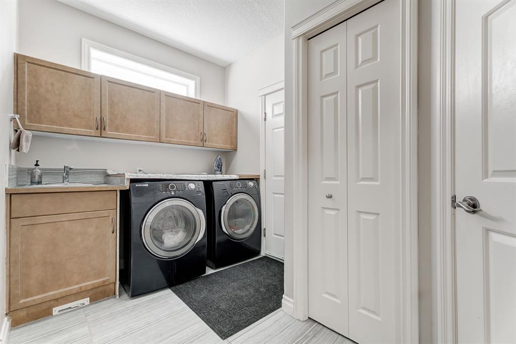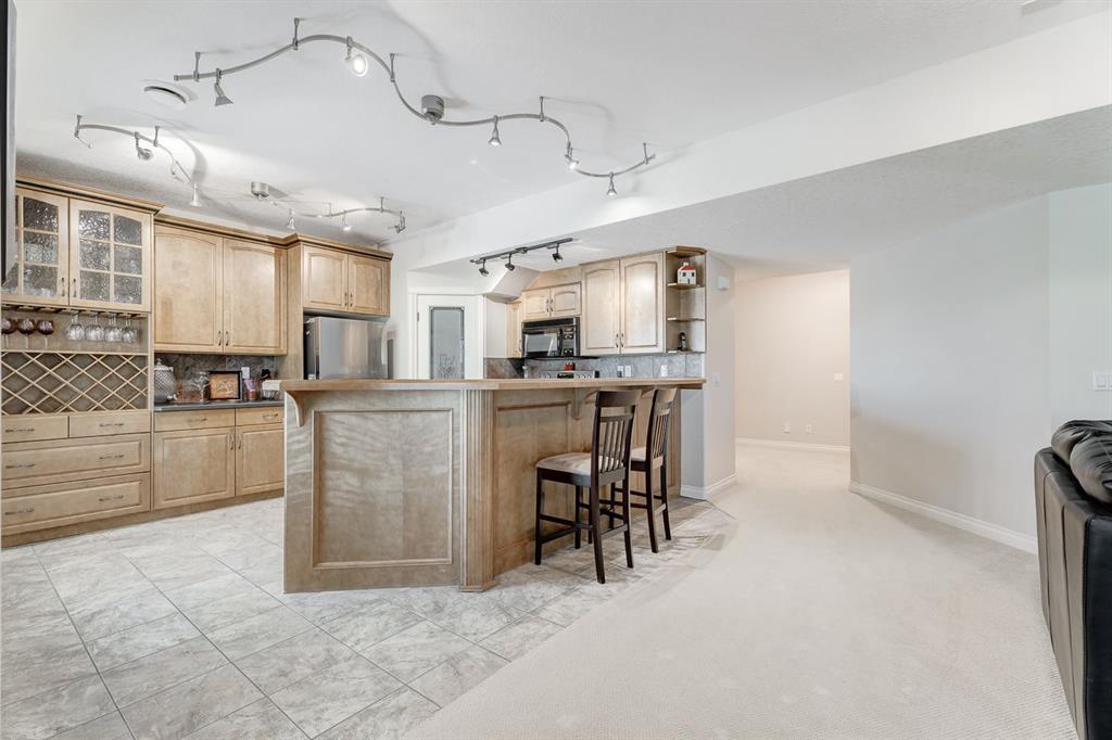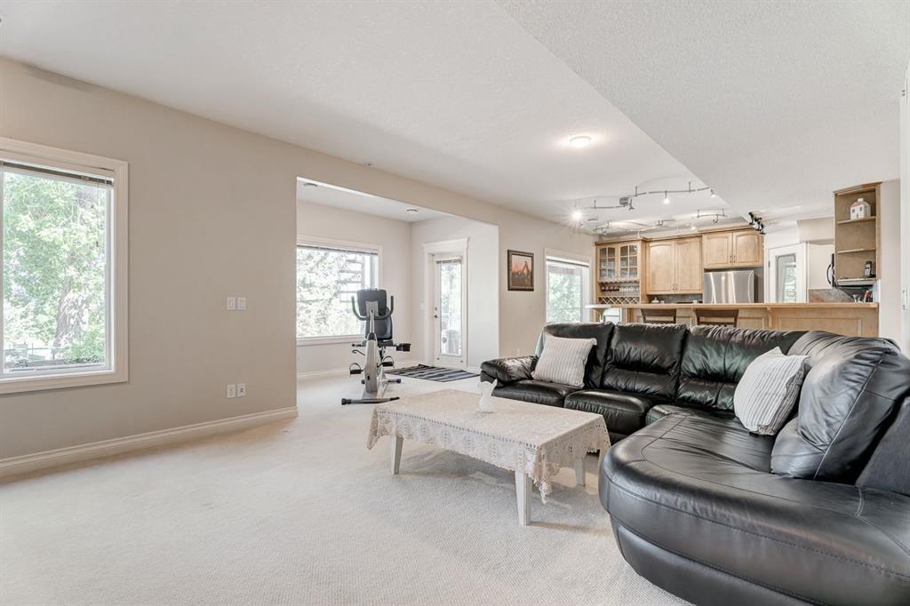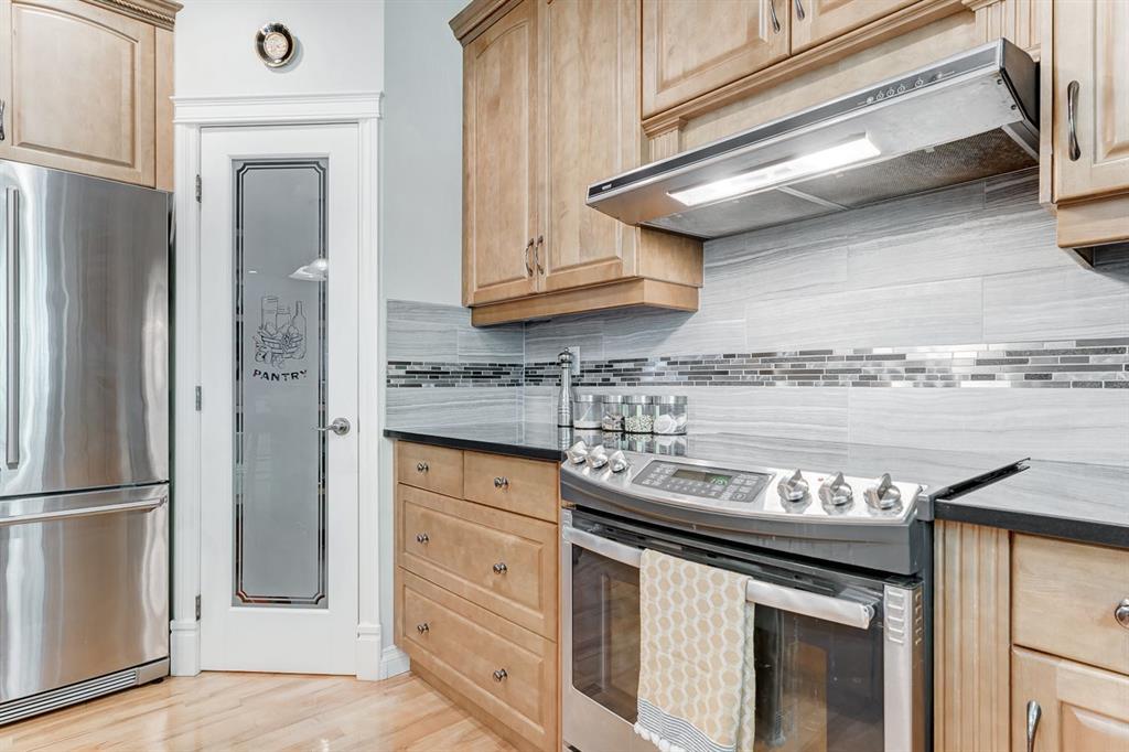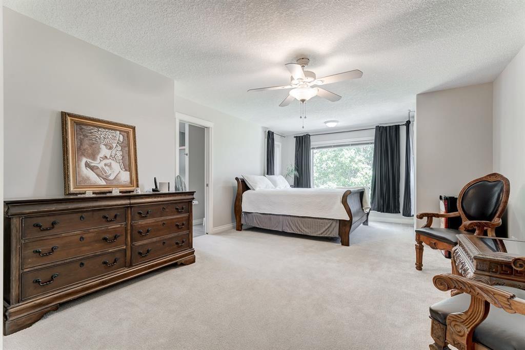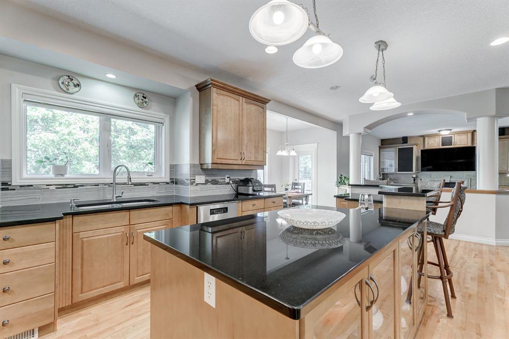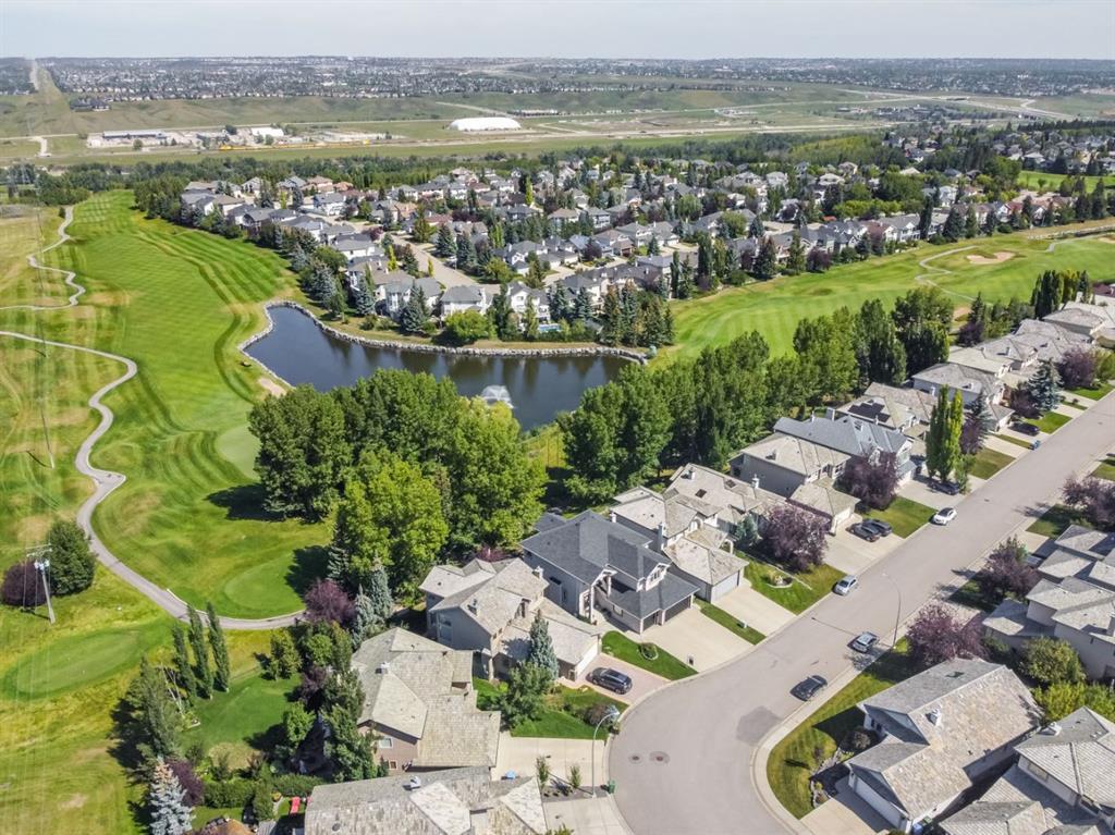 Situated adjacent to the 13th hole of the golf course, this extraordinary residence captures stunning pond views. This expansive home encompasses over 4,400 square feet of living space boasting 9-foot ceilings on both its main and basement levels, further enhanced by the elegance of knockdown ceilings, and solid maple hardwood and tile flooring throughout.The open living space is highlighted by a generously proportioned kitchen adorned with abundant raised panel tall maple cabinetry and granite countertop surfaces. The kitchen is open to the bright and sunny breakfast nook opening to the large deck as well as the living room.Impeccably upgraded with refined elements such as wrought iron railings, integrated ceiling speakers, and upgraded stainless steel appliances that harmoniously grace the space. Upstairs you are met with a bonus loft area perfect for a homework space, open office, or sitting area. The master suite, with a huge walk-in closet, offers a haven of tranquility and a spacious ensuite with a cheater door to the loft so one can leave for work without waking the spouse! Completing the main are three additional bedrooms and a family bathroom.The fully finished basement amplifies the home with an illegal self-contained mother-in-law suite (self-contained kitchen), which can easily and cheaply be converted (door alterations) into a rental suite pursuant to and in compliance with the city zoning bylaws. The walkout basement has entrances both through the backyard and the garage.The lower level also features a large rec room with a fireplace, a spacious bedroom with a walk-in closet, and full bathroom with electrically heated floor.A triple garage and an extraordinary backyard with large trees and views of the golf course complete this amazing property with a perfect location in a quiet community only 20 min from downtown but also easy access West to the mountains! (id:22211)