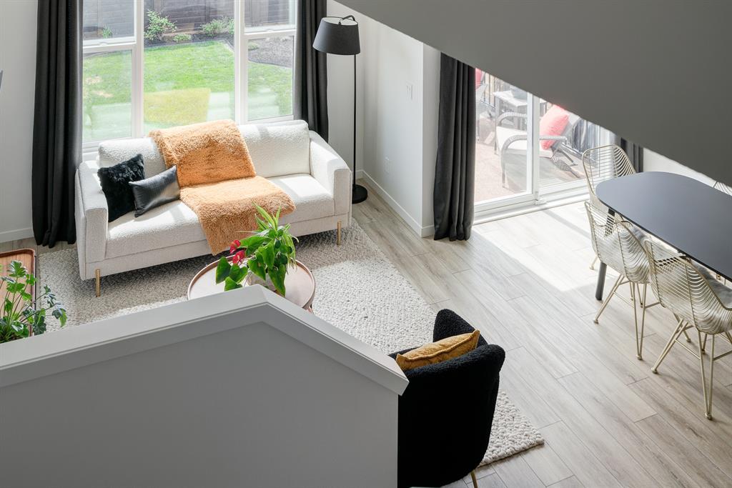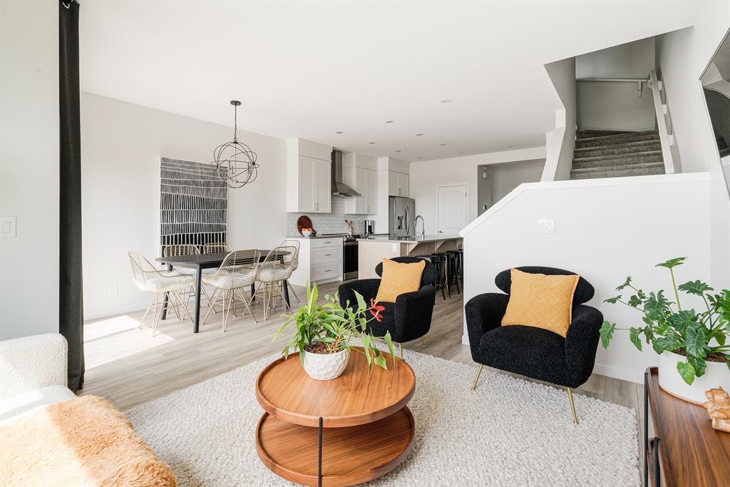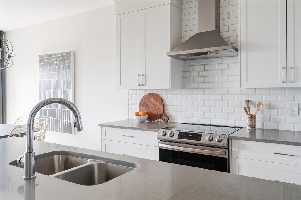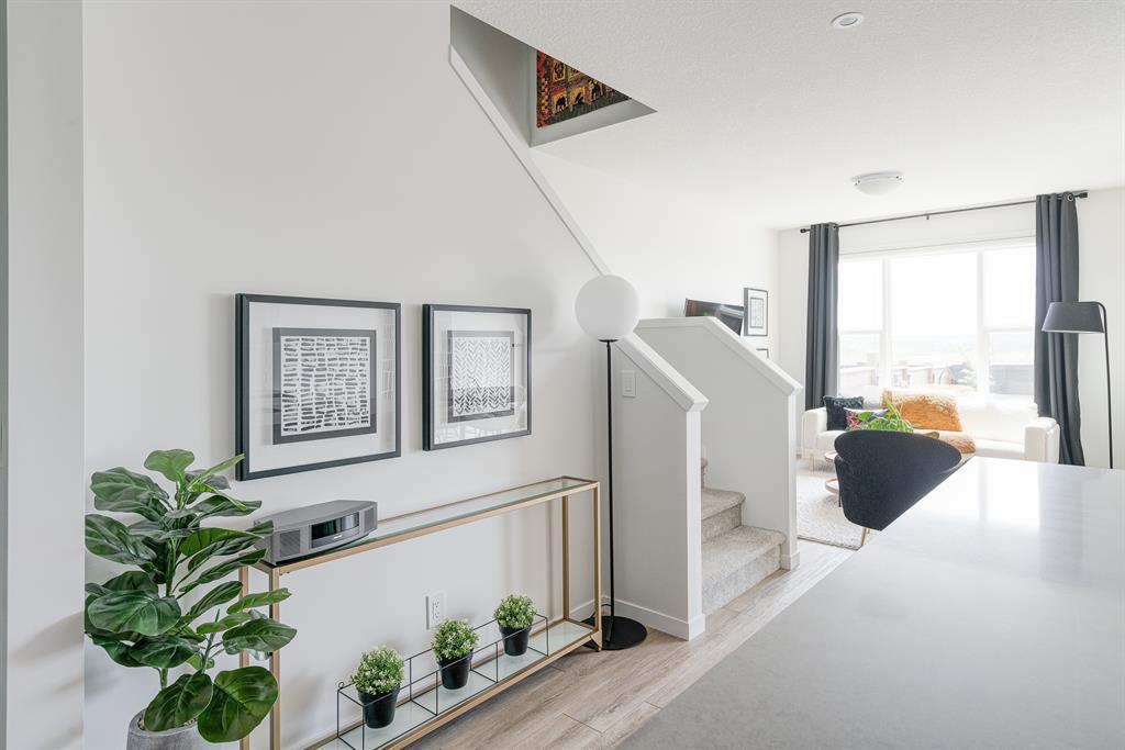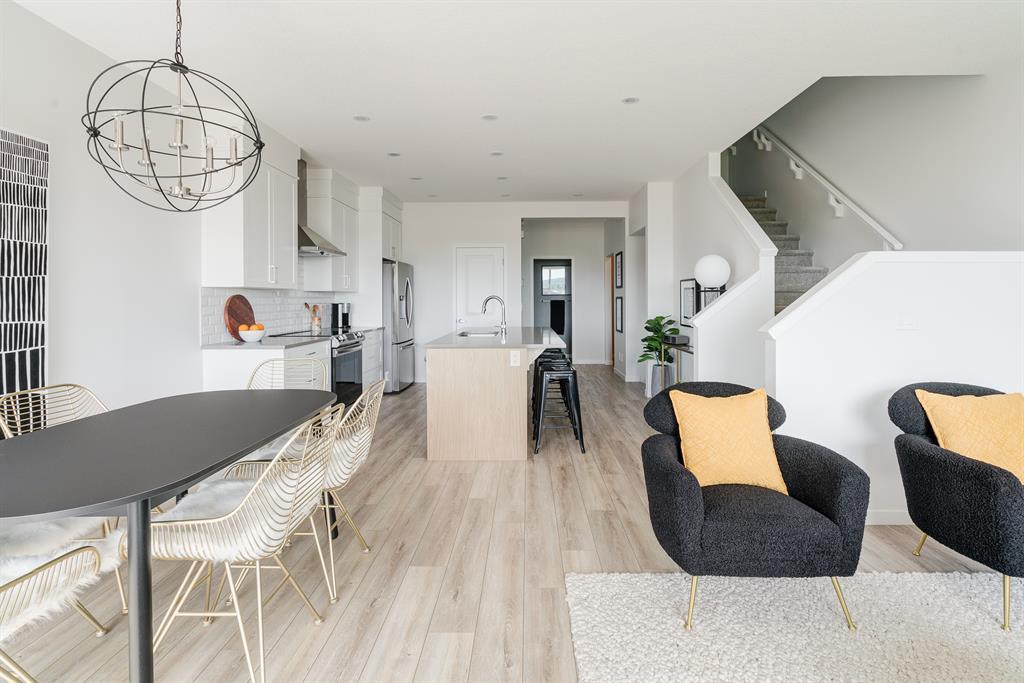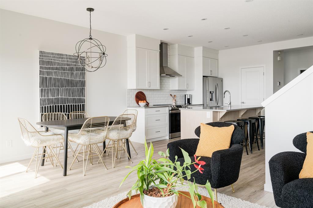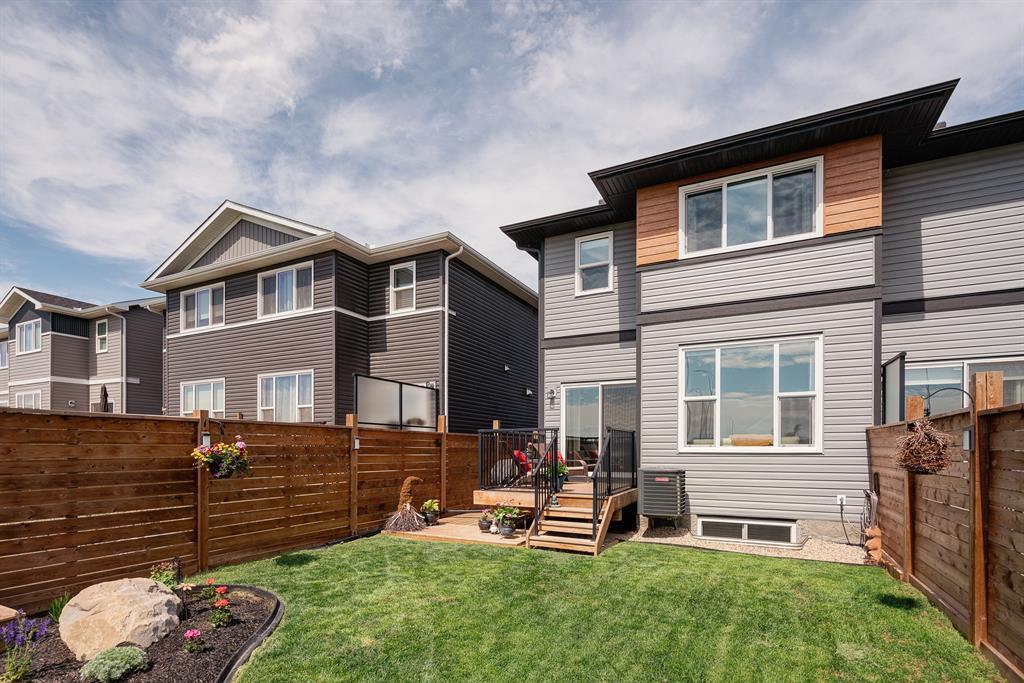 This nearly new former SHOW HOME is located on a quiet family orientated street, is completely move-in ready and just minutes away from the many great amenities of Seton Retail District. The home features 4 bedrooms 3.5 bathrooms, 2 living areas and nearly 2,000 square feet of developed space, sitting on a fully landscaped, private southwest-facing backyard lot with no neighbours behind. This professionally designed home offers an open concept layout with a timeless kitchen featuring white primary cabinetry with a large warm tone island that overlooks both living and dining areas - making a great space for entertaining. A wall of southwest facing windows in the living room and dining area allow natural light to pour into the home from morning to evening. The home is finished with modern luxury vinyl plank flooring on the main level, pristine subway tile backsplash, quartz countertops, full height cabinetry, and a suite of upgraded stainless-steel appliances including an electric range, chimney hood fan and French door fridge. Completing the main level is a kitchen pantry, 2 pc powder room and a mudroom off the garage. The upper level of the home features 3 bedrooms, 2 bathrooms and a generous laundry area with stacked washer/dryer and additional storage for added convenience for daily living. The large primary suite (with mountain views) is complete with a 4 pc en suite offering dual sinks, a walk-in shower and generous walk-in closet. Two additional bedrooms, a full bathroom with ample closet space completes the upper level. The professional developed basement includes a 4th bedroom, full bathroom and large family room ideal for a media area. Completing the lower level is an expansive storage / utility room. The attached garage will keep your vehicle and valuables safe all year long! The backyard is truly an oasis offering a southwest exposure with plenty of green space for the family to enjoy. Additionally, the home has a deck off the dining room and a lower patio perfect for BBQs with friends and family. This former show home comes well equipped with countless upgrades inside and outside of the home like central air conditioning, direct hot water, custom window treatments, epoxy coated garage floor, upgraded Dekora lighting inside, Gemstone Lighting on the exterior and a two-zone irrigation system. This family-oriented street is perfect for those looking for a beautiful Seton home steps away from the YMCA, 2 future schools, Green Line LRT, and the Homeowners’ Association. (id:22211)