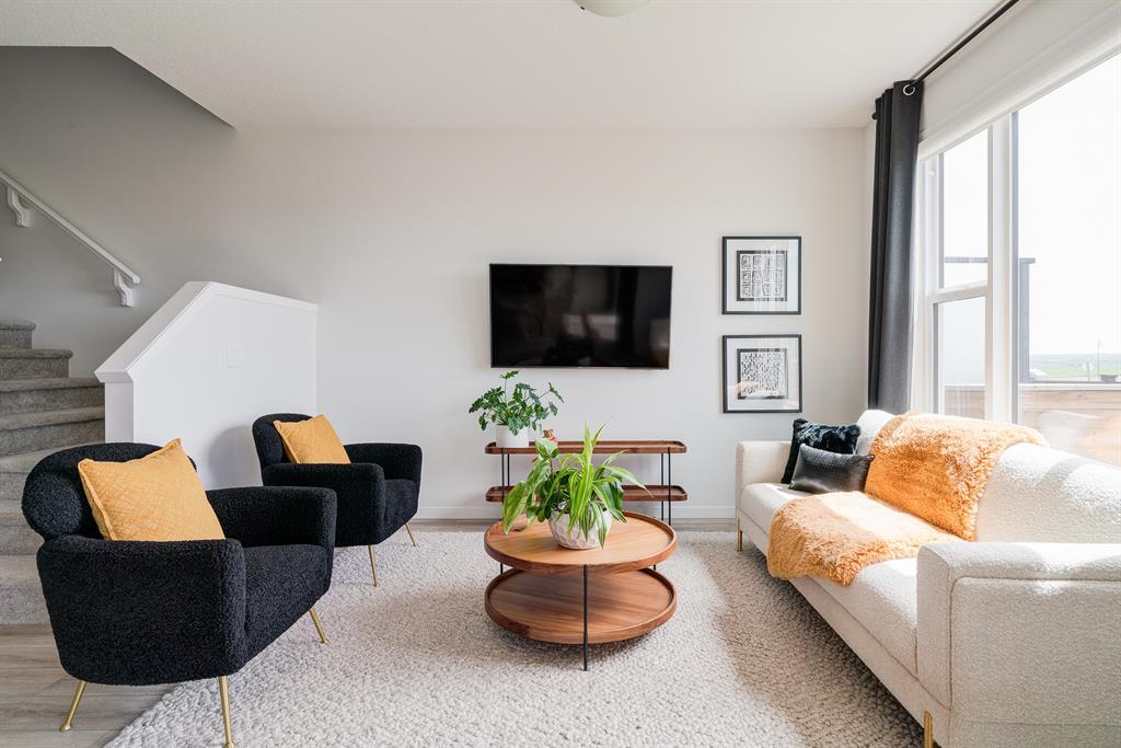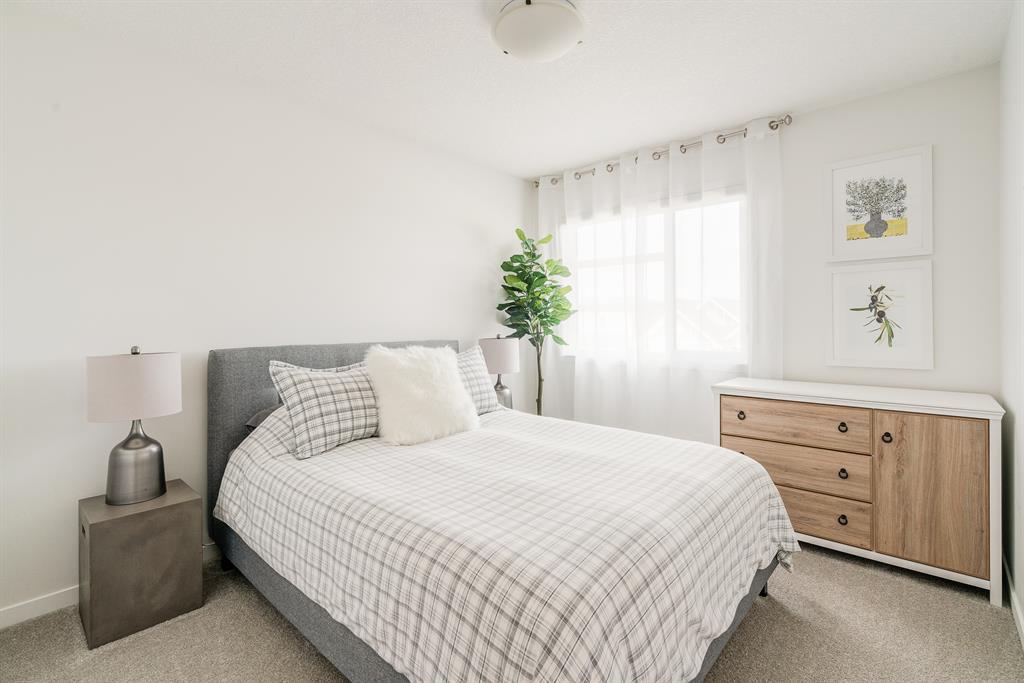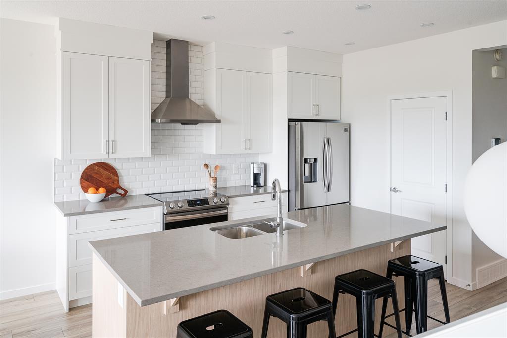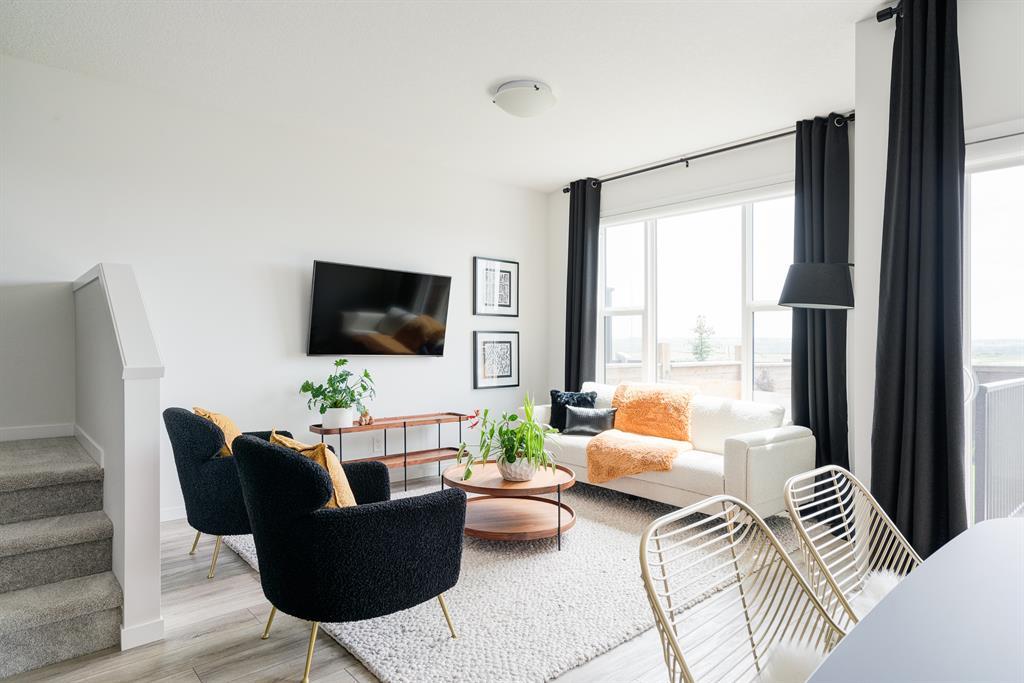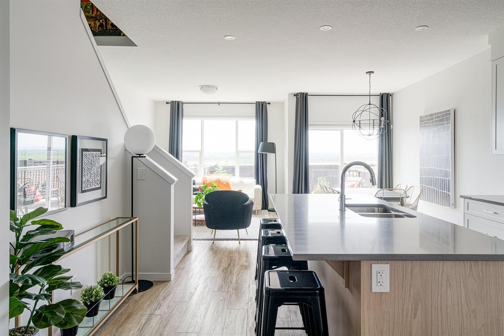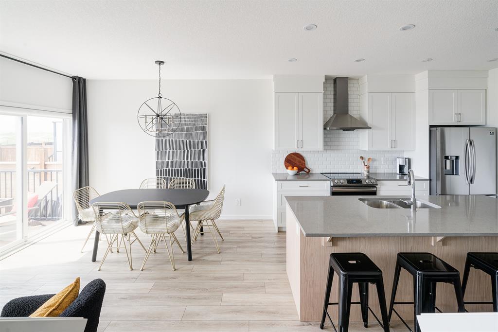 This nearly new former SHOW HOME is located on a quiet family orientated street, is completely move-in ready and just minutes away from the many great amenities of Seton Retail District. The home features 4 bedrooms 3.5 bathrooms, 2 living areas and nearly 2,000 square feet of developed space, sitting on a fully landscaped, private southwest-facing backyard lot with no neighbours behind. This professionally designed home offers an open concept layout with a timeless kitchen featuring white primary cabinetry with a large warm tone island that overlooks both living and dining areas - making a great space for entertaining. A wall of southwest facing windows in the living room and dining area allow natural light to pour into the home from morning to evening. The home is finished with modern luxury vinyl plank flooring on the main level, pristine subway tile backsplash, quartz countertops, full height cabinetry, and a suite of upgraded stainless-steel appliances including an electric range, chimney hood fan and French door fridge. Completing the main level is a kitchen pantry, 2 pc powder room and a mudroom off the garage. The upper level of the home features 3 bedrooms, 2 bathrooms and a generous laundry area with stacked washer/dryer and additional storage for added convenience for daily living. The large primary suite (with mountain views) is complete with a 4 pc en suite offering dual sinks, a walk-in shower and generous walk-in closet. Two additional bedrooms, a full bathroom with ample closet space completes the upper level. The professional developed basement includes a 4th bedroom, full bathroom and large family room ideal for a media area. Completing the lower level is an expansive storage / utility room. The attached garage will keep your vehicle and valuables safe all year long! The backyard is truly an oasis offering a southwest exposure with plenty of green space for the family to enjoy. Additionally, the home has a deck off the dining room and a lower patio perfect for BBQs with friends and family. This former show home comes well equipped with countless upgrades inside and outside of the home like central air conditioning, direct hot water, custom window treatments, epoxy coated garage floor, upgraded Dekora lighting inside, Gemstone Lighting on the exterior and a two-zone irrigation system. This family-oriented street is perfect for those looking for a beautiful Seton home steps away from the YMCA, 2 future schools, Green Line LRT, and the Homeowners’ Association. (id:22211)