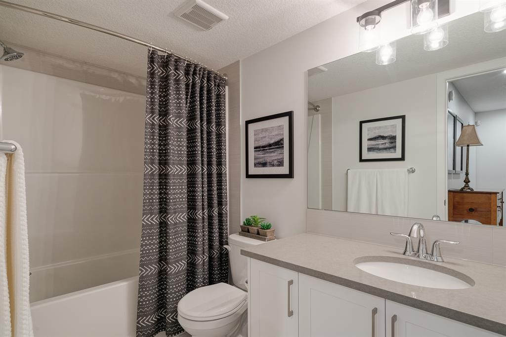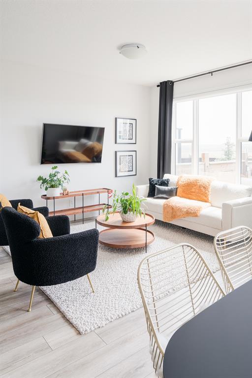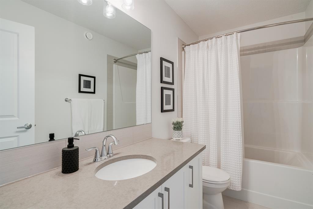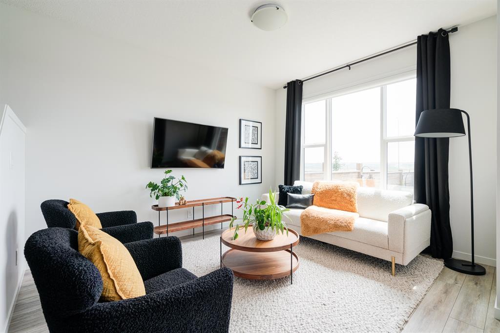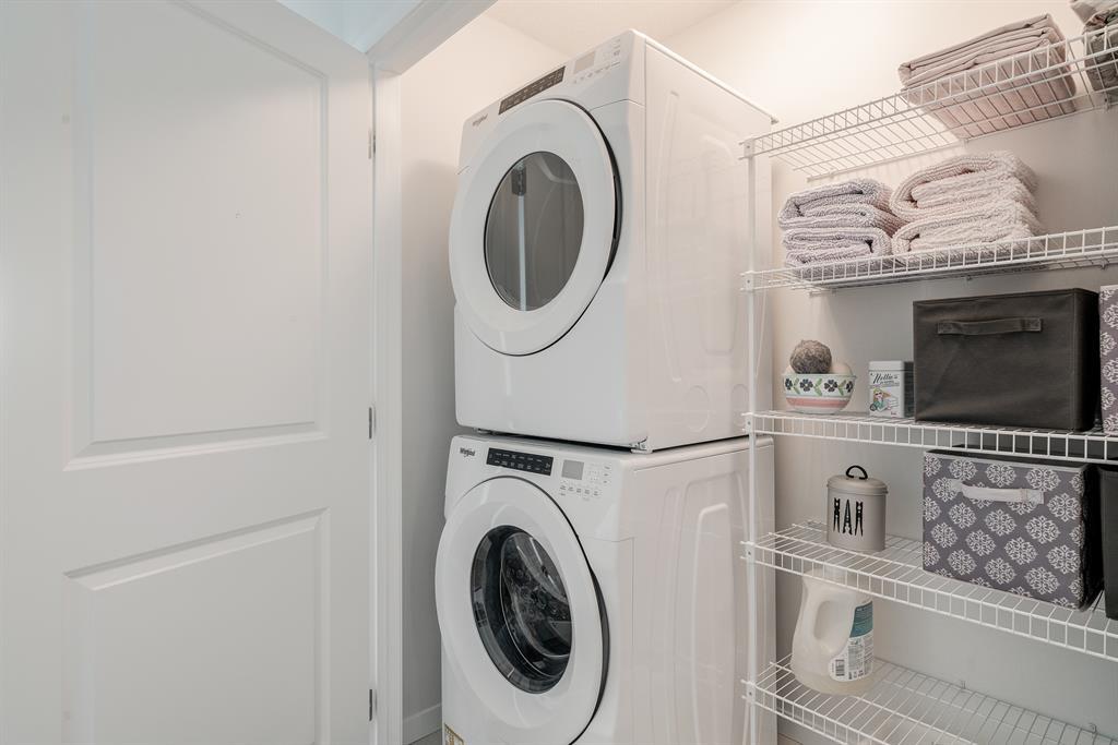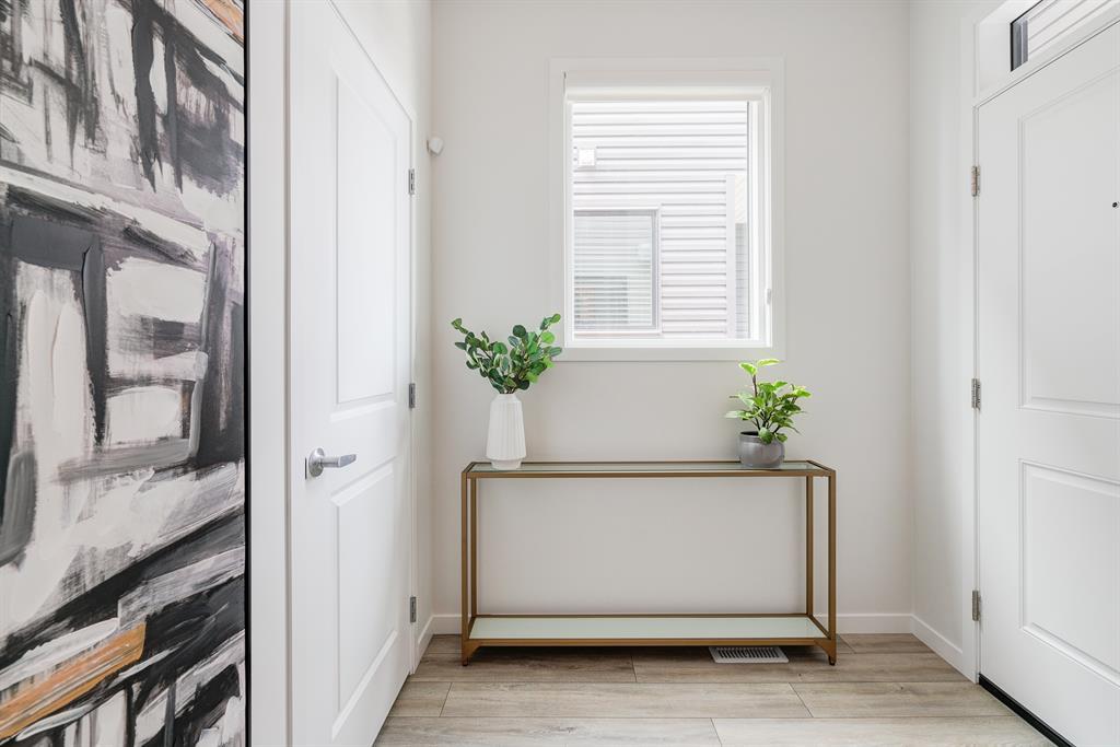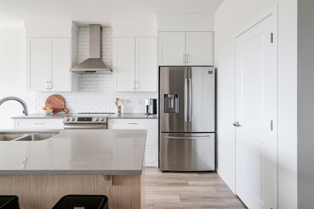 This nearly new former SHOW HOME is located on a quiet family orientated street, is completely move-in ready and just minutes away from the many great amenities of Seton Retail District. The home features 4 bedrooms 3.5 bathrooms, 2 living areas and nearly 2,000 square feet of developed space, sitting on a fully landscaped, private southwest-facing backyard lot with no neighbours behind. This professionally designed home offers an open concept layout with a timeless kitchen featuring white primary cabinetry with a large warm tone island that overlooks both living and dining areas - making a great space for entertaining. A wall of southwest facing windows in the living room and dining area allow natural light to pour into the home from morning to evening. The home is finished with modern luxury vinyl plank flooring on the main level, pristine subway tile backsplash, quartz countertops, full height cabinetry, and a suite of upgraded stainless-steel appliances including an electric range, chimney hood fan and French door fridge. Completing the main level is a kitchen pantry, 2 pc powder room and a mudroom off the garage. The upper level of the home features 3 bedrooms, 2 bathrooms and a generous laundry area with stacked washer/dryer and additional storage for added convenience for daily living. The large primary suite (with mountain views) is complete with a 4 pc en suite offering dual sinks, a walk-in shower and generous walk-in closet. Two additional bedrooms, a full bathroom with ample closet space completes the upper level. The professional developed basement includes a 4th bedroom, full bathroom and large family room ideal for a media area. Completing the lower level is an expansive storage / utility room. The attached garage will keep your vehicle and valuables safe all year long! The backyard is truly an oasis offering a southwest exposure with plenty of green space for the family to enjoy. Additionally, the home has a deck off the dining room and a lower patio perfect for BBQs with friends and family. This former show home comes well equipped with countless upgrades inside and outside of the home like central air conditioning, direct hot water, custom window treatments, epoxy coated garage floor, upgraded Dekora lighting inside, Gemstone Lighting on the exterior and a two-zone irrigation system. This family-oriented street is perfect for those looking for a beautiful Seton home steps away from the YMCA, 2 future schools, Green Line LRT, and the Homeowners’ Association. (id:22211)