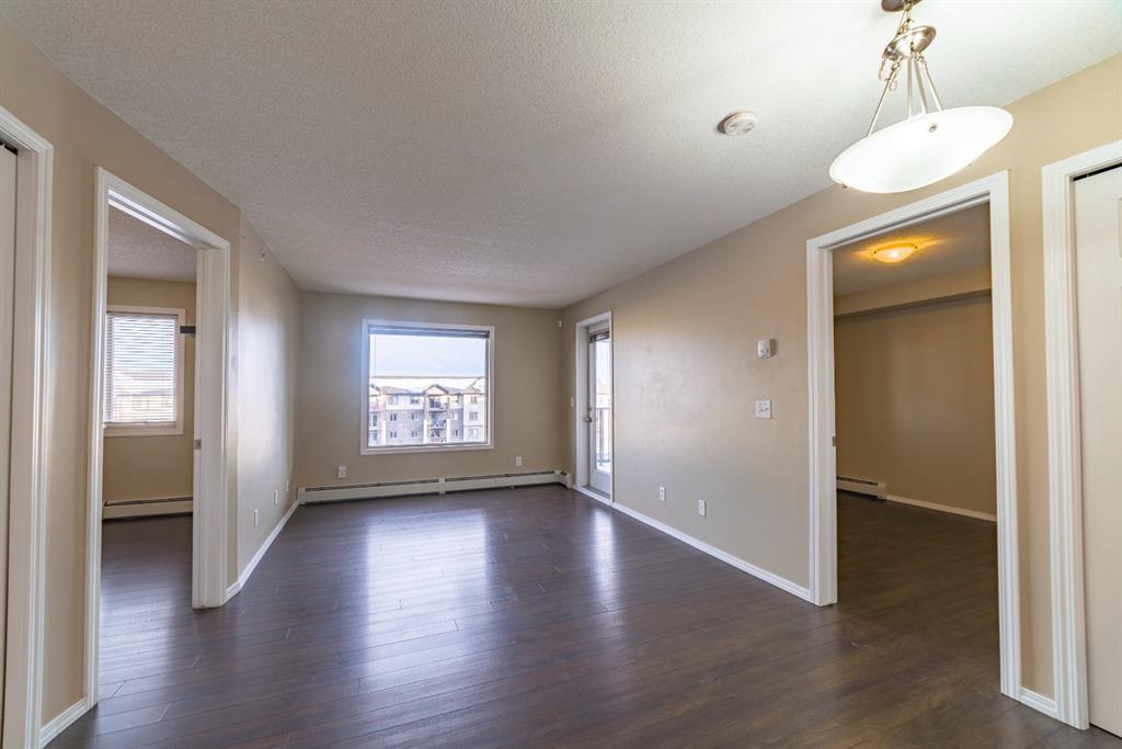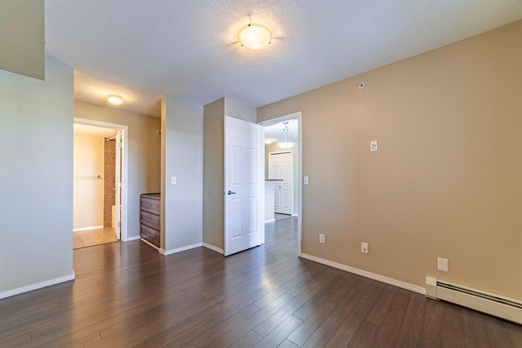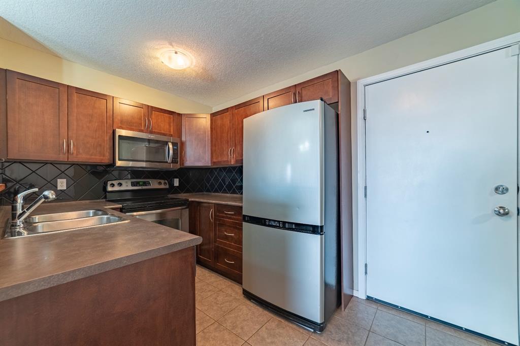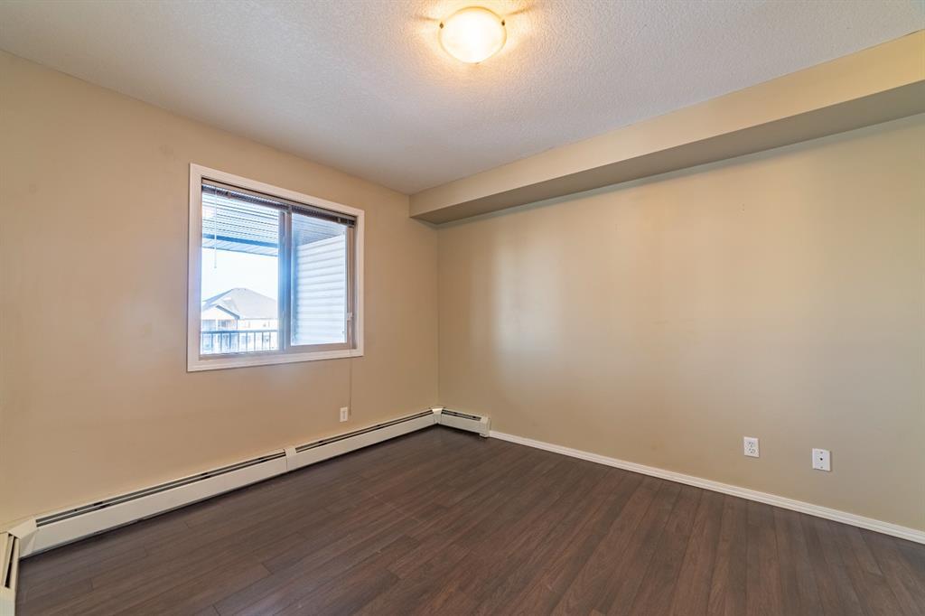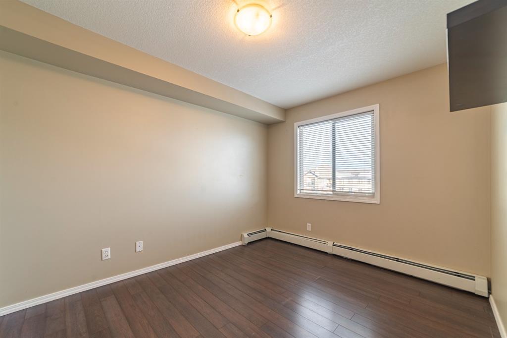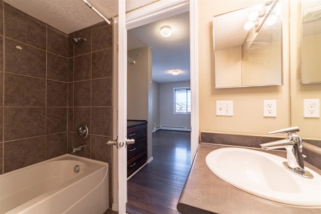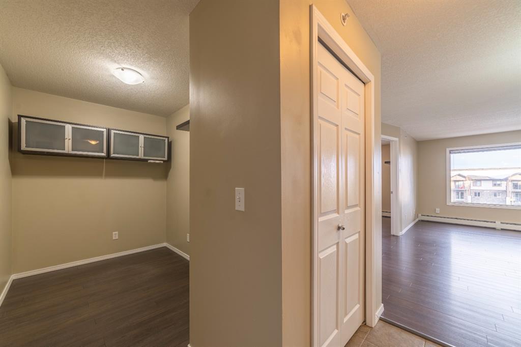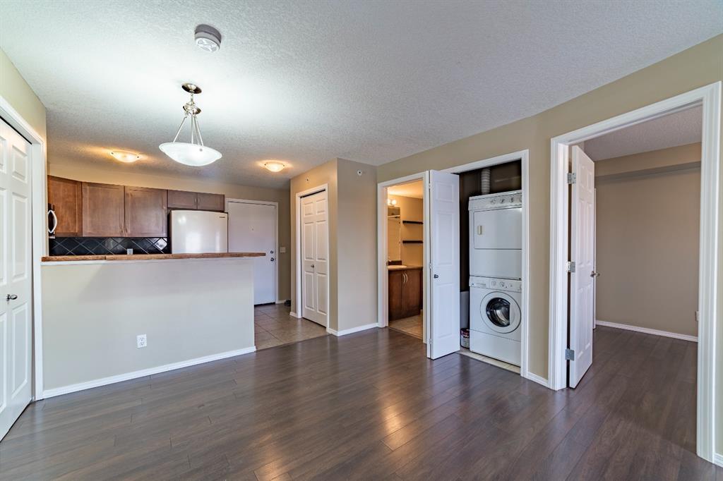 Click on Virtual tour! Welcome to this 2 bedroom (plus Den) and 2 bath Top floor condo in Bridleview Pointe! The flex room is an ideal Den/Office or quiet area to sit and read and features attached cabinets for some storage. The Kitchen is spacious with ample counter space and features S/S appliances including a dishwasher and over the range microwave. The cupboards provide plenty of room for storage and the breakfast bar features a unique custom made attachment for extra space when dining (located in 2nd bedroom closet). The Master Bedroom has his/her closets with custom built in drawers/organizers and a full 4 piece ensuite bathroom. The second bedroom is a good size as well. This unit offers in suite laundry, complete with a stacking washer and dryer. Patio doors lead from the Living Room to the large covered balcony, giving you great views of the courtyard and neighbourhood. The flooring is ceramic tile and laminate and is in great condition. One titled u/g parking stall is included. Don't delay viewing this vacant property! It's priced well and makes a great first time home or investment property. (id:22211)