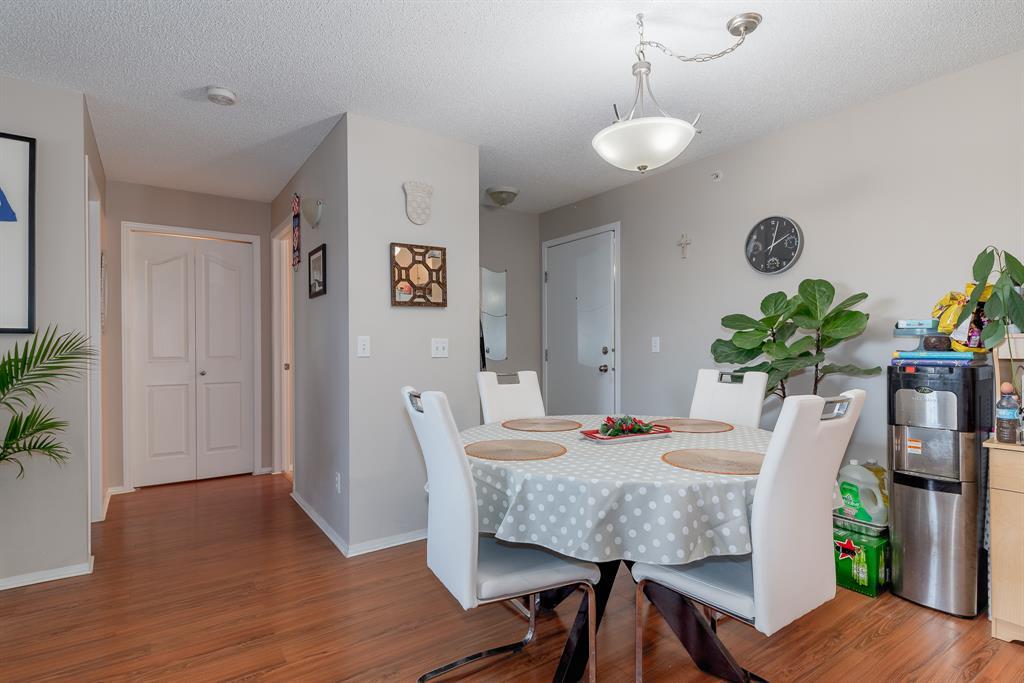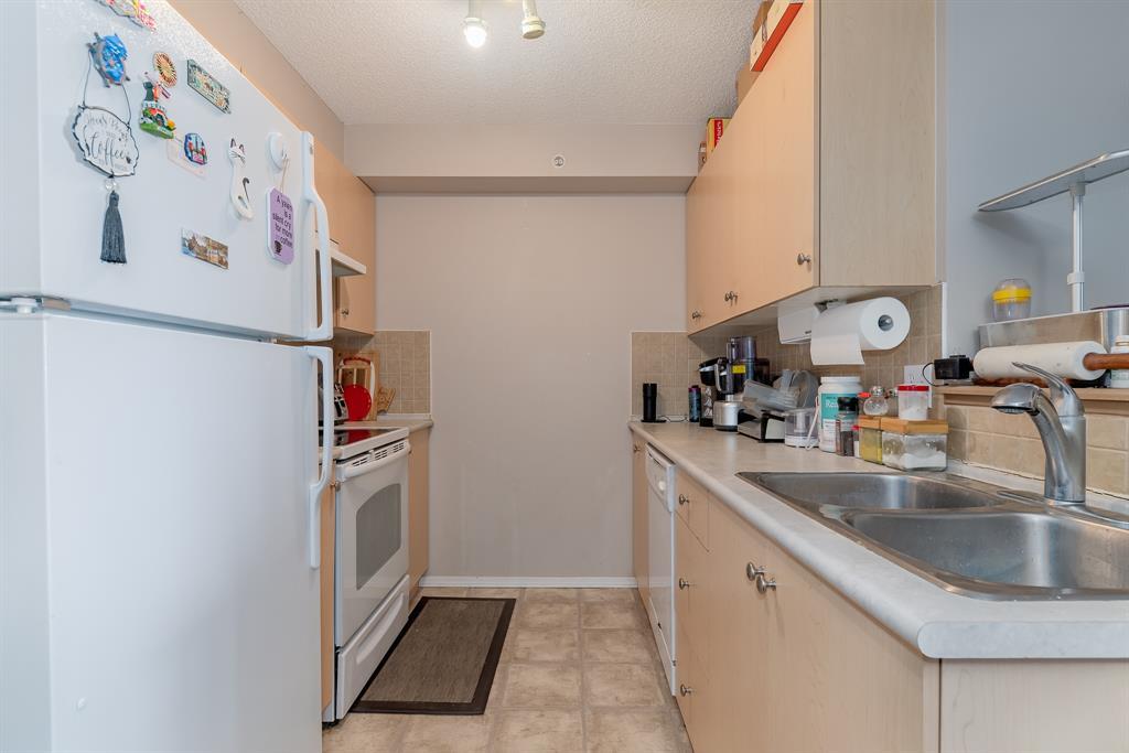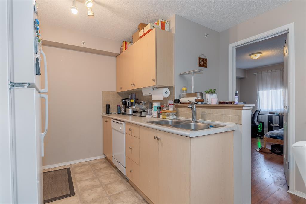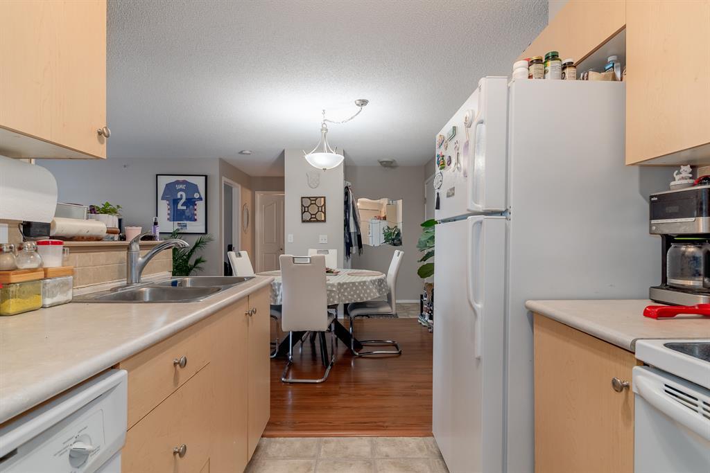 Tremendous value for this 2 bedrooms top floor unit in desirable Bridleview Pointe! This well maintained condo apartment features an open plan as you walked in. Upgraded laminate floor through out the dinning room, living room & bedrooms. Galley kitchen packed with maple cabinets, white appliances and tile backsplash! Well designed dinning room & living room separates the two bedroom makes it no space to waste! Good sized bedroom both has large windows allow good lighting and a patio door walks out from living room to a balcony with views! Insuite laundry room also has space for storage. LOW CONDO FEES INCLUDING ELCTRICITY, HEAT, WATER & SEWER etc. ALL UTILITIES! Also comes with a Titled underground parking stall #158 & a storage LOCKER! Great investment with it's super location being so close to outdoor playground, soccer field, parks, schools, shopping and transit! Look no further! **Long term tenants occupied please allow 24 hours notice to show** (id:22211)