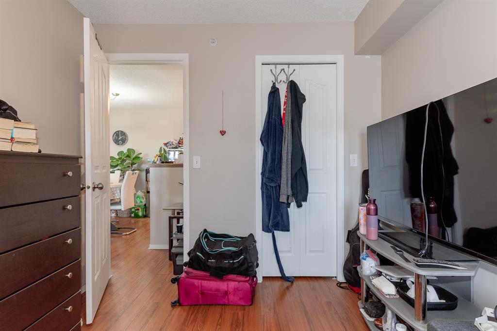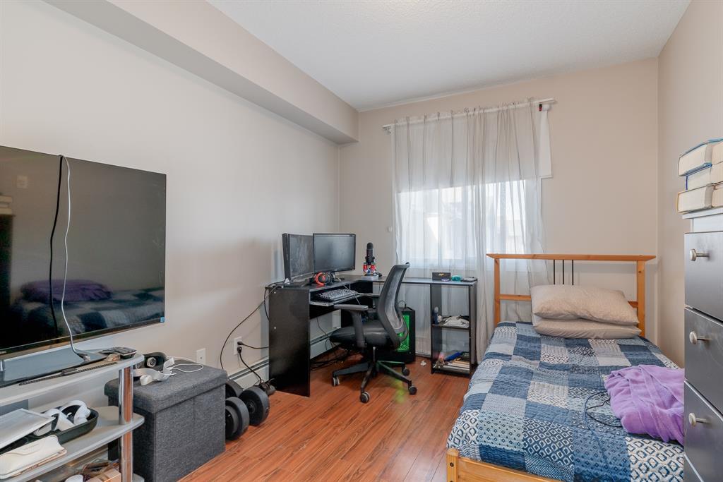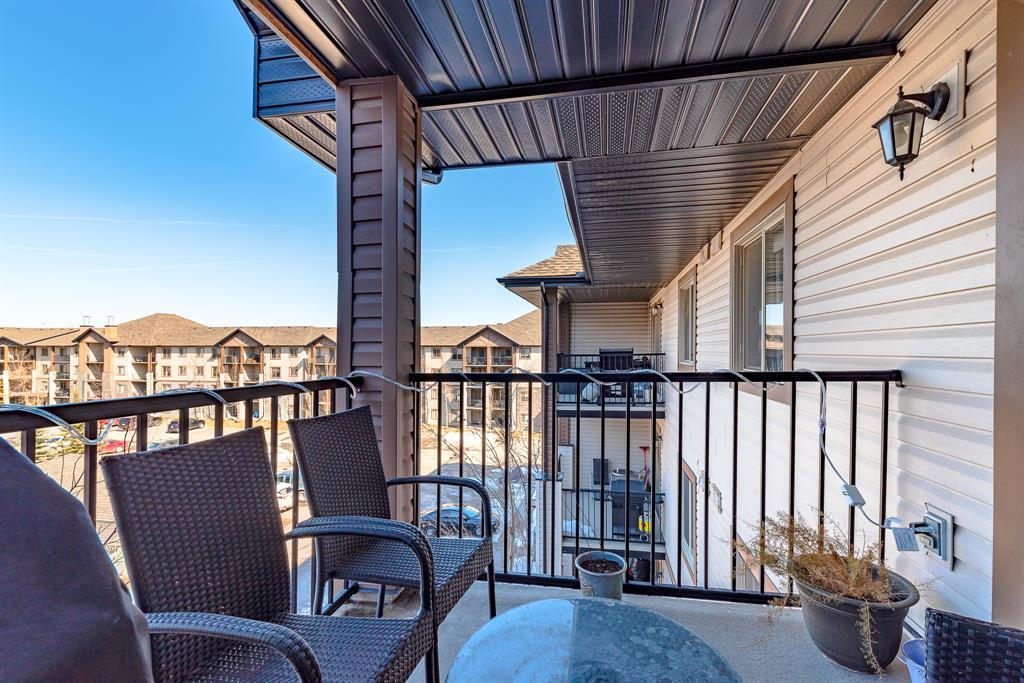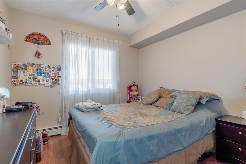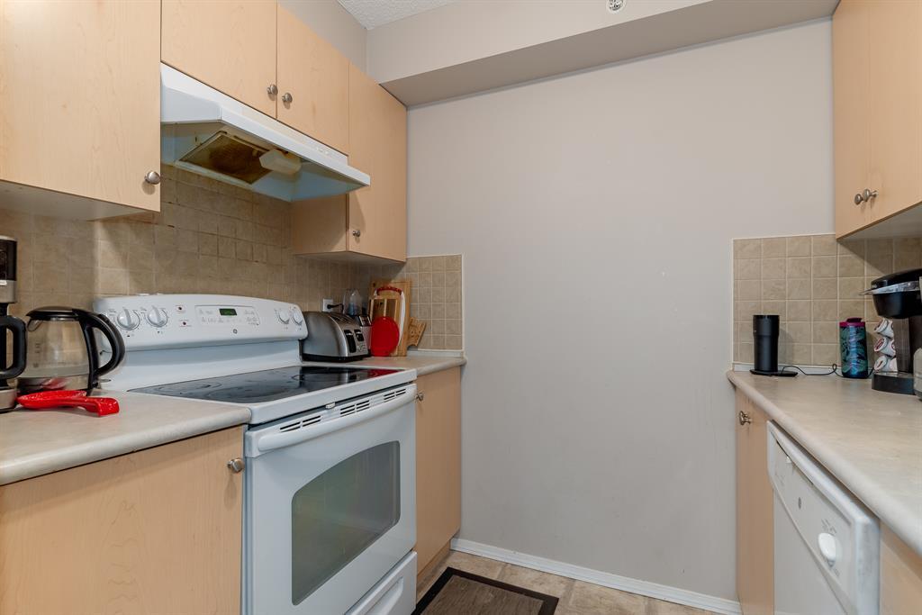 Tremendous value for this 2 bedrooms top floor unit in desirable Bridleview Pointe! This well maintained condo apartment features an open plan as you walked in. Upgraded laminate floor through out the dinning room, living room & bedrooms. Galley kitchen packed with maple cabinets, white appliances and tile backsplash! Well designed dinning room & living room separates the two bedroom makes it no space to waste! Good sized bedroom both has large windows allow good lighting and a patio door walks out from living room to a balcony with views! Insuite laundry room also has space for storage. LOW CONDO FEES INCLUDING ELCTRICITY, HEAT, WATER & SEWER etc. ALL UTILITIES! Also comes with a Titled underground parking stall #158 & a storage LOCKER! Great investment with it's super location being so close to outdoor playground, soccer field, parks, schools, shopping and transit! Look no further! **Long term tenants occupied please allow 24 hours notice to show** (id:22211)