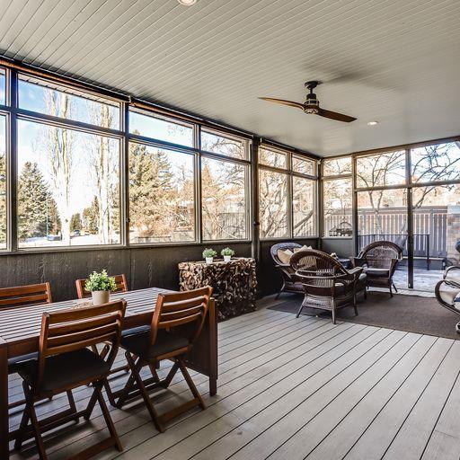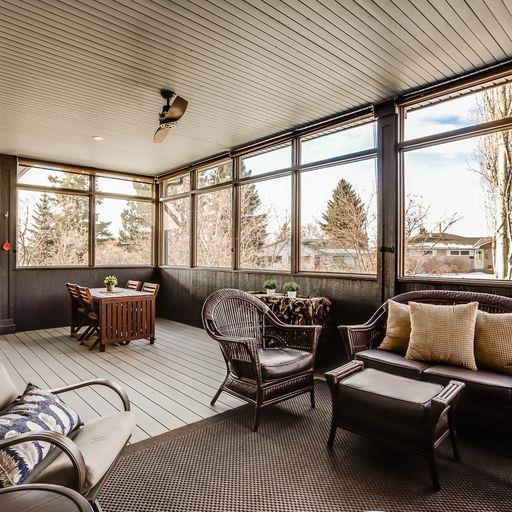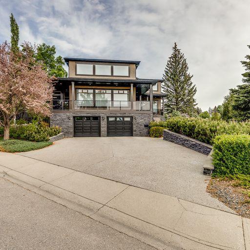 Pictures could not do this beautiful Foothills Estates home justice!Centrally located to downtown, the airport, and all major traffic arteries, this tranquil 3400+ sq. ft. home sits on a large corner lot on a quiet street.A stunning mix of urban luxuries and warm elements of nature, this home is filled with natural light, including full wall windows in the main living space and boasts views of vibrant downtown and the majestic Rocky Mountains.Main Floor:• Large kosher kitchen with loads of cabinetry and pantry• 10-foot centre island with bar seating, stainless steel countertops and built-in appliances• Breakfast nook, formal dining area, large living room with gas fireplace and extensive windows • Bright and cheery half bath• Beautiful, private library with built in bookcases.Upper Level:• 3 large bedrooms, each with their own ensuite bathrooms and closet space• Sitting/office area with fantastic views• Laundry facilities, a coffee bar area with bar fridge and sink, plus a balcony to enjoy your morning brew with views to downtown Calgary• Master bedroom and 5-piece ensuite with steam shower, walk-in closets, gas fireplace and plenty of windows with stunning views to the westLower Level:• Utility style suite consisting of family room and 3-piece bathroom• Laundry room and half bath• Mechanical room and plenty of storageThe lower level has beautiful, stained concrete flooring throughout and the 2 upper levels have new engineered hardwood flooring installed in 2020.The entire home and triple tandem garage are heated with in-floor radiant heating through a high efficiency natural gas fired boiler system.This home is fully accessible with an elevator to all 3 floors.The screened in three-season porch just off the kitchen extends the full length of the side of the home. This leads to the back yard on one side and a lovely wrap around balcony on the other side. This area is very private and cozy and the back yard is an ideal space for entertaining g roups with patio areas and a gas connection for barbeque hook-up.Additional features:• New roof (2020), eaves trough and downspouts (2022)• 2 split unit air conditioners/heaters plus a high-powered fan system• Monitored alarm system that can be assumed• 9-foot ceilings This neighborhood boasts access to plenty of green space with a large off-leash park, playgrounds and trails to walk and run which lead up to the paths of Nose Hill Park.The Calgary Winter Club is within easy walking distance as well, and there are plenty of local shops and nearby amenities. (id:22211)