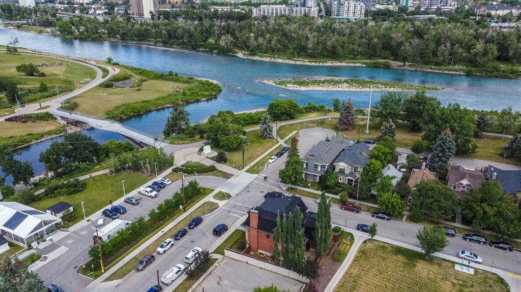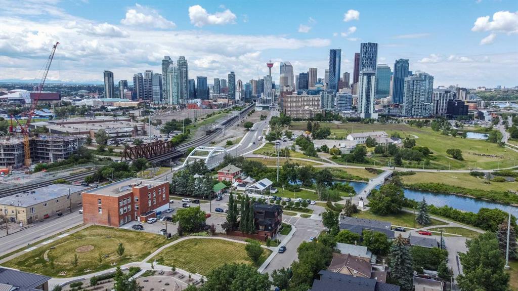 Multi-purpose property for home/home offices, custom built in 2004. The property boasts over 5000 square feet of living space and if partitioned, contains 12 grand rooms for offices or meeting rooms, together with a fully equipped one bedroom illegal suite with a private entrance. Manchester Brick enhances this 1900 Era Victorian Manor style Home. In worthy company of many of the finest first homes in Calgary, the property is situated in the McGill Block adjacent to the Deane House and the Bow and Elbow River in Inglewood's original town-site. The extensive floor plan flows openly or can be formal and private with double Oak and Glass French doors. The main level with its gracious Foyer embedded with Etched granite offers either elegant living space or as spacious work/live offices with a Board Room with fireplace and Wet Bar, a private Study as well as a Guest Bedroom with Ensuite and courtyard view with a Sweeping Oak staircase. The Kitchen features quality Maple cabinets, tile floors, accompanied by beautiful Granite counters, a large center island, walk-in Pantry and butler's pantry, grocery lift, laundry area and park views. The balconies from this 2nd floor are ideal for a sunny morning café overlooking the adjacent Jack Long Memorial Park' and westward City skyline. The Living and Dining Room are bridged by a full window landing with access from both to the second floor Terrace where you can pan across the stunning open views of Downtown Calgary, both the Elbow and Bow Rivers, the bridges of Calgary and pathways as well as and Fort Calgary Park and across to the North hill. The sunny Living Room leads to a Parlor with Wet Bar and fireplace which also adjoins an Entertainment room. The 3rd floor is dedicated to the Primary Bedroom including Fireplace, a private Den and expansive walk-in Dressing Room, a sumptuous 5 piece bathroom with a beautiful Downtown View, Jetted tub and a Private Master Bedroom balcony for enjoying the views. The comfortable lower leve l with in-floor heating is comprised of a newly finished 1,075 square foot one-Bedroom fully self-contained level with separate door alarm and entry that is easily incorporated into the home. The double-attached garage also enjoys in-floor heating as well as its own water and vacuum system for the car buff and features Stained concrete floors and wood Carriage House overhead doors. The Private yard with interlocking tumbled stone patio is a sun filled space to enjoy a Barbecue or a summer beverage next to flowers, shrubs and container gardens including a dedicated sprinkler system. Featuring Omni-Pro Smart Home to control climate, lighting and security from anywhere. Created as a Grand Home or a Work/Live concept with an ideal Commercial/Business location. Exceptionally located for those who love a very quick walk to Downtown Calgary, the local Shops & Bistro's and desire to live surrounded by Parks and Rivers. (id:22211)