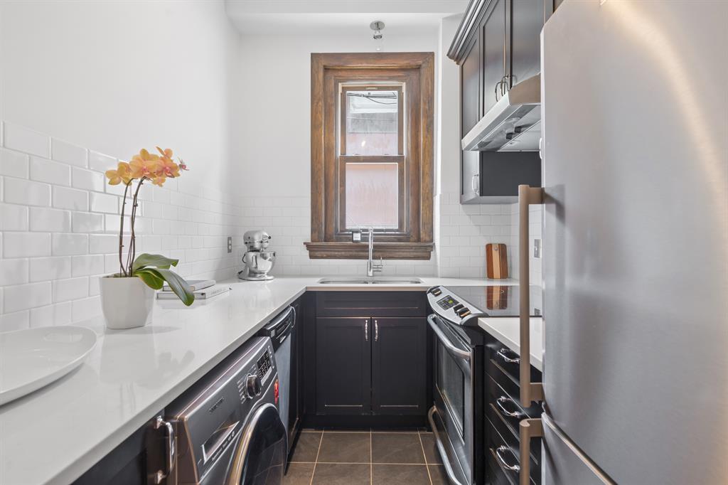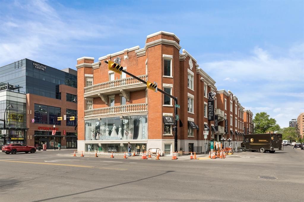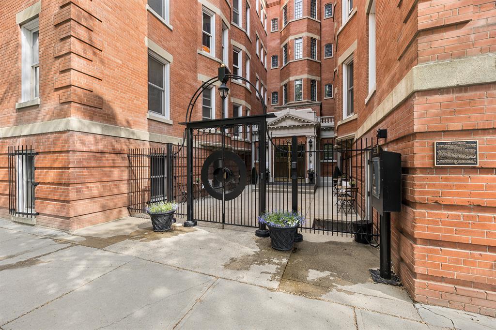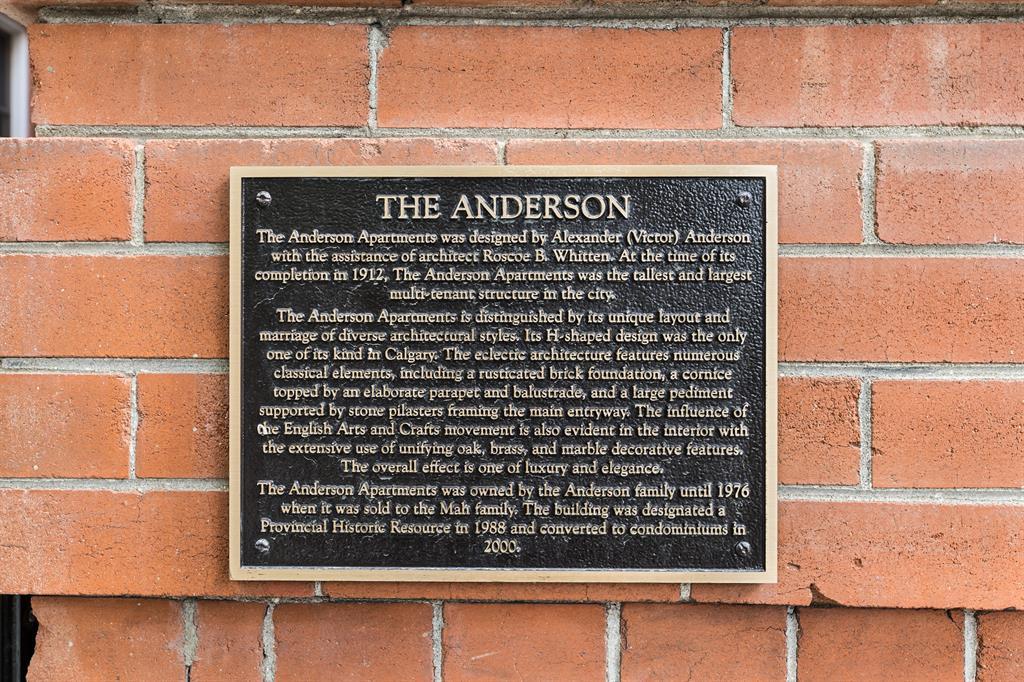 Welcome to the iconic and unique Anderson Estates! The first concrete high-rise building erected in Calgary in 1912. The H-shaped, rusticated brick and stone structure features a functional brass bird cage elevator, operatic-style marble staircase and terrazzo floors. The historic ‘Gatsby’ style hallmark building is based just off 17th Avenue in much sought after Lower Mount Royal. The beautifully appointed Unit is entirely renovated with site finished golden maple hardwood floors. The customized galley kitchen features stainless steel appliances, quartz countertops, black maple wood cabinets, dovetail drawers and in-suite washer. There are original mission oak doors and door frames, 12 inch baseboards, six character windows and antique cast iron radiators. Look up to admire soaring 10 foot ceilings, a mod-vintage mercury glass living room chandelier and designer light fixtures throughout. The character bathroom incorporates a refinished cast iron clawfoot tub, pedestal sink and stunning new marble style tile. Enjoy entertaining family and friends in your back courtyard kitted with BBQ, dining tables, sofas and chairs. Enjoy a coffee in the front courtyard decorated with bistro-style furniture. Amenities include a free use extra-large washer & dryer, assigned storage locker and leased bike storage. During the lifetime of this elegant edifice, TV shows, commercials and movies were filmed here including Fargo, Rust City, The Dorm, Ghostbusters and Jann Arden’s music video ‘Insensitive’. Walkability is a 10/10 with a 94% Walk Score! Stroll or bike downtown and along the Bow River pathways. Visit Tomkins Park, award-winning restaurants, coffee shops and trendy retail boutiques nearby. Walking distance to Urban Fare and Goodlife Fitness. The building provides an excellent weekday concierge service and is pet-friendly. The opportunity to live in this rare property won’t last long. Book your viewing today! (id:22211)