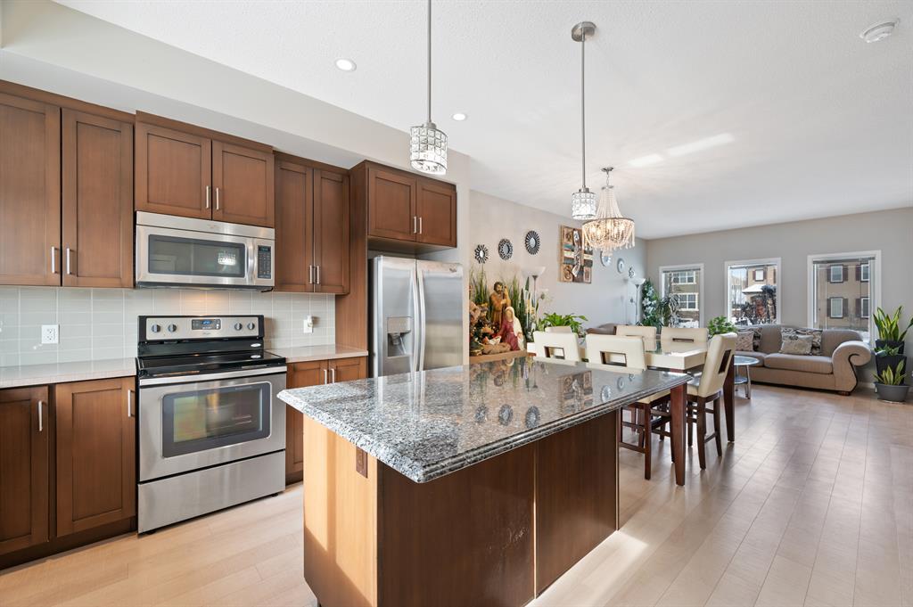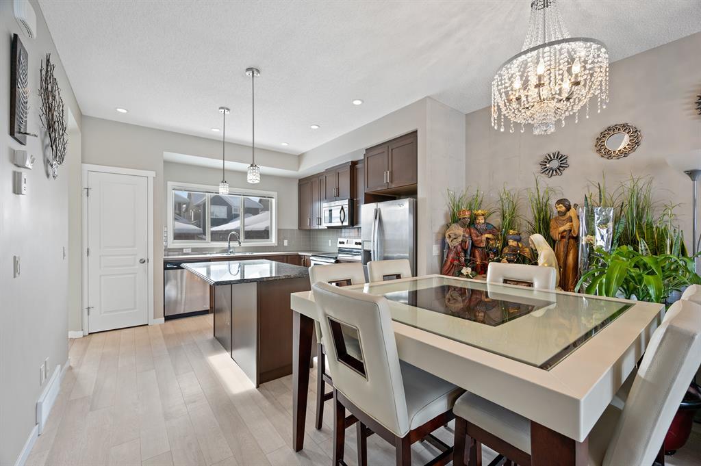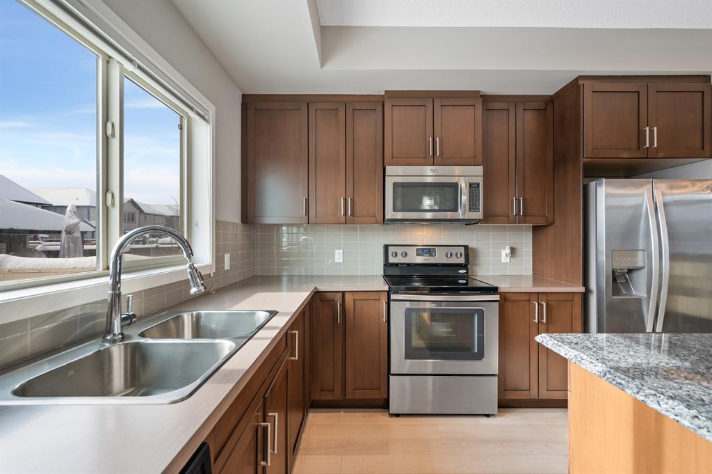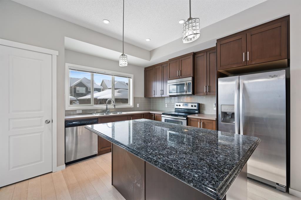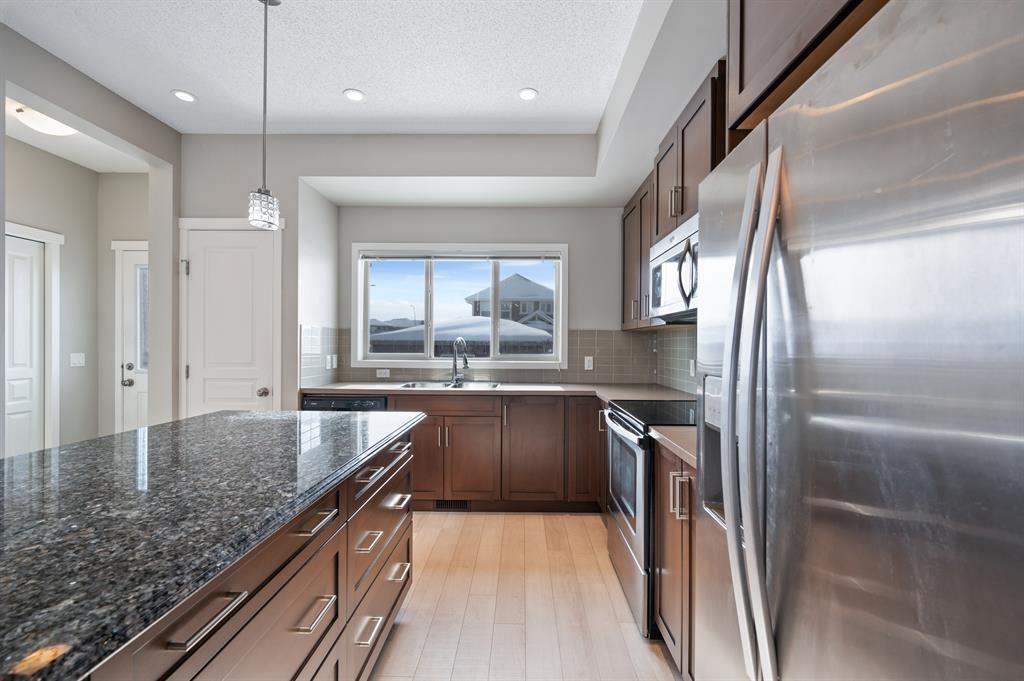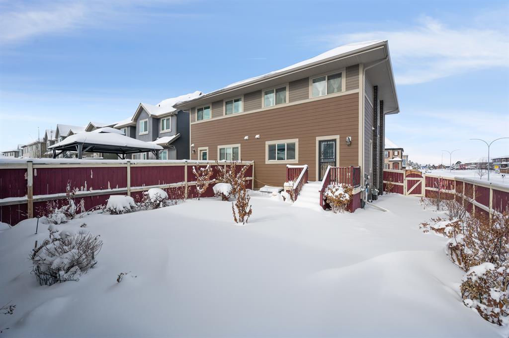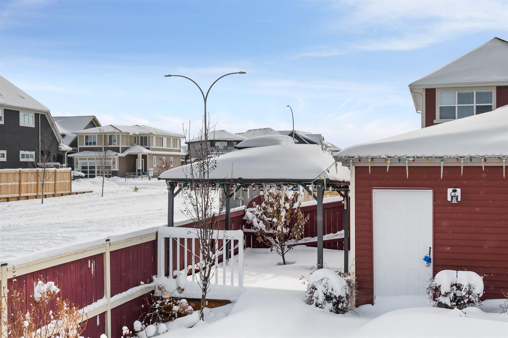Lake living in Mahogany with a short walk to the main beach! This well kept 3 bedroom, 2.5 bathroom home sits on an oversized corner lot. As you enter the property you are greeted by the luxury vinyl plank flooring guiding you through the open concept floorplan. Large living room with big bright windows letting in tons of natural light. Gorgeous kitchen with chocolate stained maple cabinetry, stainless steel appliances, tile backsplash, and large center island with granite counter. Open to the dining room and access door to the beautifully landscaped sunny South facing backyard! Head upstairs to the spacious master suite with walk in closet and 4-piece ensuite bathroom. Good sized second and third bedrooms with another full 4-piece bathroom complete this family friendly upper level! The fully fenced and meticulously landscaped South backyard is a gardeners and sun lovers dream! The perfect place to spend late summer evenings on the extended back deck with gazebo. Leads to an oversized double detached garage and lots of side parking. All this with nearby parks, schools, and limitless shopping, dining and services. Take advantage of everything this prime location in the sought after LAKE COMMUNITY of Mahogany has to offer! (id:22211)