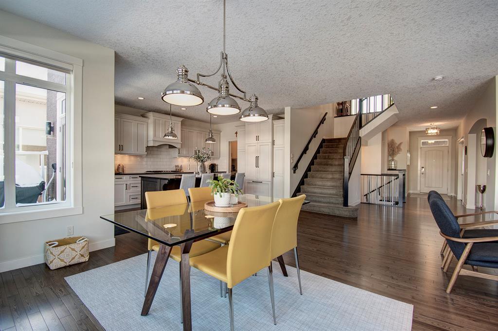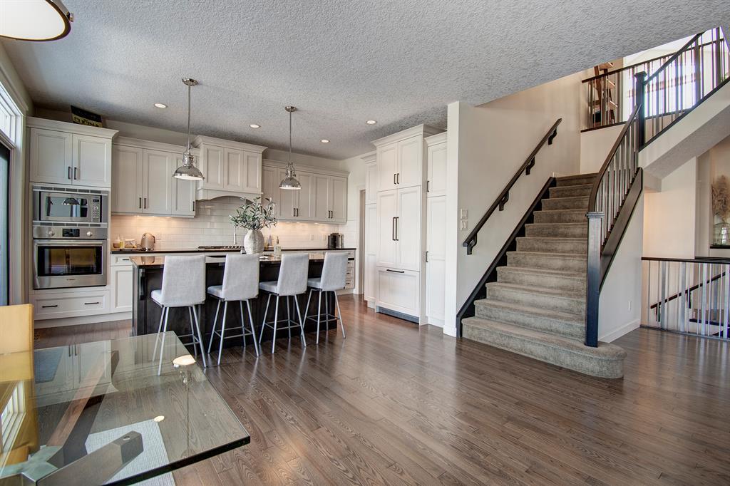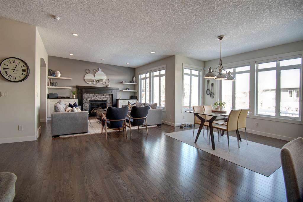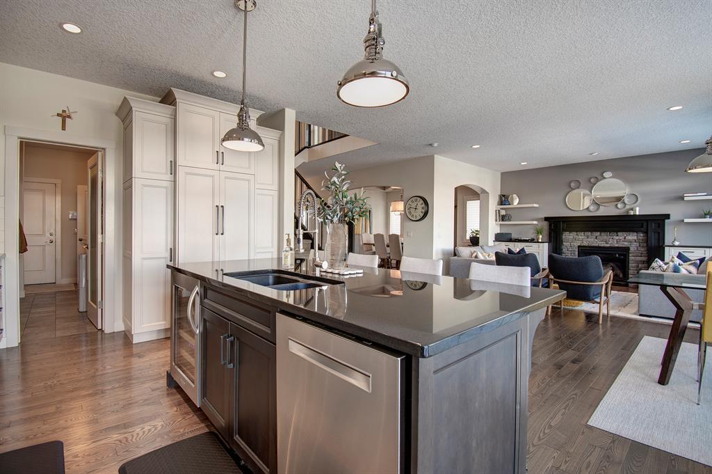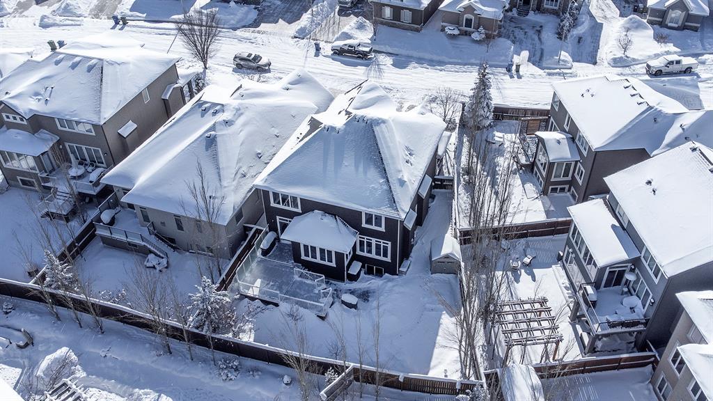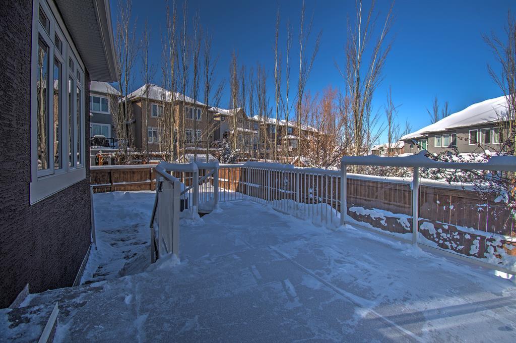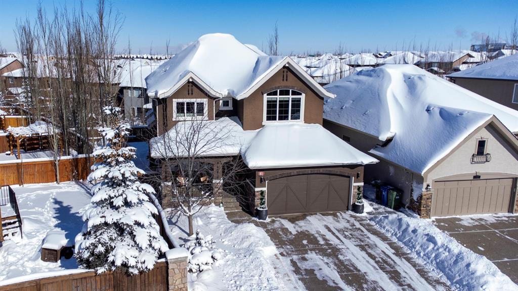 Imagine finding the home of your dreams. Rarely does a home of this quality see the market. Located on a quiet street with great neighbors, nothing has been overlooked in this estate home nestled in the heart of Cranston. Gorgeous curb appeal will entice you for the interior experience. Greeted by a total open concept plan that screams 'home', the soaring foyer leads you to the living room, dining room, and kitchen area. Dream kitchen includes a tasteful combination of white cabinets, upgraded stainless steel appliances, and large island with breakfast bar. The island overlooks the eating and living room making it perfect for entertaining guests. Enjoy cozy winter nights curled up in front of the fireplace, which is surrounded by beautiful built-in additions. The pantry goes directly to the mudroom and garage. Enjoy a summer BBQ on the raised deck. Completing the main floor are a private office with built-in desk and cupboards, and half bathroom. Gleaming hardwood flooring dominates the main floor. The upper level offers a generous sized primary bedroom, which comes complete with a 5-piece ensuite. Ensuite includes dual sinks, tile shower with 10mm glass, soaker tub, and a large walk-in closet. The two additional bedrooms each have their own walk-in closet. The vaulted bonus room is wired for sound and has awesome mountain views. A perfect spot for the big screen. Completing the upper level is a dedicated laundry room, which comes complete with cupboards, extra counter space, and shelving. The fully developed lower level, which includes an additional bedroom, workout room, full bathroom, and recreational space with wet bar, is truly icing on the cake. This home will check all of your requirement boxes. Easy access to Deerfoot, Stoney Trail, downtown Calgary. This home is steps to the ridge and all the endless path systems that Calgary has to offer. Walking distance to area shopping, schools, and the large Community Center, which has a gym, banquet halls, tennis cour ts and outdoor rink (winter) and splash park (summer). This home is a must see! (id:22211)