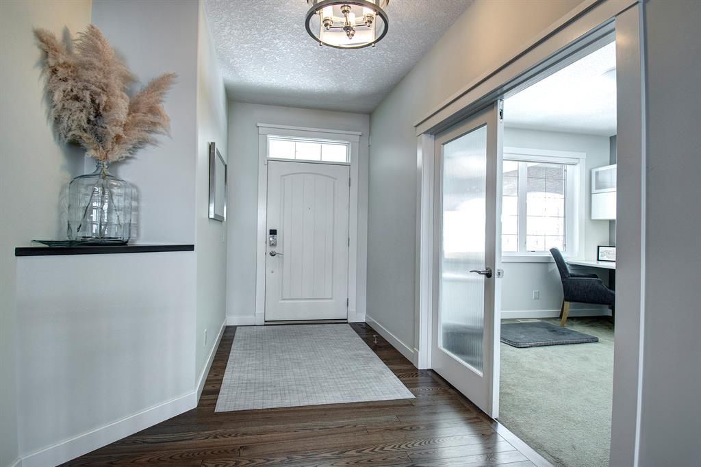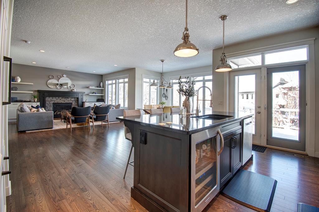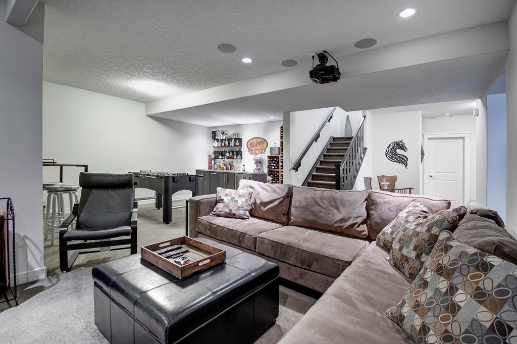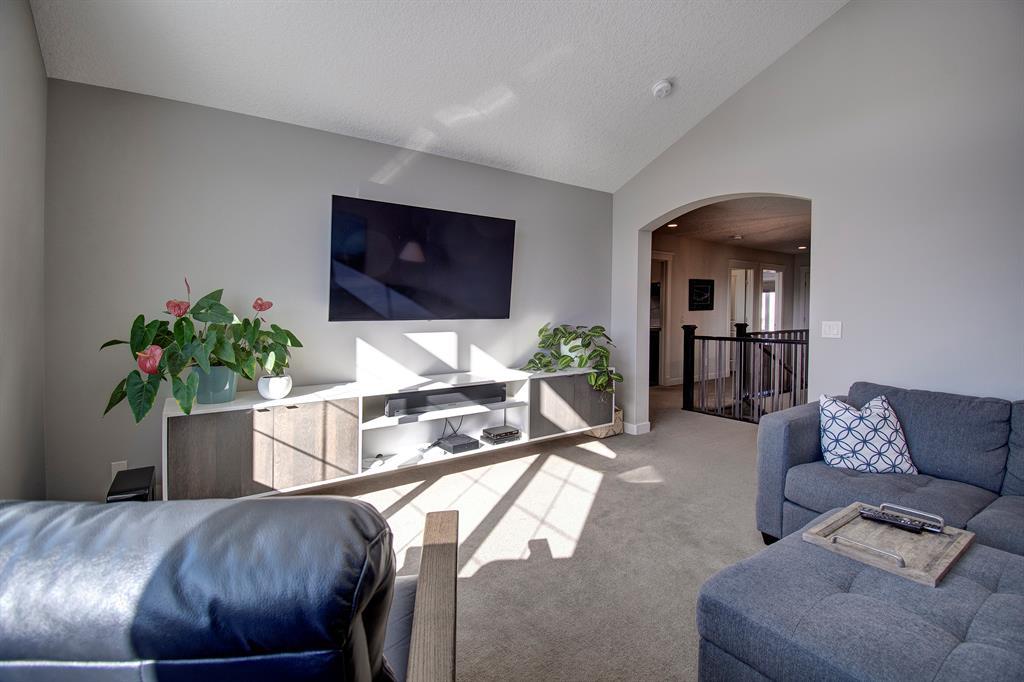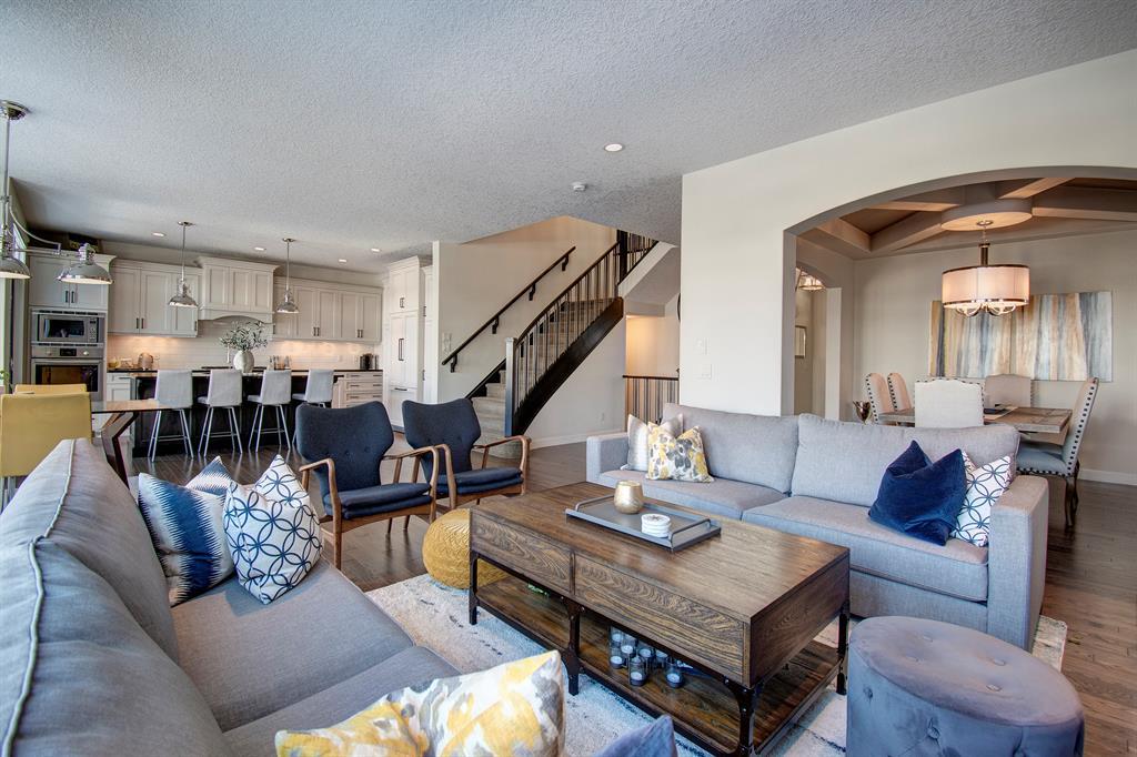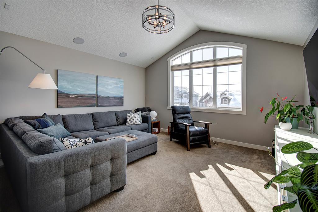 Imagine finding the home of your dreams. Rarely does a home of this quality see the market. Located on a quiet street with great neighbors, nothing has been overlooked in this estate home nestled in the heart of Cranston. Gorgeous curb appeal will entice you for the interior experience. Greeted by a total open concept plan that screams 'home', the soaring foyer leads you to the living room, dining room, and kitchen area. Dream kitchen includes a tasteful combination of white cabinets, upgraded stainless steel appliances, and large island with breakfast bar. The island overlooks the eating and living room making it perfect for entertaining guests. Enjoy cozy winter nights curled up in front of the fireplace, which is surrounded by beautiful built-in additions. The pantry goes directly to the mudroom and garage. Enjoy a summer BBQ on the raised deck. Completing the main floor are a private office with built-in desk and cupboards, and half bathroom. Gleaming hardwood flooring dominates the main floor. The upper level offers a generous sized primary bedroom, which comes complete with a 5-piece ensuite. Ensuite includes dual sinks, tile shower with 10mm glass, soaker tub, and a large walk-in closet. The two additional bedrooms each have their own walk-in closet. The vaulted bonus room is wired for sound and has awesome mountain views. A perfect spot for the big screen. Completing the upper level is a dedicated laundry room, which comes complete with cupboards, extra counter space, and shelving. The fully developed lower level, which includes an additional bedroom, workout room, full bathroom, and recreational space with wet bar, is truly icing on the cake. This home will check all of your requirement boxes. Easy access to Deerfoot, Stoney Trail, downtown Calgary. This home is steps to the ridge and all the endless path systems that Calgary has to offer. Walking distance to area shopping, schools, and the large Community Center, which has a gym, banquet halls, tennis cour ts and outdoor rink (winter) and splash park (summer). This home is a must see! (id:22211)