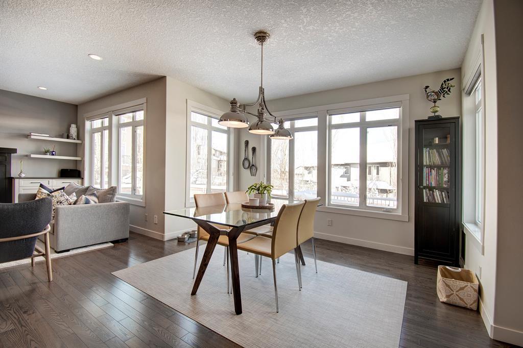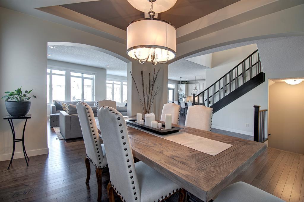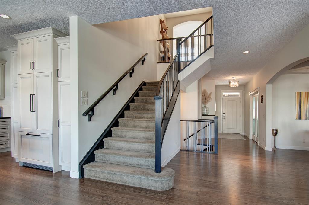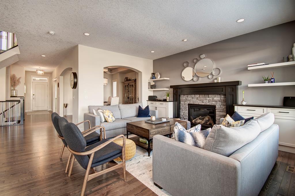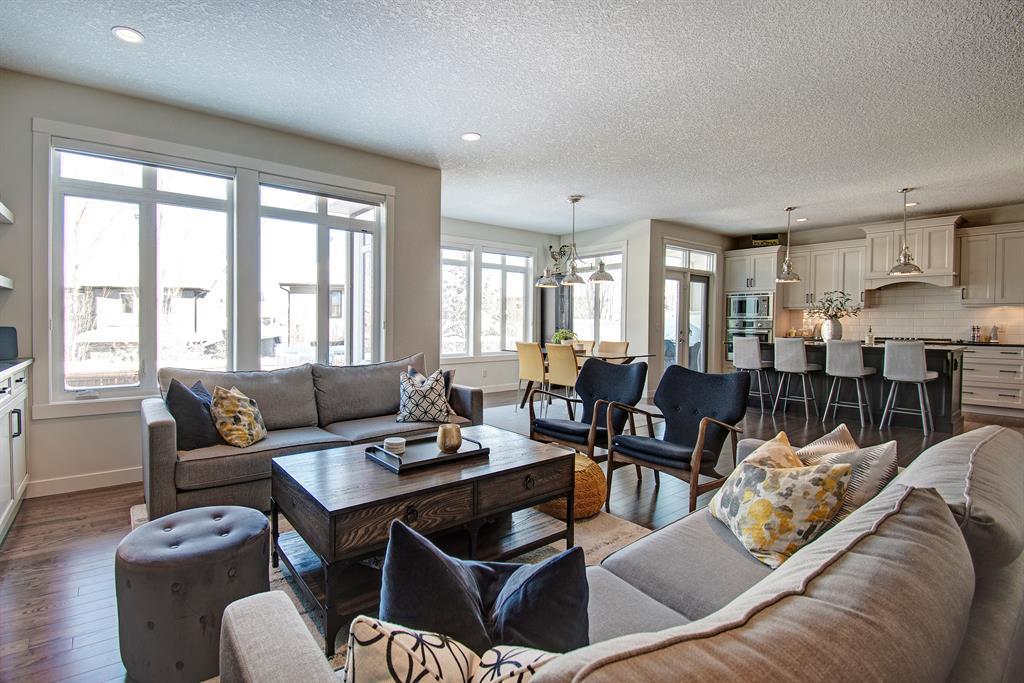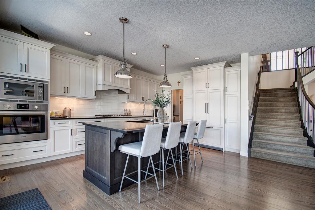 Imagine finding the home of your dreams. Rarely does a home of this quality see the market. Located on a quiet street with great neighbors, nothing has been overlooked in this estate home nestled in the heart of Cranston. Gorgeous curb appeal will entice you for the interior experience. Greeted by a total open concept plan that screams 'home', the soaring foyer leads you to the living room, dining room, and kitchen area. Dream kitchen includes a tasteful combination of white cabinets, upgraded stainless steel appliances, and large island with breakfast bar. The island overlooks the eating and living room making it perfect for entertaining guests. Enjoy cozy winter nights curled up in front of the fireplace, which is surrounded by beautiful built-in additions. The pantry goes directly to the mudroom and garage. Enjoy a summer BBQ on the raised deck. Completing the main floor are a private office with built-in desk and cupboards, and half bathroom. Gleaming hardwood flooring dominates the main floor. The upper level offers a generous sized primary bedroom, which comes complete with a 5-piece ensuite. Ensuite includes dual sinks, tile shower with 10mm glass, soaker tub, and a large walk-in closet. The two additional bedrooms each have their own walk-in closet. The vaulted bonus room is wired for sound and has awesome mountain views. A perfect spot for the big screen. Completing the upper level is a dedicated laundry room, which comes complete with cupboards, extra counter space, and shelving. The fully developed lower level, which includes an additional bedroom, workout room, full bathroom, and recreational space with wet bar, is truly icing on the cake. This home will check all of your requirement boxes. Easy access to Deerfoot, Stoney Trail, downtown Calgary. This home is steps to the ridge and all the endless path systems that Calgary has to offer. Walking distance to area shopping, schools, and the large Community Center, which has a gym, banquet halls, tennis cour ts and outdoor rink (winter) and splash park (summer). This home is a must see! (id:22211)