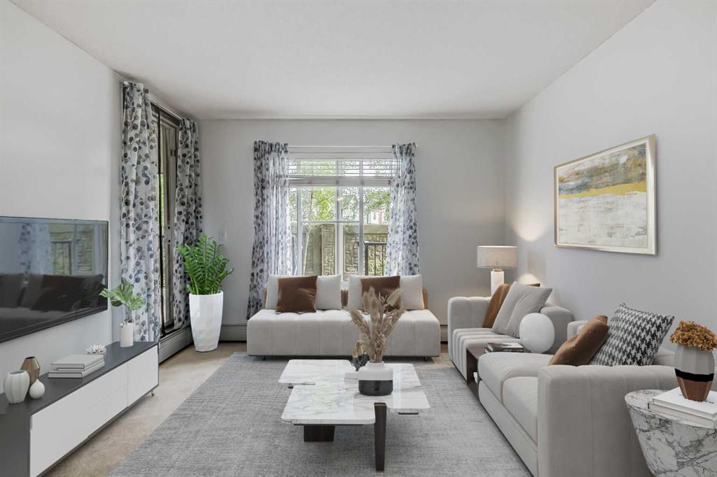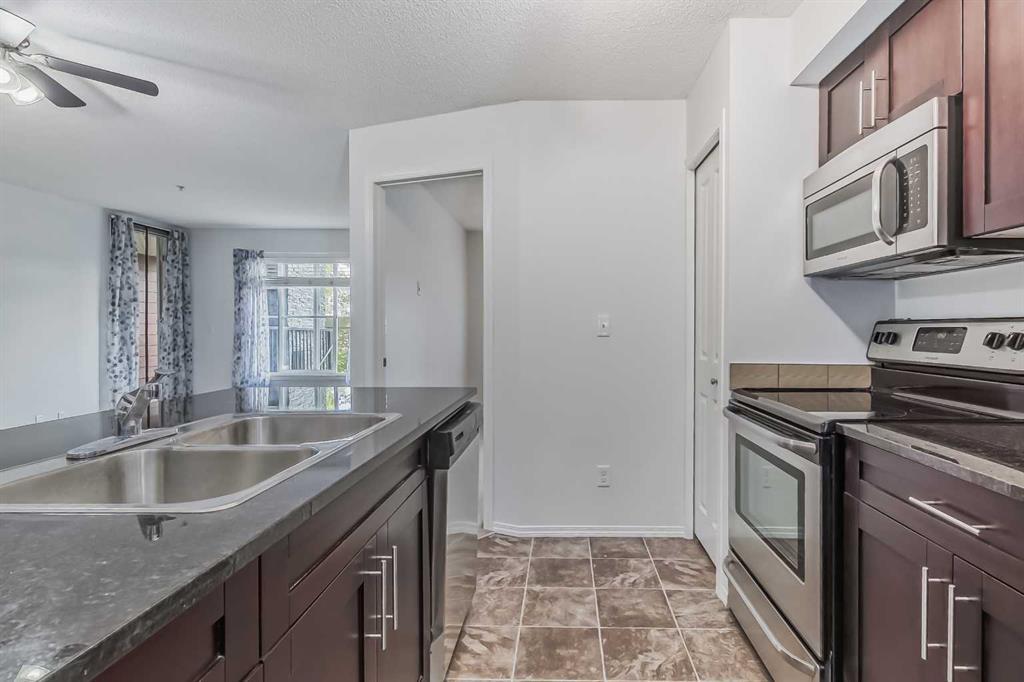 Welcome to this MAIN FLOOR 2 BEDROOM CONDO UNIT in the beautiful Legacy Gate! Open floorplan with a perfectly designed & efficient use of space. Open concept kitchen to living room area offers a bright space for entertaining. The kitchen boasts updated stainless steel appliances, gleaming granite countertops, rich shaker style cabinets and a large pantry/storage area. Spacious living room with large windows and a door to your private back patio that is fully fenced. 2 large bedrooms including the primary bedroom with 3 pc ensuite. This particular unit has an additional 4 piece bathroom with a soaker tub & shower. Unlike other units, one titled underground parking stall is included with the purchase of this unit. Close proximity to parks, shopping, and easy access to Deerfoot Trail. Close to all amenities including South Health Campus and restaurants. Enjoy all the perks of low maintenance urban living and don’t miss out on this opportunity to own a well looked after 2 bedroom, 2 bathroom unit with LOW CONDO FEES! (id:22211)