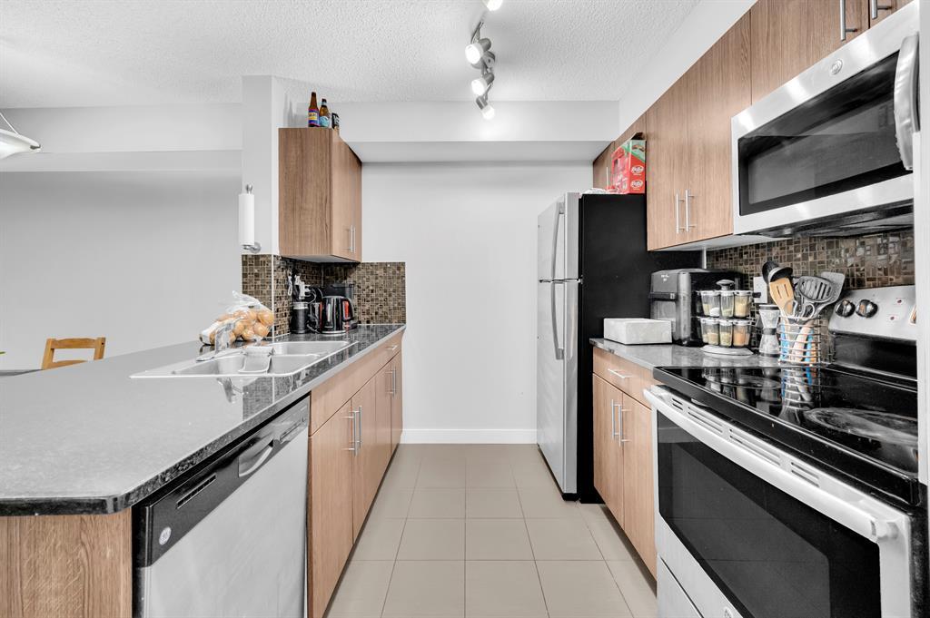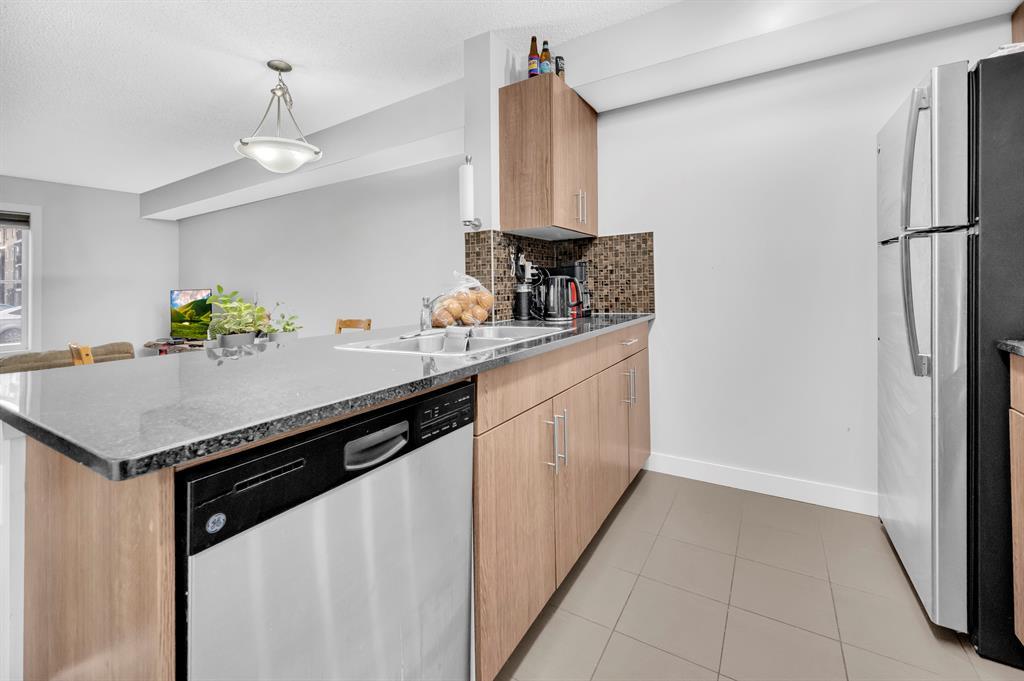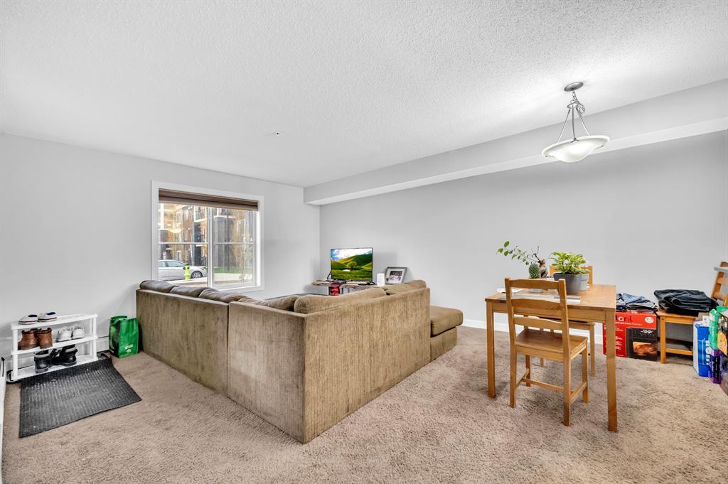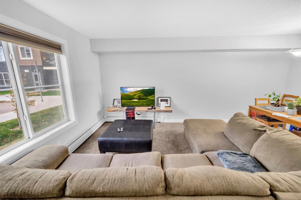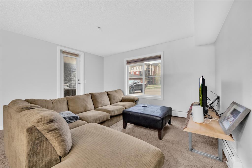 Welcome to a charming and modern 2-BEDROOM MAIN FLOOR condominium unit, perfectly designed to offer both comfort and convenience. Situated in a DESIRABLE LOCATION IN SOUTH EAST COMMUNITY OF LEGACY, this delightful residence is an ideal choice for individuals/couples/family looking to embrace a harmonious urban lifestyle. AS YOU STEP INSIDE, you'll be greeted by an inviting OPEN CONCEPT LAYOUT that seamlessly CONNECTS THE LIVING, DINING, AND KITCHEN AREAS. Natural light floods through large windows, creating a warm and welcoming ambiance throughout. The tastefully decorated living room provides a cozy space to relax and unwind, while the adjacent dining area offers plenty of room for entertaining guests or enjoying intimate meals. The WELL-APPOINTED KITCHEN IS A CHEF'S DREAM, FEATURING SLEEK GRANITE COUNTERTOPS, STAINLESS STEEL APPLIANCES, AND AMPLE CABINET SPACE TO ACCOMMODATE ALL YOUR CULINARY NEEDS. Prepare delightful dishes while remaining connected with friends and family thanks to the convenient breakfast bar, which also serves as a perfect spot for casual dining. The two bedrooms are thoughtfully designed, providing a peaceful retreat for restful nights. THE MASTER BEDROOM BOASTS A SPACIOUS LAYOUT, ALLOWING FOR A COMFORTABLE QUEEN-SIZE BED AND OFFERING A GENEROUS CLOSET FOR ALL YOUR STORAGE REQUIREMENTS. The second bedroom is equally versatile and can be used AS A HOME OFFICE, GUEST ROOM, OR A PERSONAL SANCTUARY. The 4PC BATHROOM exudes style and elegance, showcasing contemporary fixtures, a luxurious bathtub. UNIT COMES WITH ONE ASSIGNED SURFACE PARKING STALL # 14. One of the highlights of this condominium unit is its convenient main floor location, ELIMINATING THE NEED FOR STAIRS or elevators and ensuring easy accessibility. STEP OUTSIDE onto the private patio area, an outdoor oasis perfect for savoring a morning coffee, reading a book, or hosting small gatherings with loved ones. CONVENIENTLY SITUATED NEAR LOCAL SHOPS, RESTAURANTS, AND ENTERTAINMENT OPTIONS , THIS CONDOMINIUM UNIT OFFERS A VIBRANT LIFESTYLE AT YOUR DOORSTEP. Enjoy the perks of urban living while relishing the tranquility of your own private sanctuary. DON'T MISS THIS OPPORTUNITY to own a stunning 2-bedroom main floor condominium unit that seamlessly combines style, functionality, and a prime location. Schedule a viewing today and imagine yourself calling this exceptional property your new home. 3D/Virtual Tour Available. (id:22211)
