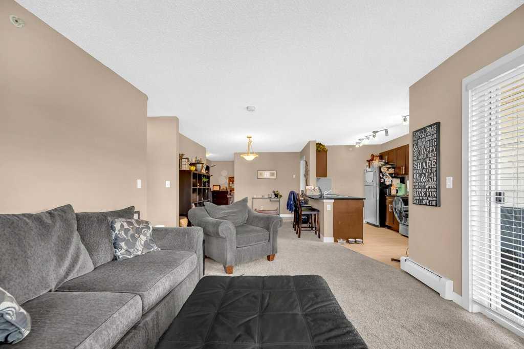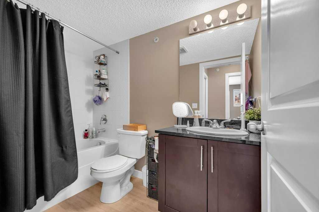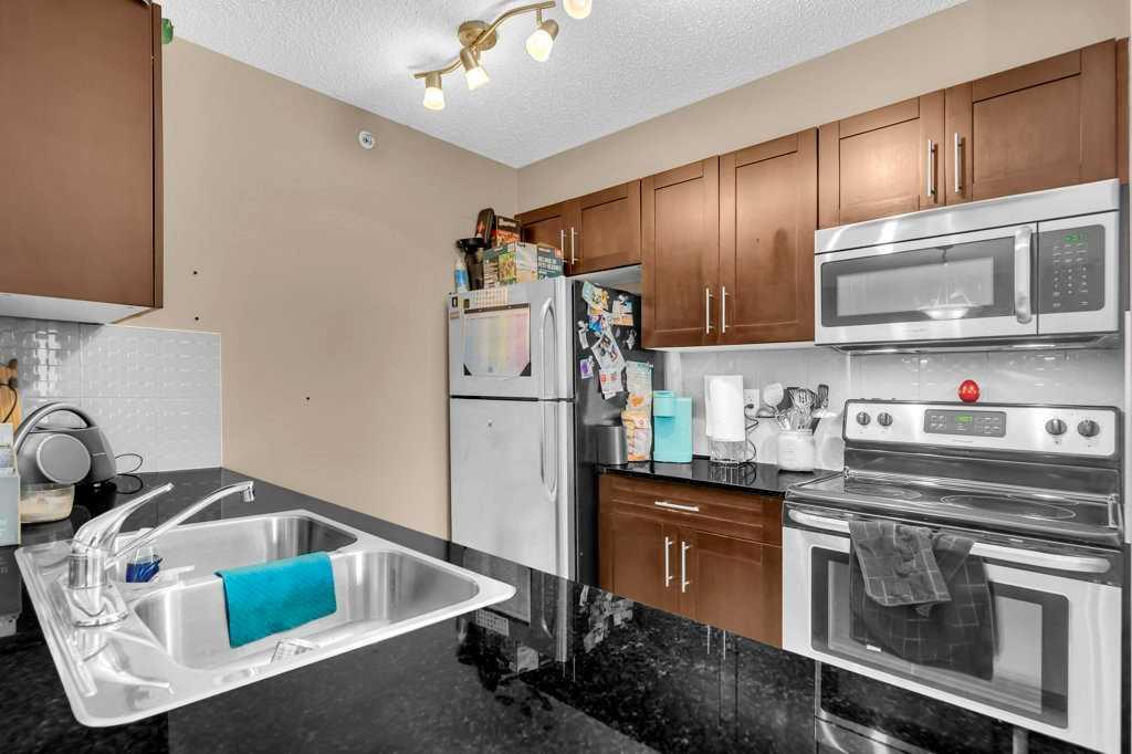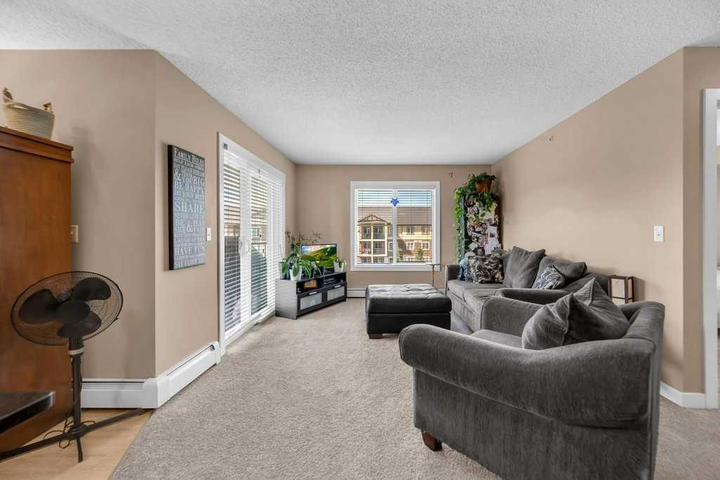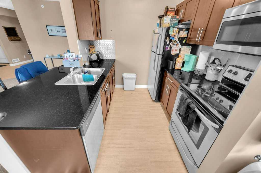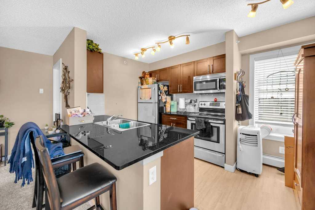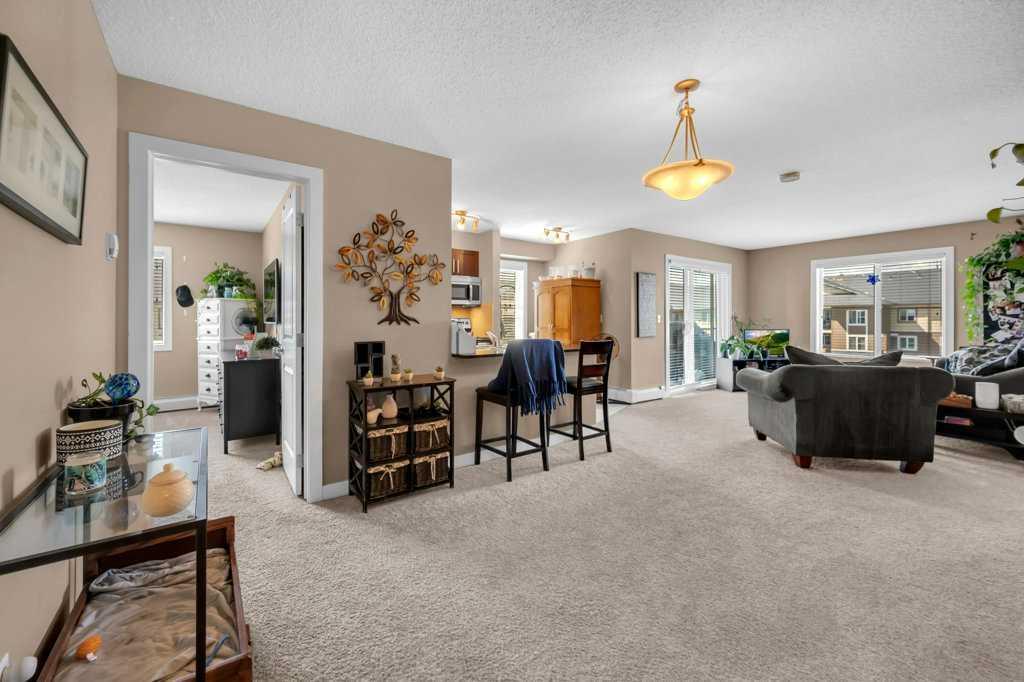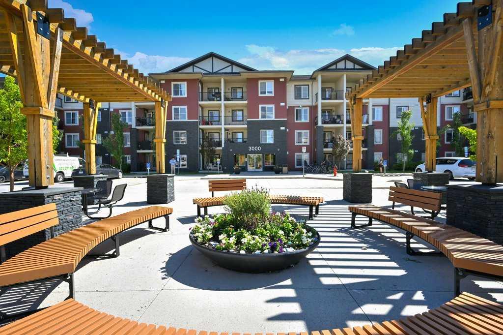 TOP FLOOR ~ END UNIT W/LARGE CORNER BALCONY ~ 2 BEDROOMS ~ 2 BATHROOMS ~ UNDERGROUND PARKING BESIDE THE ELEVATOR ~ PRIVATE LAYOUT ~ GREAT LOCATION! Modern and sophisticated 2 bedroom, 2 bathroom top floor, end unit! Located within walking distance to numerous amenities as well as the 15km’s of paved walking paths. After all of that adventure come home to a quiet sanctuary with no neighbours above. The titled parking stall is perfectly located right next to the elevator for easy grocery unloading! The bright and open floor plan is the ideal layout for privacy with the main living spaces separating the bedrooms. Sleek and modern the kitchen inspires culinary creativity featuring granite countertops, stainless steel appliances, a plethora of cabinets and a peninsula island with seating. Clear sightlines into the dining and living rooms promote unobstructed conversations with family and guests. The corner balcony entices summer barbeques with ample space for unwinding or relaxing with your morning coffee. Retreat at the end of the day to the master suite where dual walk-through closets lead to your own private ensuite. The second bedroom on the other side of the unit is great for guests or an office space and is handily situated beside the 4-piece bathroom. In-suite laundry adds to your comfort and convenience. Located in the family-friendly neighbourhood of Legacy chocked full of playgrounds and walking paths that wind along the ridge, ponds and the 300-acre nature reserve in this extremely walkable community! Plus the new Township Centre is only a few minutes walk away boasting tons of shopping and dining options and much more on the way! Simply an exceptional home in an unbeatable location! (id:22211)