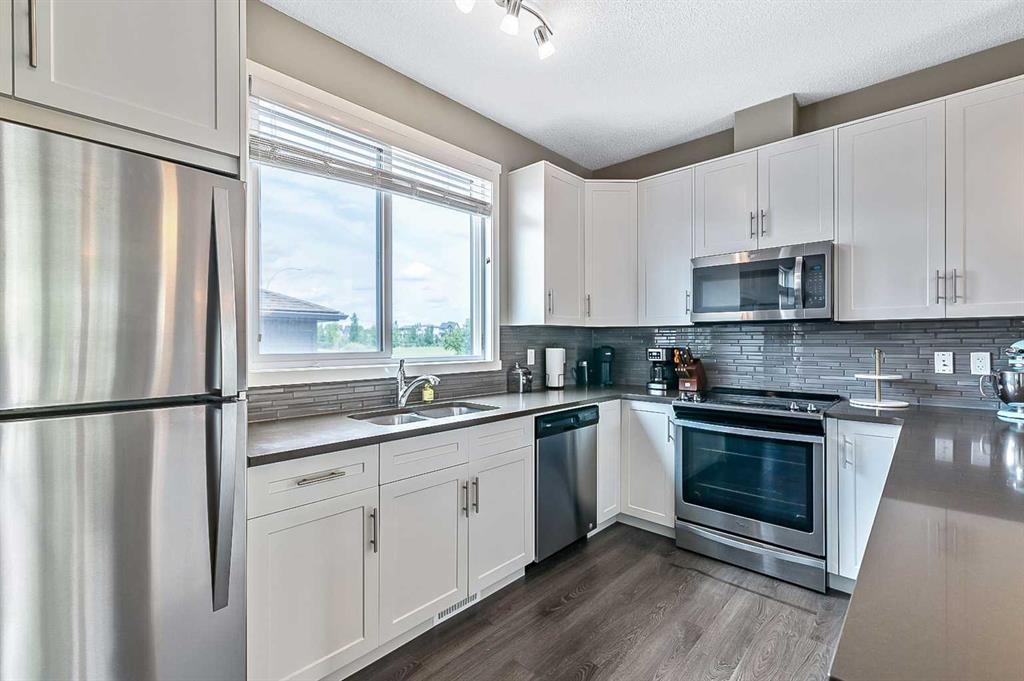 Fantastic opportunity for Investors! This beautiful semi-detached duplex is located on a corner lot that sides onto green space. Main floor features 9’ ceilings, gleaming laminate floors, open concept kitchen that enjoys quartz counter-tops, tall white cabinets, stainless-steel appliances, mosaic backsplash, island, and dining area. Three generous sized bedrooms on the upper floor with a 3pc ensuite off the primary bedroom & walk-in closet, 4pc bath and convenient laundry. Basement is “un-spoiled” ready for future development. A fully landscaped yard with a private rear deck great for everyday living and summer BBQ’s. Double attached garage with parking pad. Note: Purchaser must assume current tenants until June.13, 2024, currently paying $2500 per month plus all utilities. Perfect location, close to shopping, restaurants, public transit, schools, playgrounds, fitness, and health facilities. Home shows well with pride of ownership! (id:22211)