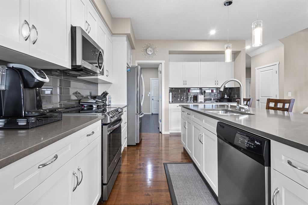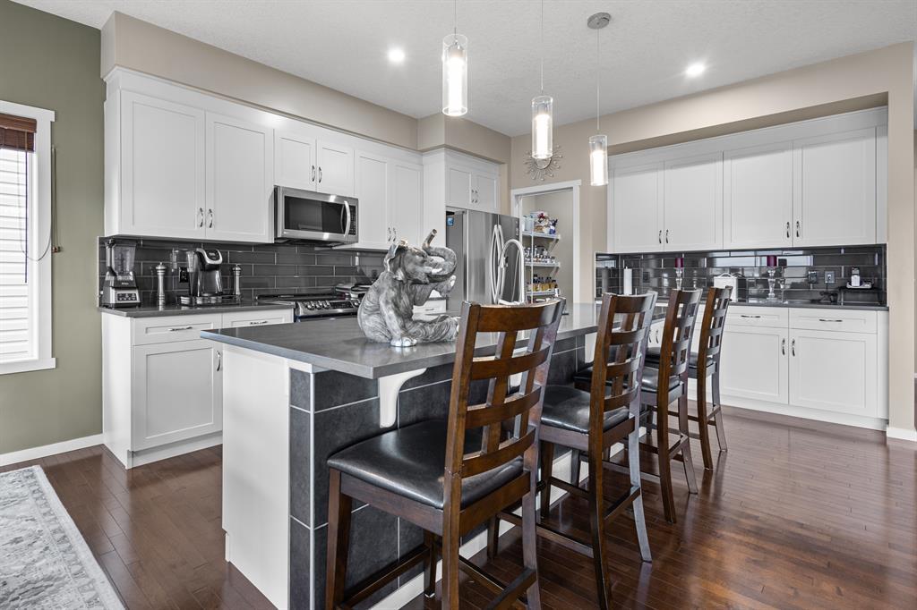 Get ready to be wowed by the charm and elegance of this stunning 2-storey walk-out home backing onto the picturesque Blue Devil Golf Course. As you step inside, you'll be greeted by a cozy and inviting ambiance, featuring 9-foot ceilings and ample natural light. The open floor plan is perfect for entertaining, with Arabica stained hardwood flooring throughout, a spacious dining area overlooking the lush backyard, and a stylish fireplace to add warmth and charm to the generous great room. The gourmet kitchen is a chef's dream, with raised white cabinetry, Caesarstone quartz countertops, and newer stainless-steel appliances, complete with a convenient walk-thru pantry/mud room, a 2pc powder room, and a den that's perfect for a home office.The upper level is just as impressive, with a large bonus room, convenient 2nd-floor laundry, three bedrooms, and two baths, including a lavish His & Her ensuite that boasts a standalone shower, large soaker tub, and separate vanities with a spacious walk-in closet. The walk-out basement is fully developed, with two additional bedrooms, an ensuite bathroom, wet bar, and a sizeable rec room, perfect for hosting guests or movie nights with the family.Located in a fantastic community surrounded by nature and trails, and only moments away from the breathtaking Fish Creek Park, this home offers the perfect balance of tranquility and convenience. And, with the Blue Devil Golf Course right in your backyard, you can enjoy the perks of an active lifestyle without sacrificing urban amenities. Don't wait any longer, come and see this incredible property before it's too late! (id:22211)