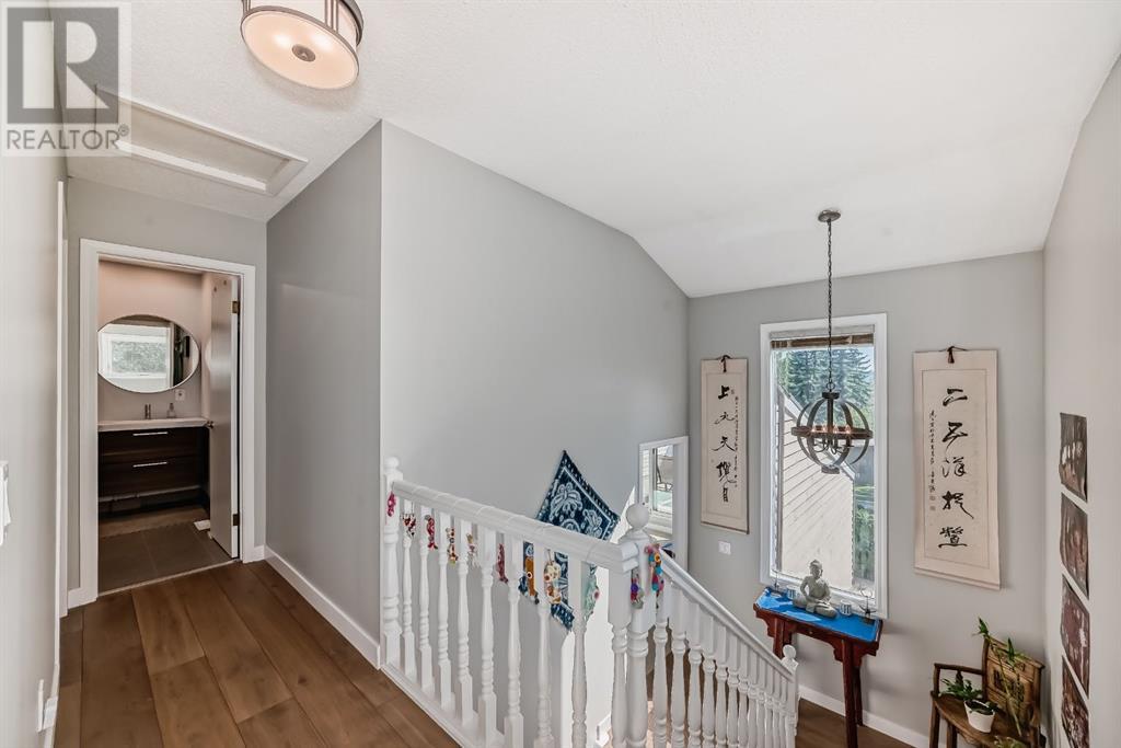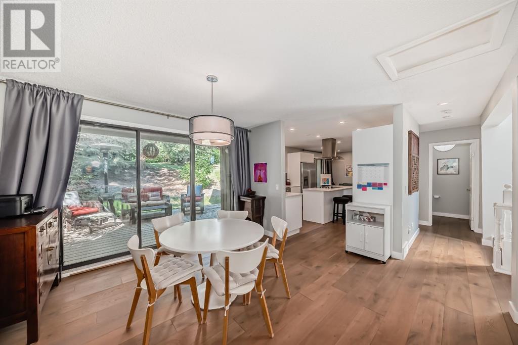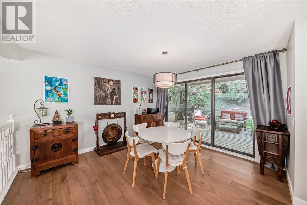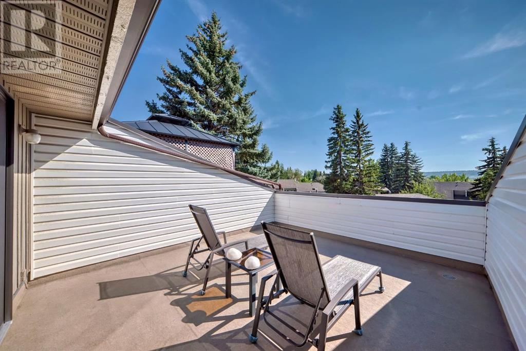 Welcome to this exceptional luxury townhome featuring 3 bedrooms and 2.5 bathrooms, tucked away next to the amazing Bowmont park / pathways. This home has been meticulously cared for and renovated to offer modern luxury, including plenty of windows from which to appreciate the surrounding nature. Located on one of the best locations in this lovingly cared for complex, this unit is private and peaceful. The gourmet kitchen is equipped with stainless appliances, a large island, Quartz countertops and beautiful trees out the windows. Adjacent to the kitchen is a dining room, walk-in pantry, and a cozy flex room to relax in while dinner is cooking. You might prefer to have your wine on the huge back deck off the kitchen and enjoy the bird sounds and nature. The top level of this home features 2 bedrooms with views out onto the greenspace, as well as an updated and modern 4-piece bathroom. The primary bedroom is on its own floor and has an ensuite 3-piece bath and walk-in closet. To complete this tranquil primary retreat is a South facing deck where you can watch the sunrise with your morning coffee. With 3 walls of windows, this home provides an abundance of natural sunlight. The attached double (tandem) garage has lots of extra space for storage, and there’s also a crawl space in the basement. Walk out your door into nature; down to the river and Silver Springs waterfalls. This location is so convenient to the shopping and restaurants at Crowfoot Centre, great schools and just 15 minutes to downtown. (id:22211)