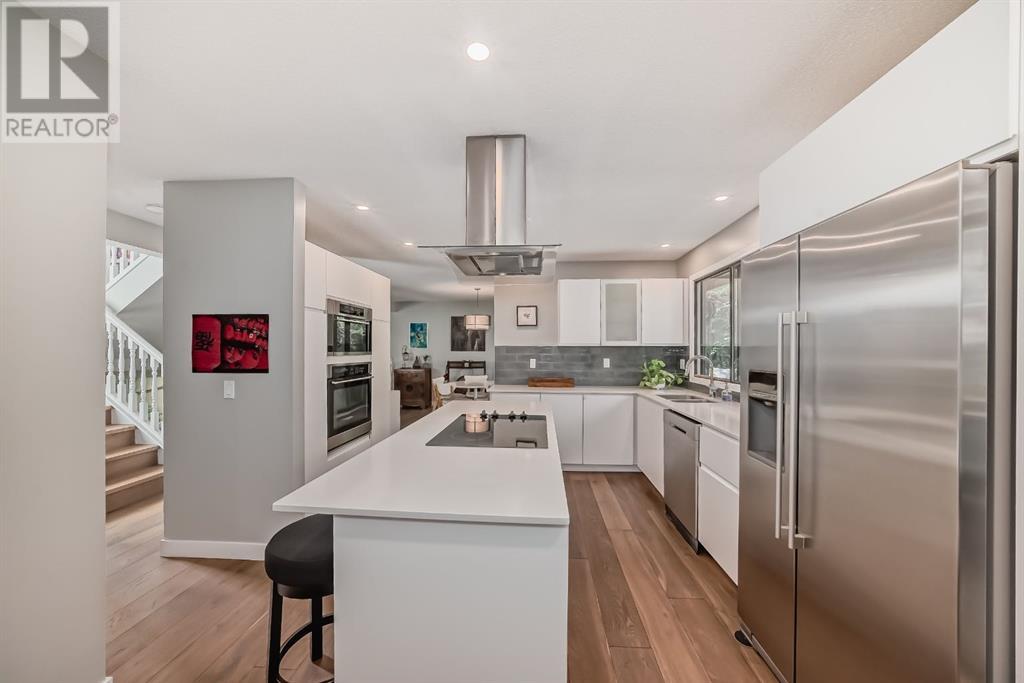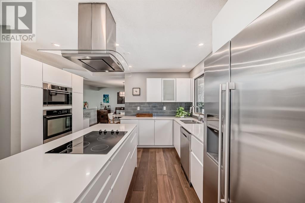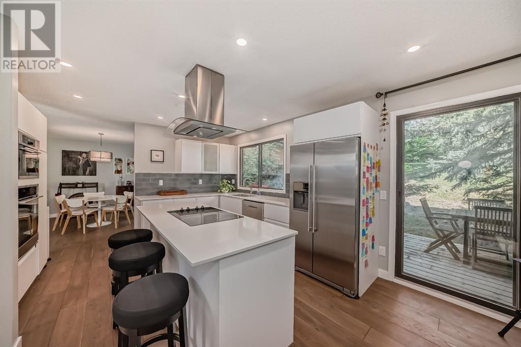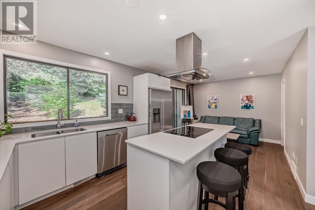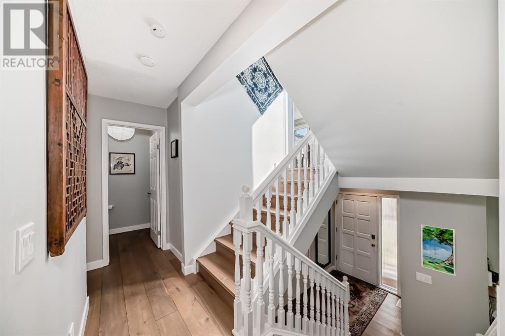 Welcome to this exceptional luxury townhome featuring 3 bedrooms and 2.5 bathrooms, tucked away next to the amazing Bowmont park / pathways. This home has been meticulously cared for and renovated to offer modern luxury, including plenty of windows from which to appreciate the surrounding nature. Located on one of the best locations in this lovingly cared for complex, this unit is private and peaceful. The gourmet kitchen is equipped with stainless appliances, a large island, Quartz countertops and beautiful trees out the windows. Adjacent to the kitchen is a dining room, walk-in pantry, and a cozy flex room to relax in while dinner is cooking. You might prefer to have your wine on the huge back deck off the kitchen and enjoy the bird sounds and nature. The top level of this home features 2 bedrooms with views out onto the greenspace, as well as an updated and modern 4-piece bathroom. The primary bedroom is on its own floor and has an ensuite 3-piece bath and walk-in closet. To complete this tranquil primary retreat is a South facing deck where you can watch the sunrise with your morning coffee. With 3 walls of windows, this home provides an abundance of natural sunlight. The attached double (tandem) garage has lots of extra space for storage, and there’s also a crawl space in the basement. Walk out your door into nature; down to the river and Silver Springs waterfalls. This location is so convenient to the shopping and restaurants at Crowfoot Centre, great schools and just 15 minutes to downtown. (id:22211)