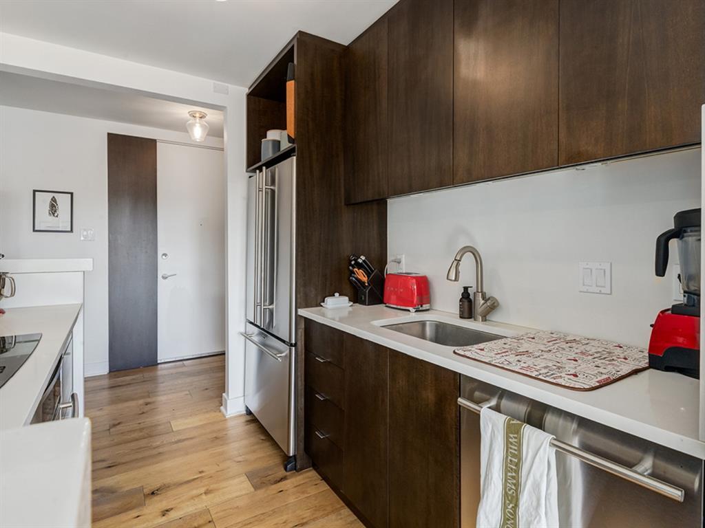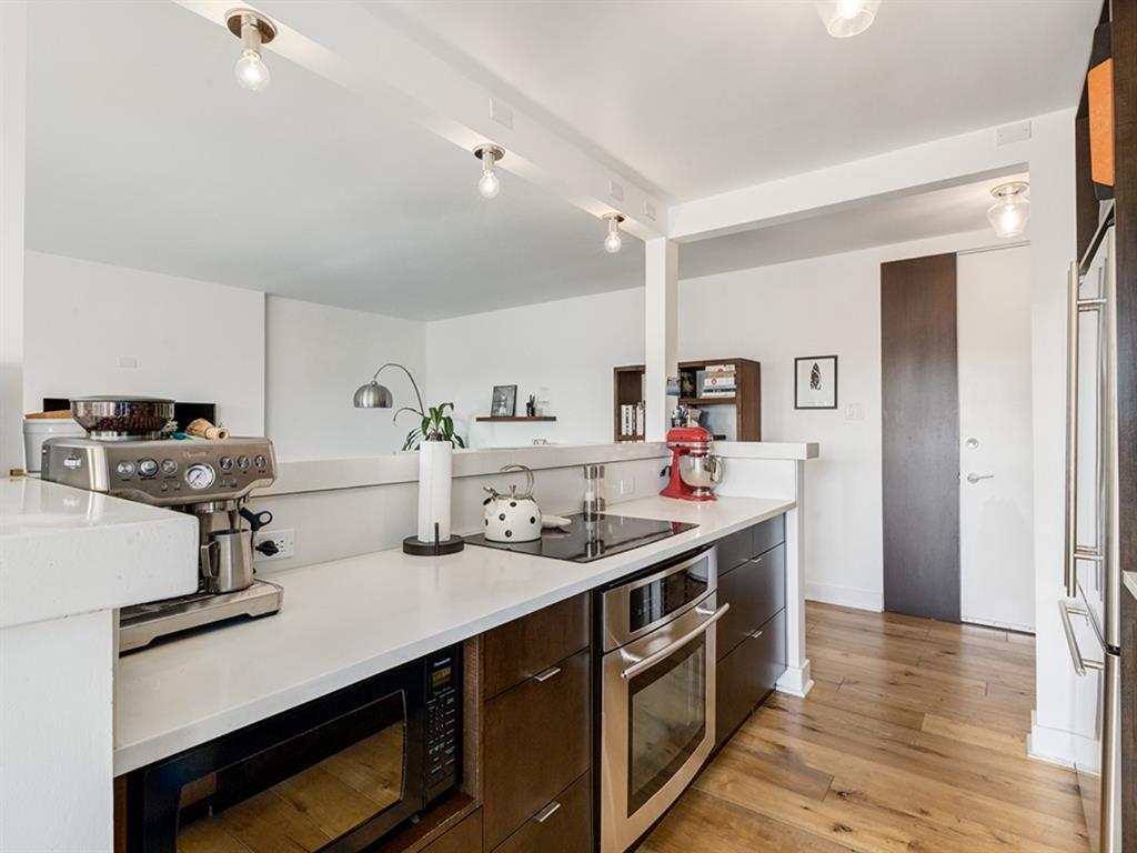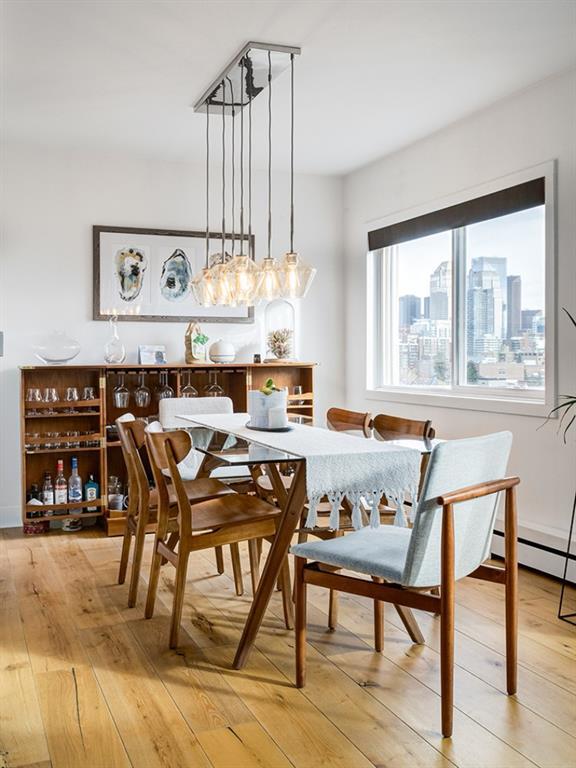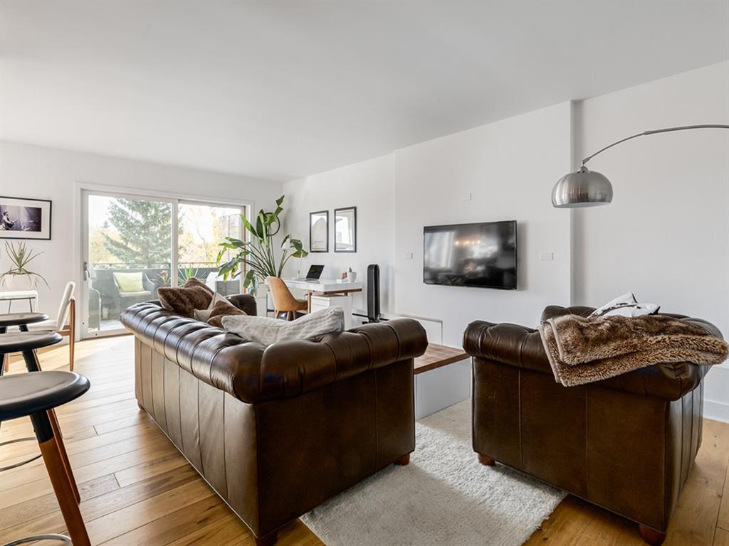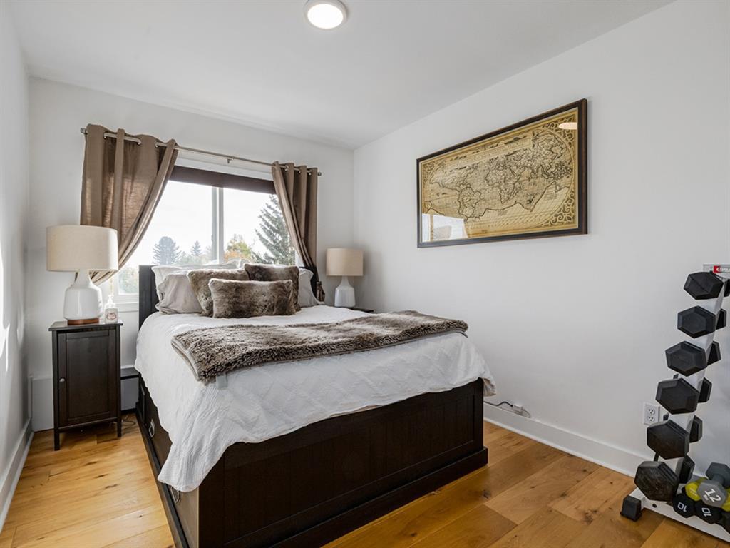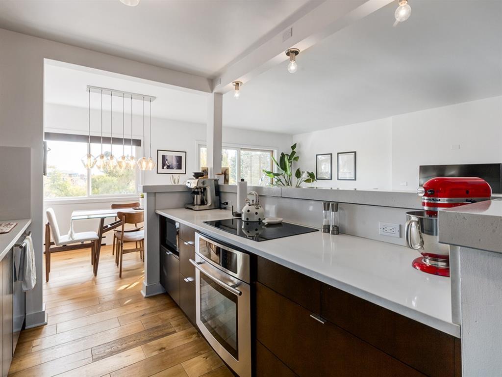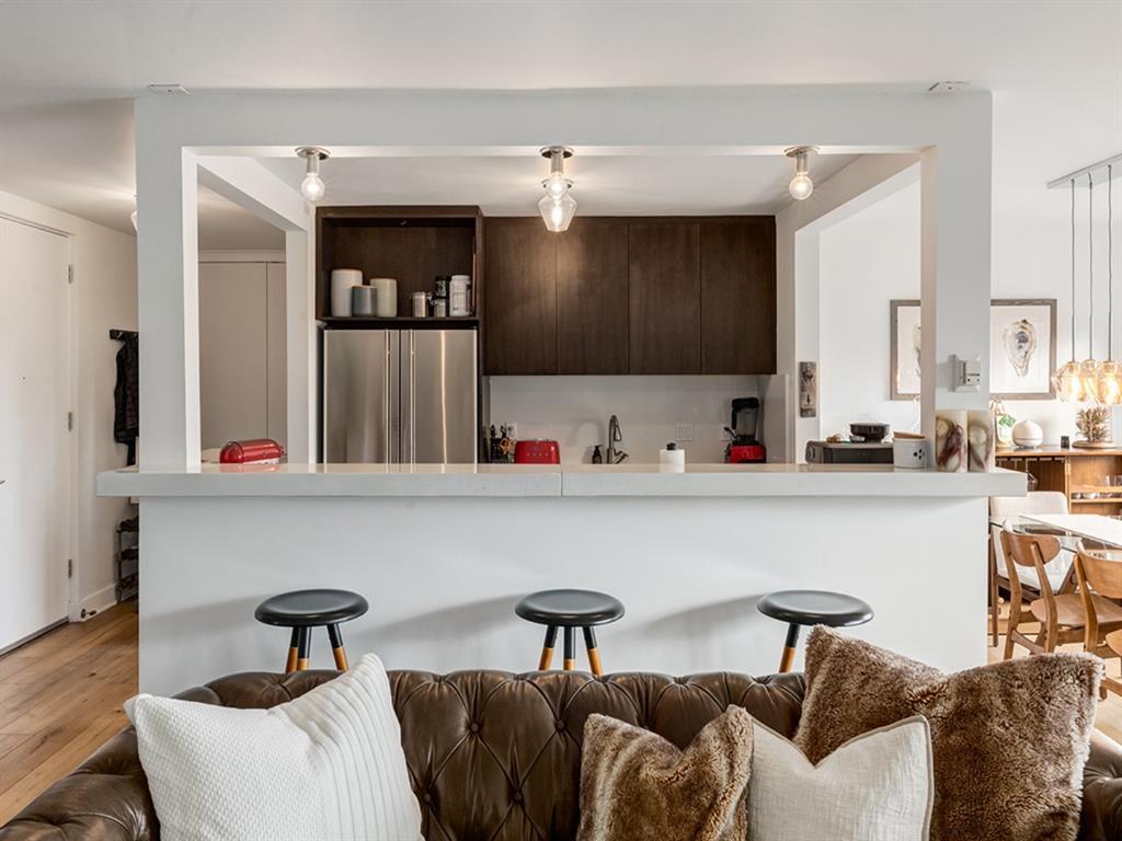 Welcome to this stunning TOP FLOOR two bedroom condo with spectacular views of downtown! This beautifully appointed unit in a CONCRETE building features numerous upgrades throughout. Building is very well managed with a healthy reserve fund (300k+). Wide plank hardwood floors, designer lighting and large windows create a modern, yet warm space. Open concept Denca kitchen boasts plenty of cabinetry, quartz countertops, Jenn-Aire S/S appliances, and under cabinet lighting. Spacious living and dining rooms are perfect for entertaining and feature custom floating walnut shelving. Master bedroom features a walk-in closet with custom built-ins and insuite laundry. Second bedroom is a great size and easily fits a queen bed. 4 piece bath has a beautifully tiled bath/shower combo with a built-in shower caddy, sliding glass doors and infloor heat. Enjoy your morning coffee while taking in the incredible city views from your private balcony. This fantastic condo also comes with underground titled parking and a separate storage unit. Don’t miss out on owning in this well run complex with a healthy reserve in the highly sought after community of Lower Mount Royal, with easy access to all that 17 Avenue, the downtown core and Mission have to offer. Book your private viewing today! (id:22211)