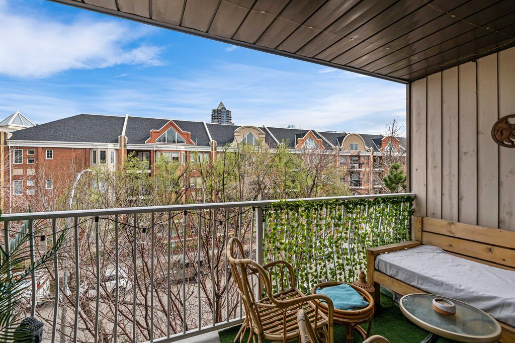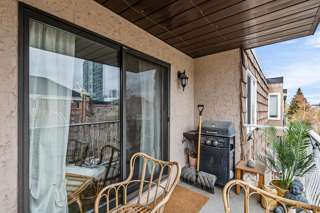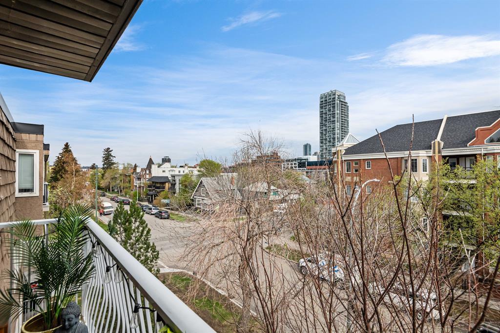 Have you ever wanted to live a lock it and leave lifestyle in the inner city? Look no further than this amazing top floor apartment style condo in one of Calgary's most vibrant neighbourhoods, Lower Mount Royal. From nightlife to shopping to cafes to parks, this area checks all of the boxes. This beautiful, quiet street is filled with recently constructed infills and homes with classic brick architecture. This unit is spacious and bright and offers a large Living room leading out to a great balcony with amazing views, aluminum rails and duradek flooring! The contemporary kitchen looks on trend features white cabinetry, updated counters & newer appliances including the ceramic top convection. oven. The dining area can accommodate family and friends with room to spare. You'll also enjoy the large Master bedroom that could accommodate a King sized bed, the updated four piece bathroom, an inviting entry plus the in suite laundry with front loading washer & dryer! Other features include secured parking and a separate, secured storage locker on the main floor! Top this all off with a reasonable condo fee that includes heat and water and you have a great starter home in a fantastic area. Don't sleep on this one! (id:22211)