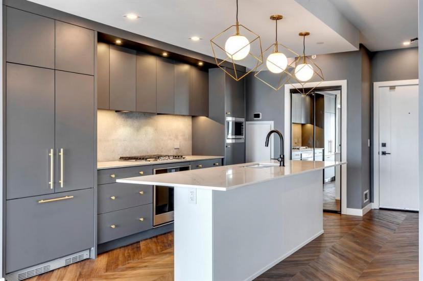 2 BEDROOMS + DEN | SELLER WILL REINSTALL WALL FOR SECOND BEDROOM PRIOR TO POSSESSION IF DEEMED NECESSARY BY THE BUYER | SHOW SUITE | DESIGNER FINISHES, WALLPAPER & LIGHTING | HERRINGBONE HARDWOOD FLOORS | WAINSCOTTING | STAINLESS STEEL APPLIANCES | MODERN EUROPEAN STYLE KITCHEN | FULL WALL OF WINDOWS | INSUITE LAUNDRY | Introducing this brand new, luxurious condo in the heart of West Springs. This exquisite property offers stunning views and timeless architecture, exuding a modern European design aesthetic with stylish design including designer wallpaper. Bathed in abundant natural light, every detail has been meticulously crafted to create a harmonious blend of soothing elements and contemporary allure. No expense has been spared in the interior design, featuring a chef-caliber kitchen, a spacious dining area, a meticulously appointed primary suite, an inviting office space with a glass wall/bedroom, and an oversized balcony. The use of premium materials is evident throughout, from the high end cabinets and sleek minimalist gold & black hardware to the beautiful herringbone hardwood floors. The kitchen is a culinary haven, complete with a gas stove, integrated refrigerator, built-in pantry, and quartz countertops. Oversized windows allow light to flood the space, enhancing the overall ambiance. Seamless entertaining is effortless here, thanks to the sophisticated and open kitchen that seamlessly flows into the living room. Upon arriving home, you'll be captivated by the superb curb appeal, with its timeless architecture and a vibrant street scene. The convenience of having all amenities within walking distance further adds to the appeal of this desirable location. This home not only impresses guests with its glamorous finishes but also provides a cozy and welcoming atmosphere that instantly puts you at ease. The primary suite is a true retreat, boasting oversized windows that flood the space with natural light. A high-end ensuite, adorned with glass, gold and black finishes, creating a luxurious and indulgent space- with an oversized shower and dual personal sinks. No detail has been overlooked in this condo, which also offers a second 4 piece bath, full-size office which could be used as a bedroom, convenient insuite laundry and a titled parking space. West Springs provides residents with convenient access to a variety of amenities. Within the community, there are shopping centers, grocery stores, restaurants, cafes, fitness centers, and professional services. West Springs has pathways, playgrounds, sports fields, and picnic areas, offering residents spaces to enjoy nature and engage in leisure activities. West Springs is home to several schools, making it an attractive neighborhood for families. Some of the schools serving the community include West Springs School (K-4), West Ridge School (5-9), and Calgary French & International School (K-12). Elevate your lifestyle and experience the epitome of luxury living with this exceptional condo in West Springs. (id:22211)