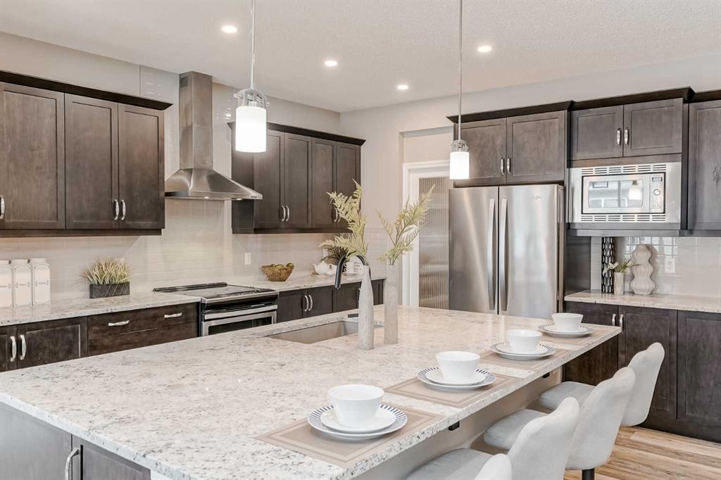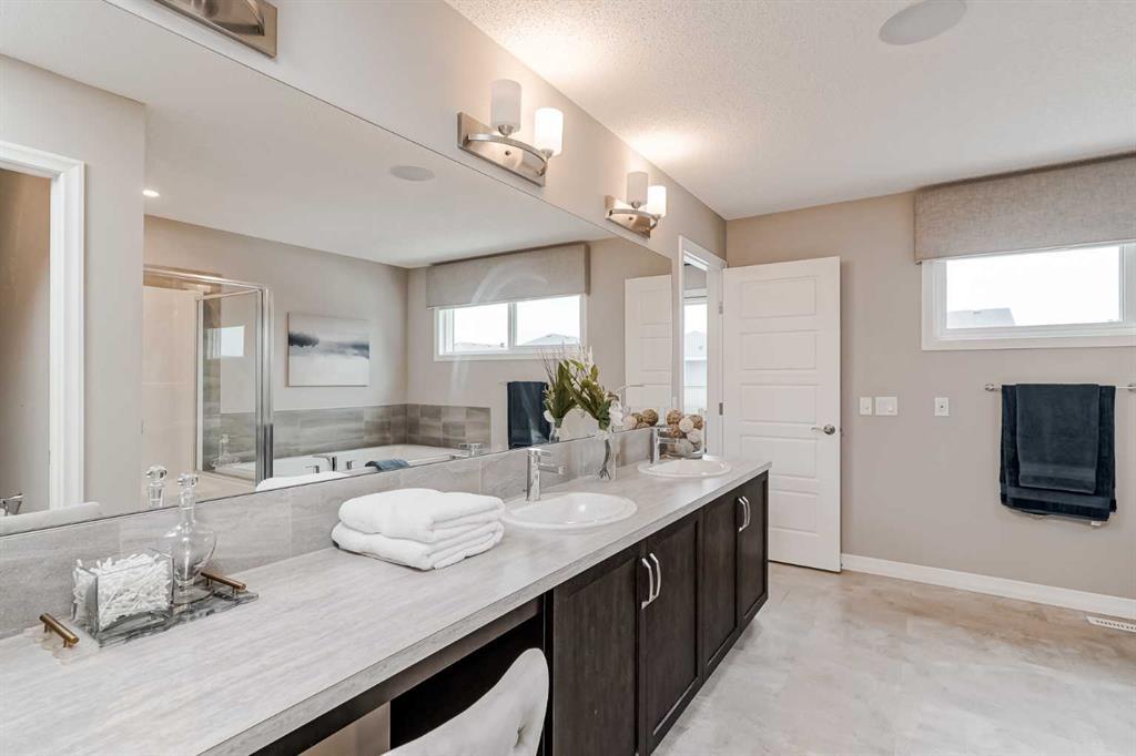 Welcome to 85 Red Embers Manor, your exceptionally maintained former Redstone Jayman BUILT showhome. This 2017 home boasts over 3100 sq. ft. of developed space and equipped with many superior upgrades and features. This 5 bedroom and 4 bathroom home impresses the moment you enter. The main floor has 10-foot ceilings and luxury laminate flooring and an open concept living area space that accentuates entertaining & family living. This thoughtfully planned home has extra-large windows that bring in the light at all times of the day. Main floor space is perfect for entertaining guests and family gatherings with dining and living room spaces adjacent to kitchen with extra breakfast bar seating at the oversized island. Your custom kitchen is a chefs dream and features stainless steel appliances, granite countertops, an abundance of cabinets and additional walkthrough pantry on your way to mudroom and double attached insulated garage. Main floor also includes a half bathroom and flex bedroom or office space. Style and elegance are mirrored throughout the home and in the bathrooms with custom lighting, blinds, window drapery and feature walls to create that high end look and feel. Upper level has 3 bedrooms including your own private primary oasis with huge ensuite that continues onto a fantastic walk-in closet and adjoining attached laundry room! Ensuite has a double vanity, oversized stand up shower and separate deep soaker tub. Both on upper and lower levels you can enjoy bonus room spaces that are perfect for family movie nights, cozy nights in and in basement ample space to add a workout area, kids play zone, games or bar area. Lower level also has extra ceiling height, another bedroom and full bathroom perfect for guests or visiting family members. Additional features of the home include central air conditioning, fully fenced yard with built in solar lighting, fence gate from both sides of home, 2 large storage spaces in basement, motion sensors, ring camera, front do or smart lock and security system ready for activation, Ecobee controlled furnace, remote operated blinds on stairwell and the unbelievable added feature of solar panels which greatly reduce your monthly utility costs. Redstone is a wonderful and safe community close to schools, parks, shopping, recreation and a multitude of amenities all within a short distance. Book your showing now! Your upscale oasis awaits! (id:22211)