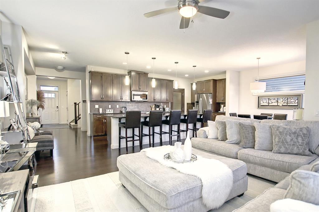 Welcome to your dream home in the highly sought-after community of Redstone Villas in Calgary, Alberta! This stunning 3 bedroom, 3 bath home is perfectly designed for modern living and offers an abundance of features and amenities.As you step inside, you will be greeted by a spacious open-concept living and dining area, which is perfect for entertaining guests or spending time with family. The beautiful kitchen boasts high-end stainless steel appliances, granite countertops, and plenty of storage space, making meal preparation a breeze.Each of the three bedrooms is generously sized and features large windows that flood the rooms with natural light. The primary bedroom boasts a luxurious ensuite bathroom with a large walk-in shower and a double vanity, creating a spa-like oasis within your own home. The other two bathrooms are equally well-appointed and offer the same high-quality finishes.This home also includes a convenient upper floor laundry room, which is equipped with a high-efficiency washer and dryer. The attached double garage offers plenty of space for your vehicle and additional storage.Outside, you'll find a low-maintenance yard, which is perfect for those who prefer a low-maintenance lifestyle. The backyard is fenced providing the perfect space to relax and enjoy your surroundings.This home is just steps away from a variety of parks and walking trails, as well as shopping, dining, and entertainment options. This is the perfect home for anyone who wants to enjoy the best that Calgary has to offer while still enjoying the peace and quiet of a suburban community. Don't miss your chance to make this home yours! Easy access to both Deerfoot and Stoney Trail for those who need to commute! (id:22211)