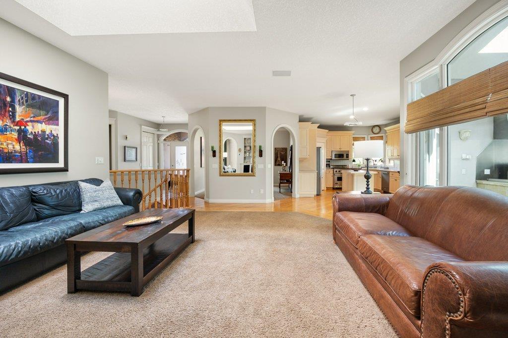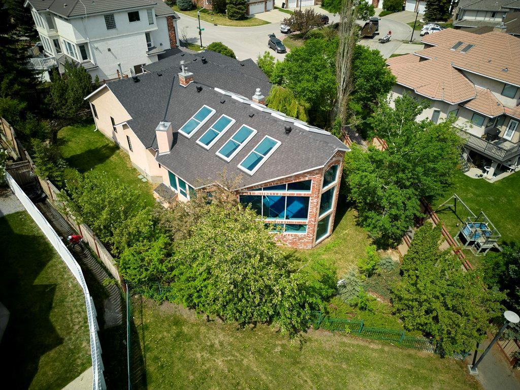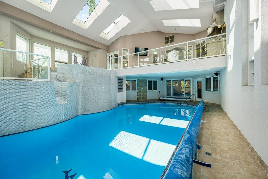 Rare opportunity for this executive custom built air conditioned bungalow with a walkout basement, indoor swimming pool and hot tub in well maintained condition. Pie shaped lot with city views backing onto a park. Located in a cul-de-sac. Must see to appreciate the opportunity to enjoy this home. Ideal for entertaining or a family. Over 6000 square feet total on both levels. 5 bedrooms and 4 bathrooms. Extensive built-ins throughout. Very bright and open plan. Formal dining room. Kitchen with centre island and designer tile backsplash with stainless steel appliances open to a large eating area and huge great room with built-ins, fireplace and skylight. French doors leading out from the kitchen to a huge entertainment and eating area with built-in barbeque and a commercial grade hood fan overlooking the pool and hot tub. Spacious primary bedroom with a two person jacuzzi with double sinks and oversized shower. Large walk in closet. French doors leading out to the balcony overlooking the pool and hot tub. Two other good sized bedrooms with a Jack and Jill 5 piece bathroom. 2 piece powder room and main floor laundry room with sink, cabinets and a huge walk in closet. Staircase leading downstairs to a large recreational and family room with a fireplace and wet bar. RTI home theatre room and equipment. Flex room ideal for a gym or hobby room. Another room ideal for a bedroom/den. Enter from the main floor or the basement into the spectacular indoor pool, hot tub, and waterfall lined with skylights and windows. Must see to appreciate. Staircase leads upstairs to the entertaining area and primary bedroom. 2 and a half to 3 car attached garage. Ideal to hold a summer car and two other vehicles. Newer garage door. Beautiful landscaped yard with gemstone lighting. Pride of ownership shown throughout. Close to schools, amenities, LRT stations, and downtown. Excellent family home. Exceptional Value! (id:22211)
