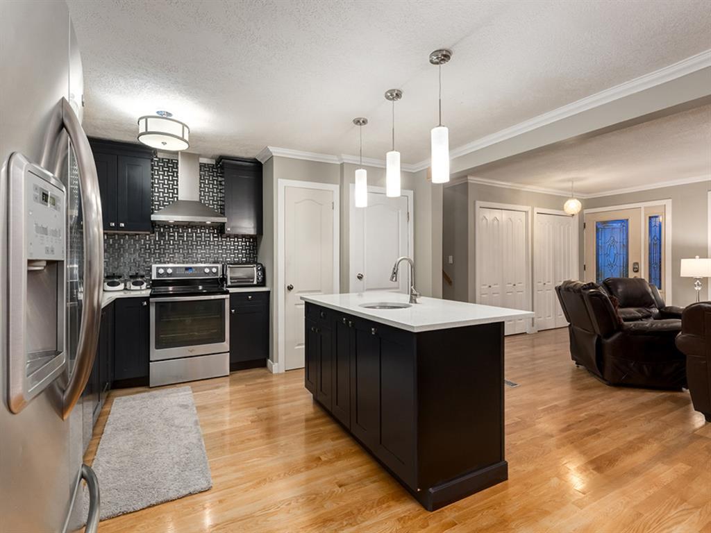 Lovely UPGRADED 3 level split w/MORTAGE HELPER - great VALUE for your $$$ in these UNPREDICTABLE Times!!! LOVELY Curb appeal w/STONE Detail, CHARMING front patio, + mature TREES, WELCOMING entrance, CROWN MOULDING, hardwood Floors, NEW WINDOWS, open FLOOR PLAN for the main area, Living room with BEAUTIFUL stone mantle including ELECTRIC Fireplace + extensive BUILT-IN units w/LIGHTING, Dining room w/access to the BACKYARD, GORGEOUS Kitchen w/WHITE QUARTZ countertops including the ISLAND w/PENDANT LIGHTING + eating bar, SLEEK dark Cabinetry, matching Stainless Steel appliances, PANTRY, + unique BACKSPLASH. Upper level w/Master bedroom incl PLENTY of closet space + 2 pc En-suite including GRANITE countertop, 2 additional Bedrooms, + 4 pc Main bath w/MORE GRANITE. Lower level w/SUITE (illegal) including SEPARATE ENTRANCE, bedroom, 4 pc Bath, family room, + Kitchen complete w/STOVE + FRIDGE TOO! Laundry (+ 2nd hookup available on the main level, so you can have separate laundry for upstairs + downstairs!), + crawl space for STORAGE. Backyard w/EXTENSIVE Patio pace, storage shed, + access to the OVERSIZED double garage w/NEW Overhead Door. VERY CLOSE to multiple schools, + super EASY ACCESS to main roads to GET wherever you NEED to GO! WOW!!! (id:22211)