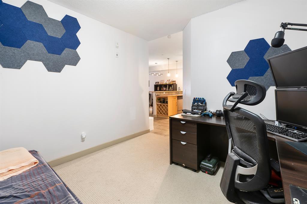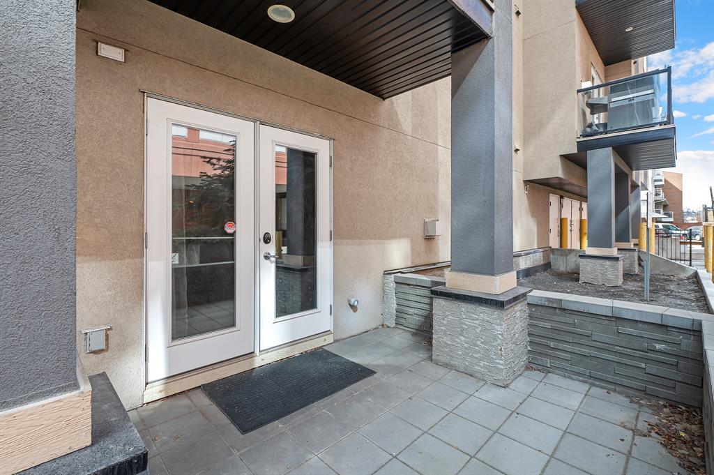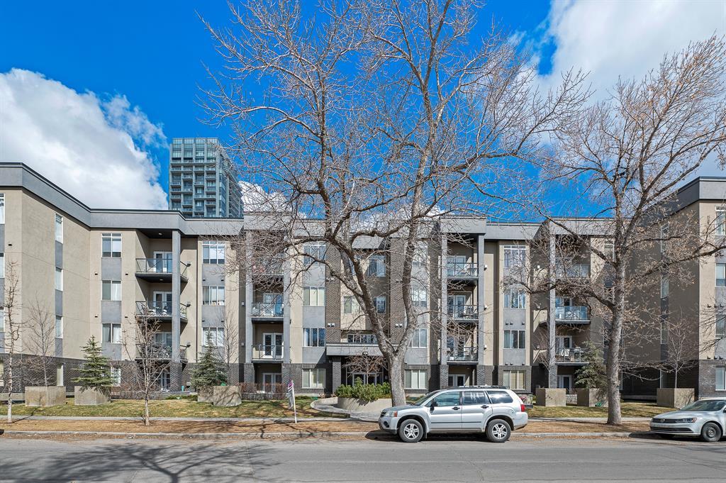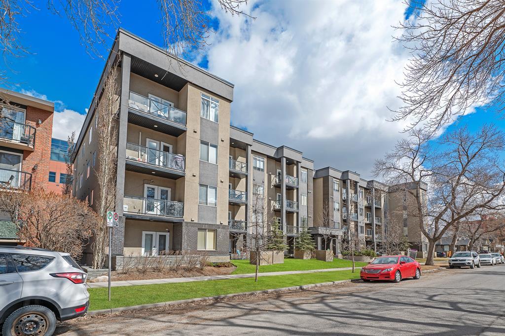 Upscale 1 bedroom plus den condo in Lower Mount Royal! The open plan presents a lovely kitchen finished with an eating bar, plenty of storage & stainless steel appliances, which is adjacent to the casual dining area & living room with cozy corner fireplace. A good-sized den/office is tucked away just off the kitchen. The bedroom includes a walk-in closet. Further features include in-suite laundry/storage, a private patio, one assigned underground parking stall & there is bike storage available. Also enjoy the central location, just steps from 17th Avenue shops, restaurants & nightlife & close to Tomkins Park, additional shopping, public transit & walking distance or a short drive to downtown. (id:22211)