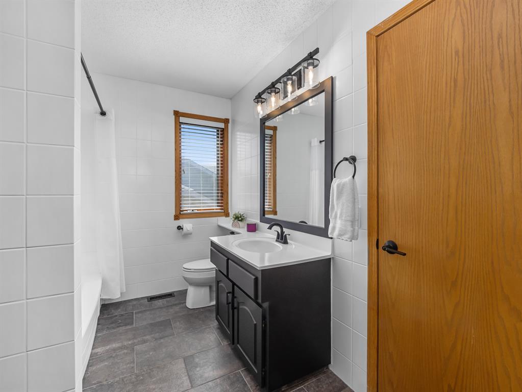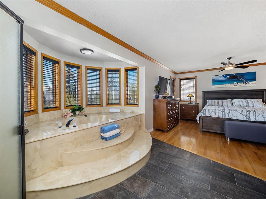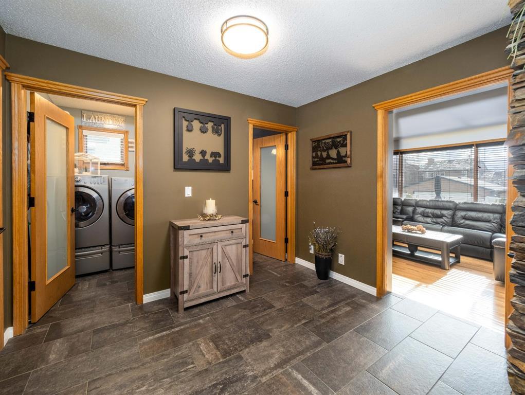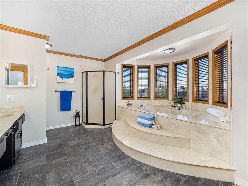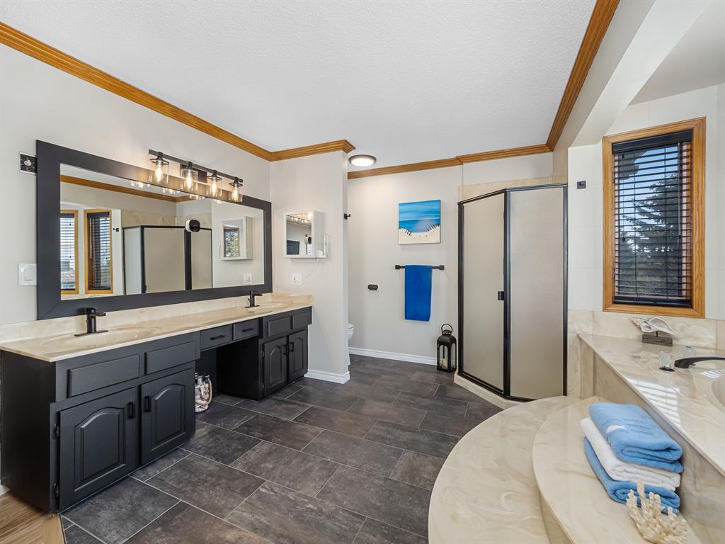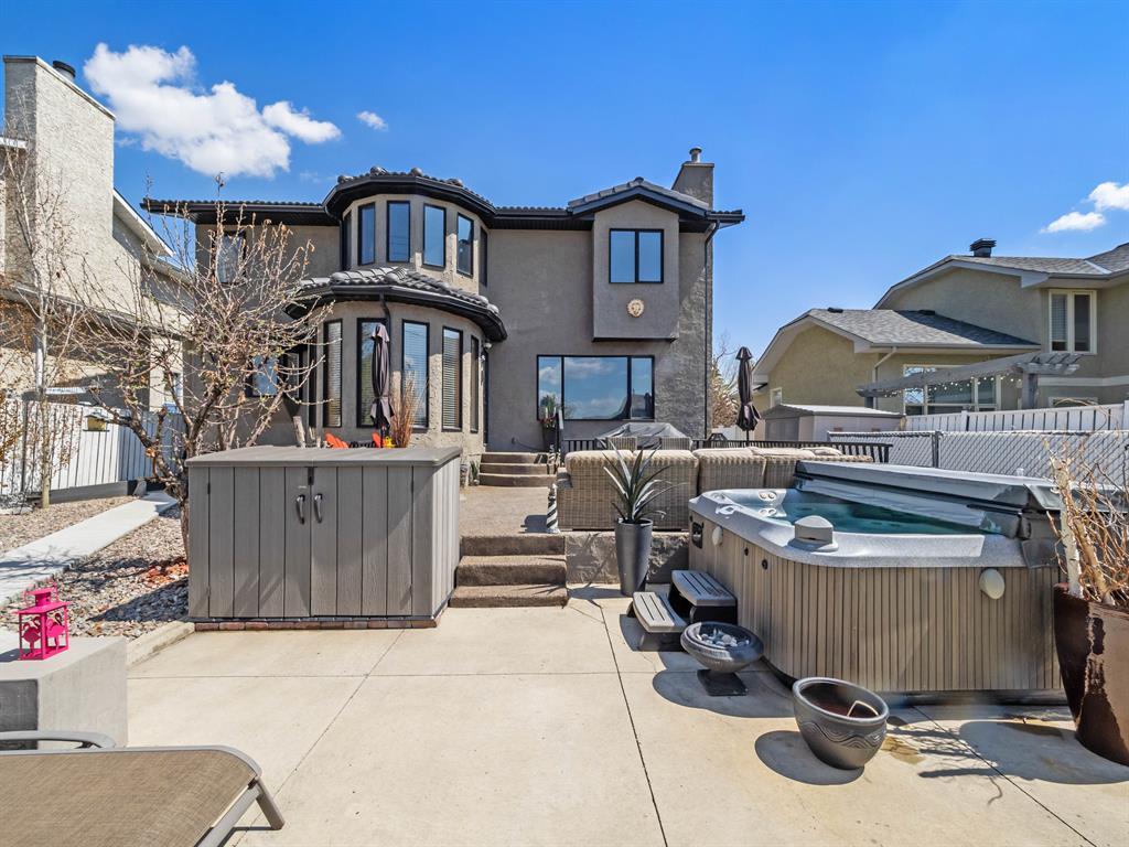 Your search ends here! This beautifully renovated AIR CONDITIONED family home is move-in ready, located in the desirable area of Woodbine. Pride in ownership is evident as you enter this 2460 sq ft PLUS 1335 SQ for a total of 3796 SQ FT of LIVING SPACE, this must be seen to be appreciated. Basement layout is perfect for home gym business w/ separate entrance & full bath/ changeroom to the basement (fitness equipment is negotiable). Walkout basement to your sunny, WEST facing backyard, Sierra stone massive deck w/ 2 NG connections & mountain views. 8 person hot tub w/Ozonator (no chemicals required), plastic fencing w/ new RV gates , RV cement pad and heated garage! Enjoy the 2 full sized apple trees and 1 crab apple tree. Cement surrounding the home, plus brick, stucco & cement roof are built to withstand our climate. Grand entrance highlighted w/ rock wall, rounded staircase leading up w/ iron railing. Main floor family room has cozy wood burning granite face fireplace w/ log lighter, & built in book shelves on both sides. Sunny kitchen has gleaming white cabinetry w/ soft close, granite counter tops, coffee bar, plus new Samsung double oven range & hoodfan. Main floor laundry ROOM, laundry sink plus cabinetry. Down the lighted staircase to entertainers delight. Blacked out home theatre room w/ fiber optic Star ceiling & mural, plus room for you to have your home gym. Wine cellar, plus full bath round off this basement. Frosted glass doors to your master retreat, plus ensuite, sunny west windows, walk up soaker tub, double sinks, plus stand up shower. Numerous upgrades throughout including Hunter Douglas blinds, Kohler toilets, under cabinet lighting, Levitron dimmer switches, California closets, fresh paint, pot lights, multi media intercom system, oak crown moldings, solid oak incl interior doors. Newly updated within the last 7 years are cement Roof Tiles, soffit, fascia, eavestrough & Elastometric stucco paint. This home was built with 2x6 construction, and ha s metal windows, which are better than vinyl. 2 hot water tanks, one being oversized. Convenient location! One min drive to Stony Trail, walking distance to Fish Creek Park and close to Glenmore Reservoir. Costco is 3 min, plus bus stop out front. Across the street from a top rated school, playground and field. Easy access to Tsuu Tina Trail, Kannanskis, Banff and unlimited outdoor activities. You must view this home to appreciate all it has to offer your family for years to come. (id:22211)