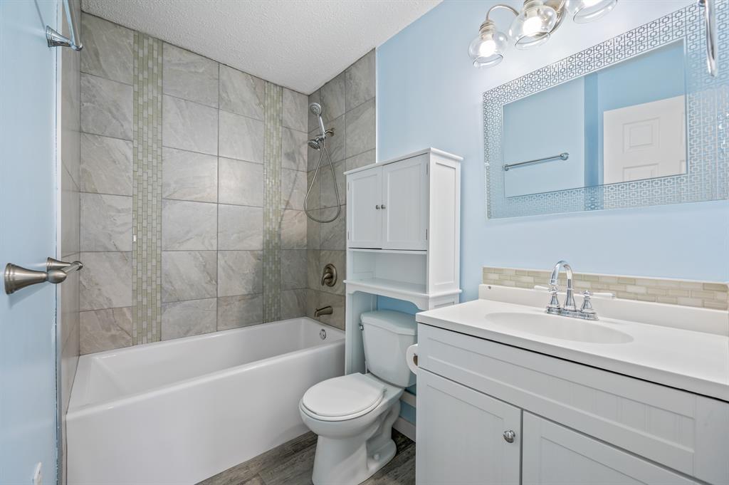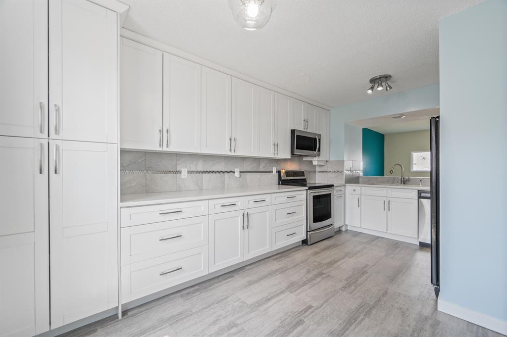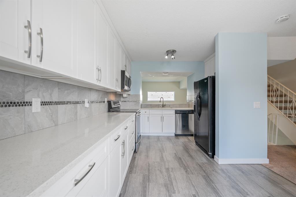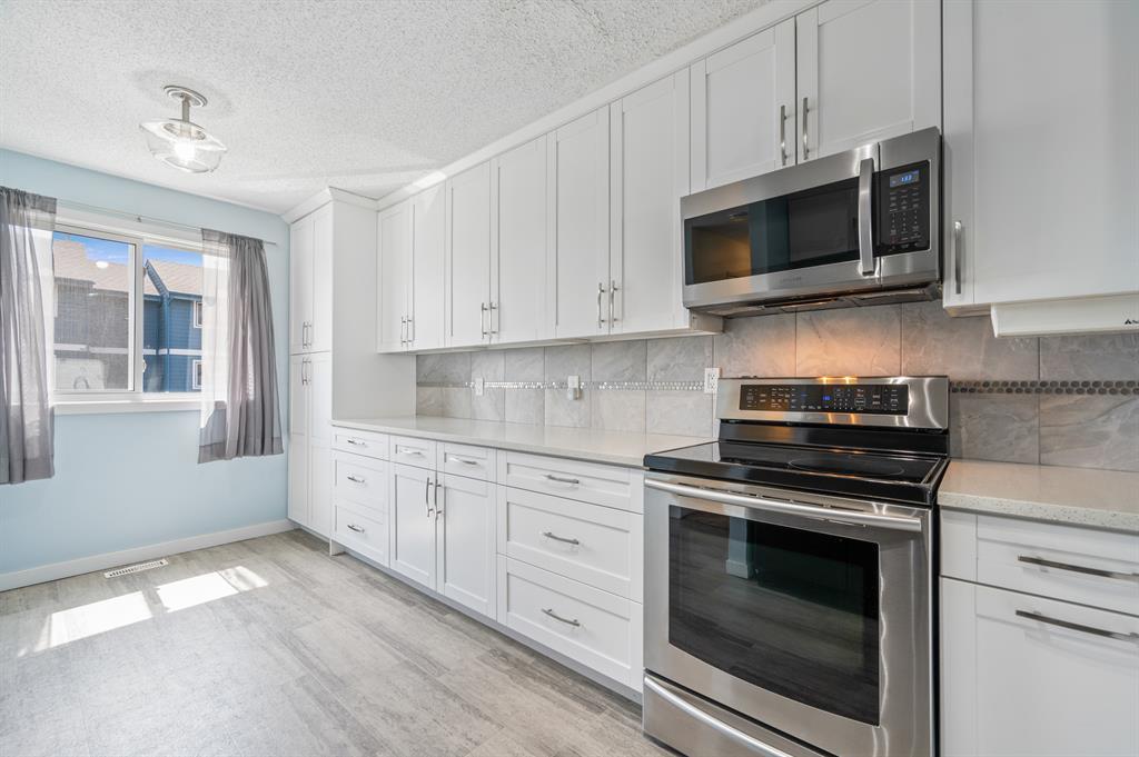 Welcome to this fantastic townhouse in Marborough! This bright and beautiful 3 bedroom 1 and half bath home is everything you've been looking for! Clean and bright with an updated kitchen featuring soft close cabinets, quartz countertops, new backsplash, pantry with pull outs, and a new lino floor. The living room is warm and cozy and is the perfect place to relax after a busy day. The main bathroom has a new tub, tile and cabinets and the powder room has been updated as well with new cabinets and floor. Upstairs is a large primary bedroom and two good size kid's bedrooms. Downstairs is fully finished and is a great place for a family room or games room. Oh and did we mention the great outdoor space featuring a patio with new engineered composite decking! A perfect place to have your morning coffee and watch the kids play. Other updates include a new patio door, new bedroom windows and kitchen windows, and new light fixtures. This unit also has a stacked washer and dryer which is only 4 years old! This home is in a great location and is walking distance to cafes, shopping, transit and schools. This one won't last long! Call your favorite realtor today for a showing! (id:22211)
