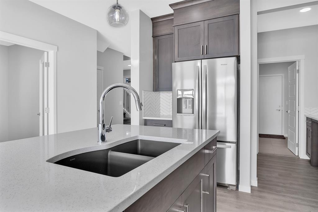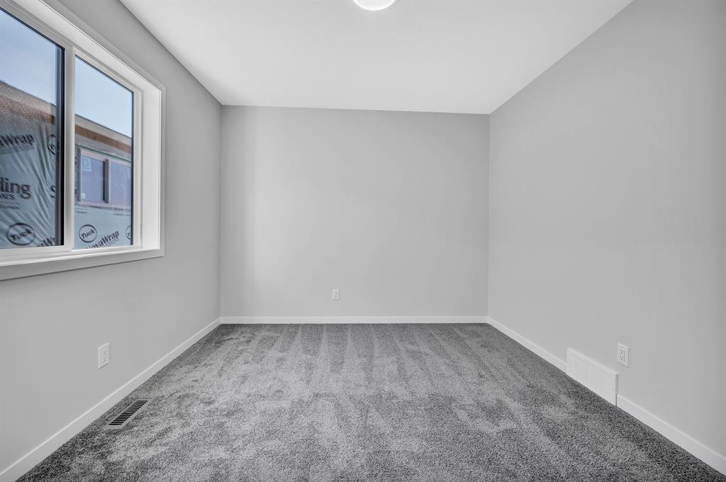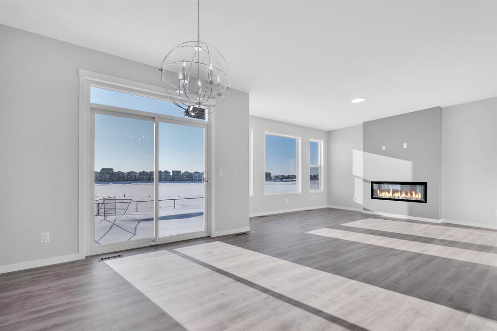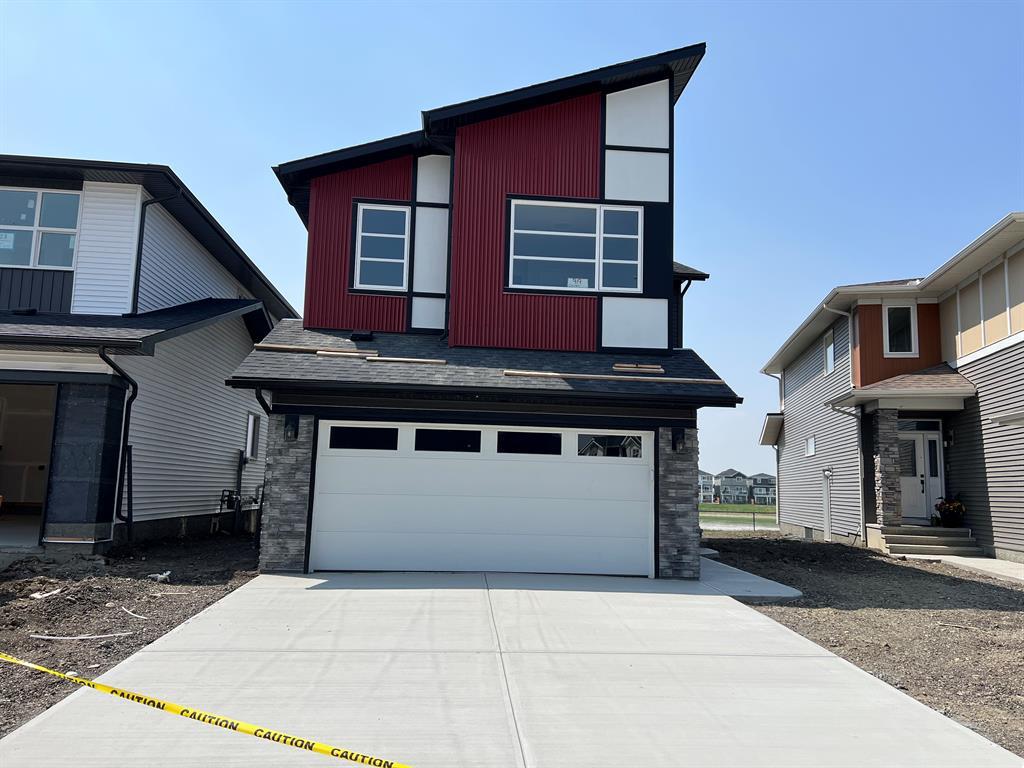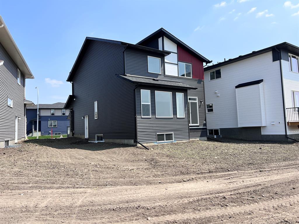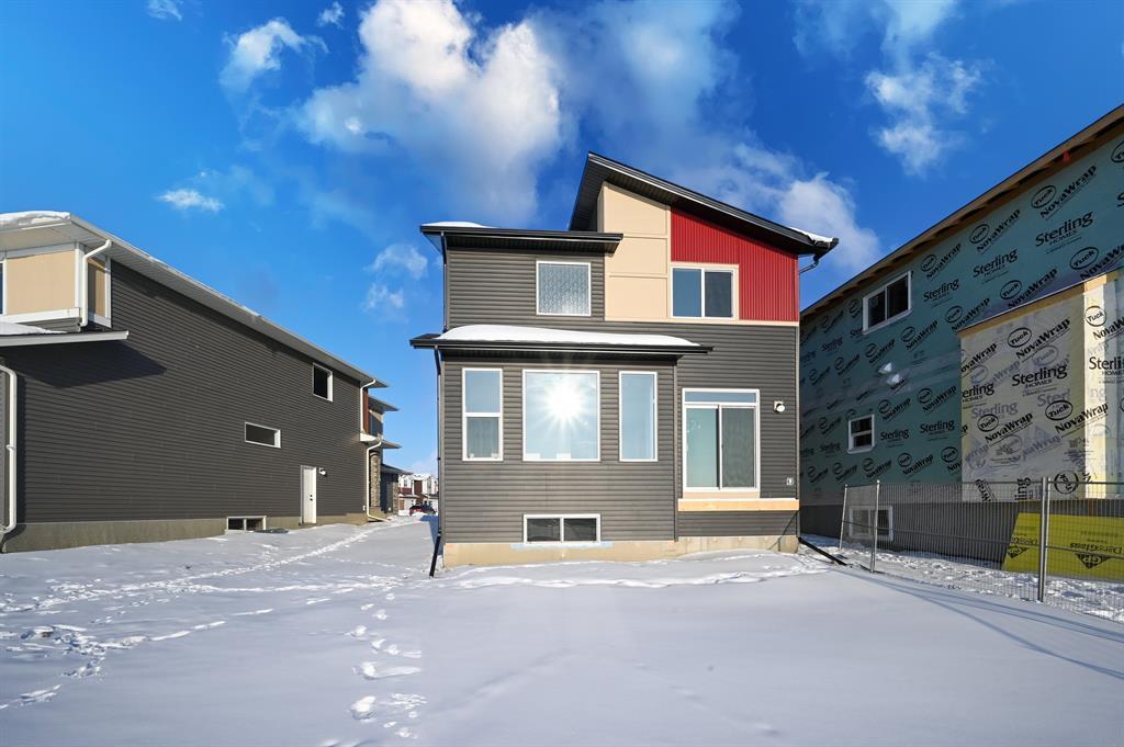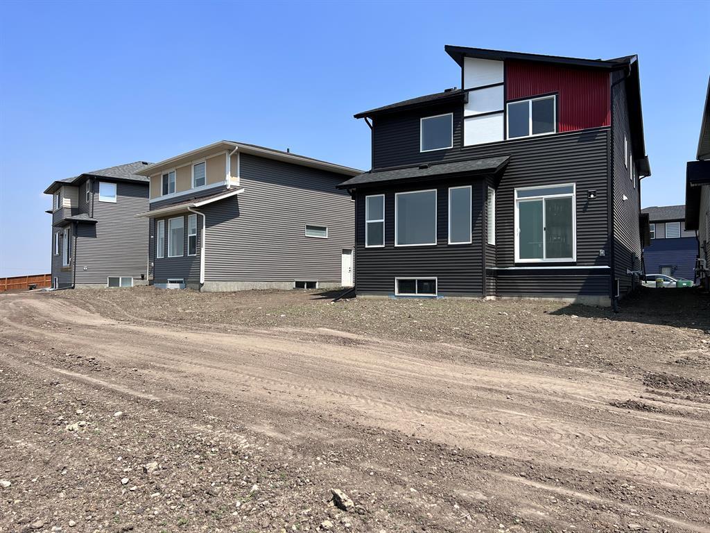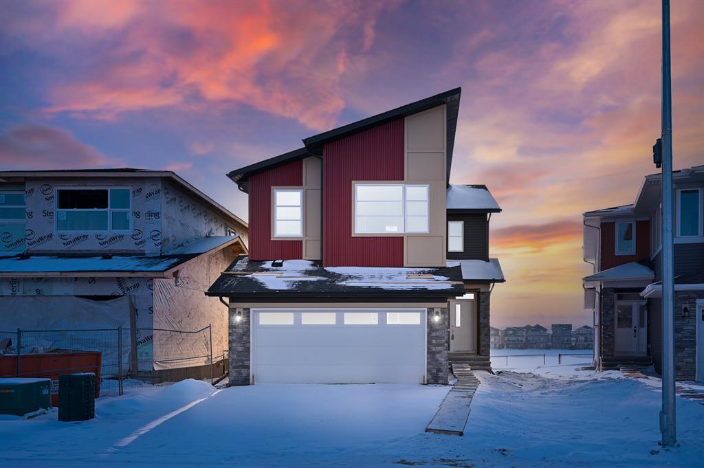 Welcome to BRAND NEW EAST FACING 2023 Built FRONT ATTACHED GARAGE home with MODERN ELEVATION & BACKING TO A BEAUTIFUL POND/GREEN AREA on a HUGE PIE SHAPED LOT (close to 6000 SqFt) in the young developing community of Cornerstone. The home offers total 5 BEDROOM & 3 FULL WASHROOMS with unfinished basement having SEPARATE SIDE ENTRANCE. MAIN FLOOR invites you with foyer, FULL 3PC WASHROOM, Den/Office/5th Bed room, elegant kitchen with tons of upgrades, WORK STATION STUDY AREA, dedicated pantry, dining area, bright spacious living room having electric fireplace with feature wall, mud room and front attached 2 car garage finishes the level. The home has MANY UPGRADES INCLUDING HIGH 9’ CEILING, LUXURY LVP FLOORING, QUARTZ COUNTERTOP, STAINLESS STEEL APPLIANCES, FULL HEIGHT CABINETS, CHIMNEY HOODFAN, GAS STOVE, BUILT IN MICROWAVE, UPGRADED BACKSPLASH, LIGHTING AND PLUMBING FIXTURES. UPPER FLOOR features CENTRAL BONUS ROOM, laundry room, main 4 pc bath, total 4 large bedrooms including master bedroom facing to pond with beautiful views having 5pc ensuite and extra large walk in closet. Unfinished huge basement with separate side entrance having high ceiling and 3 LARGE EGRESS WINDWOS is ready for your creative ideas. For buyers peace of mind, the HOME COMES WITH BUILDER AND ALBERTA NEW HOME WARRANTY. This UNIQUE PIE SHAPED WEST FACING BACKYARD ON CONVENTIONAL LOT WHILE BACKING TO POND IS RARE GEM IN THE NEIGHBOURHOOD. The home is Located On A Quiet Street, WHILE STEPS AWAY From Transit, Parks And Playgrounds. Cornerstone is FEW MINS DRIVE to all major highways, Cross iron mills, YYC airport, shopping, shopping, schools and other amenities. Don’t Wait..Won’t last long..Call your favorite realtor now. 3D/Virtual Tour Available. (id:22211)