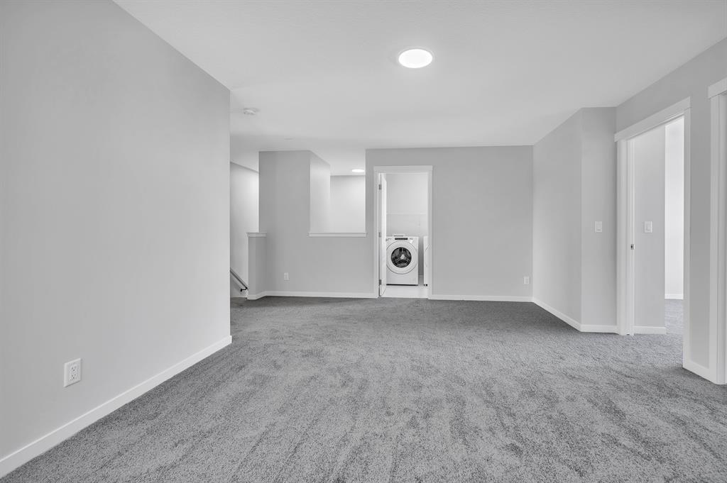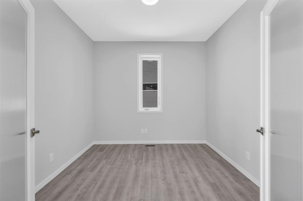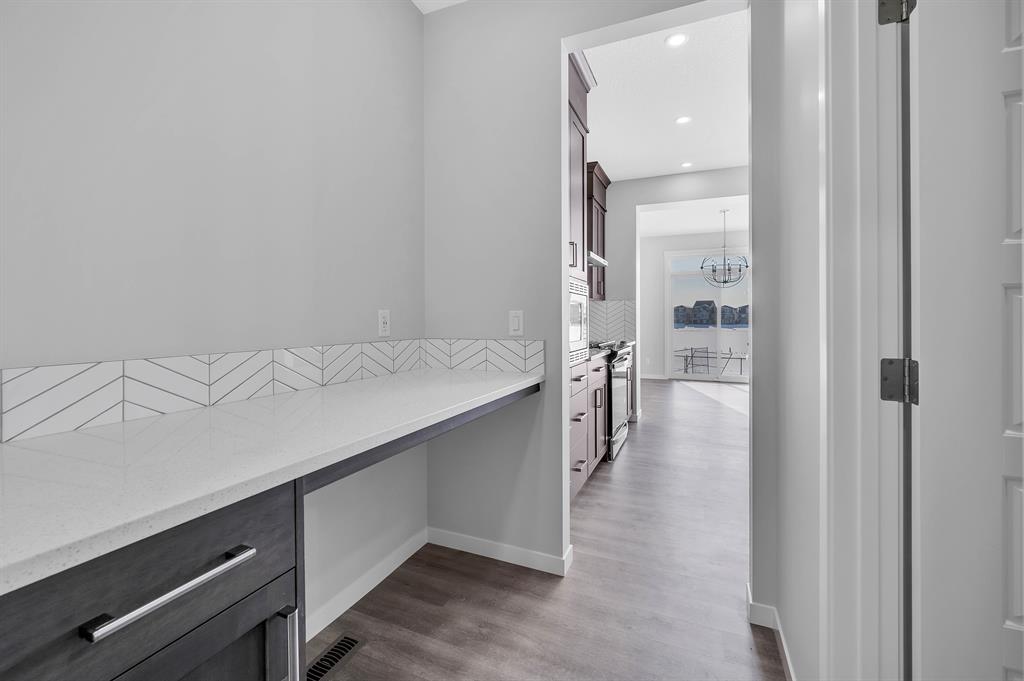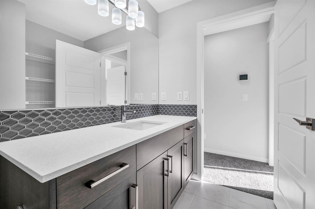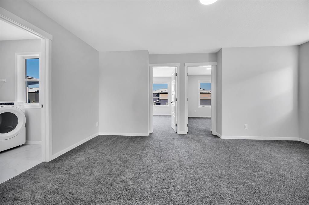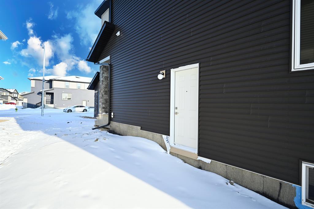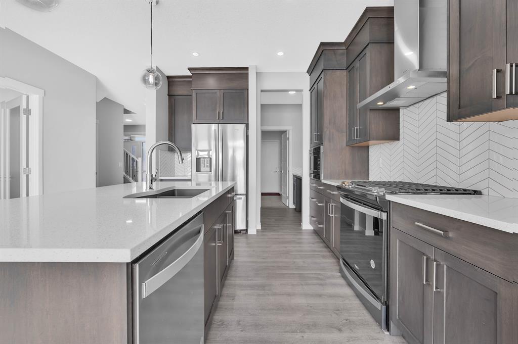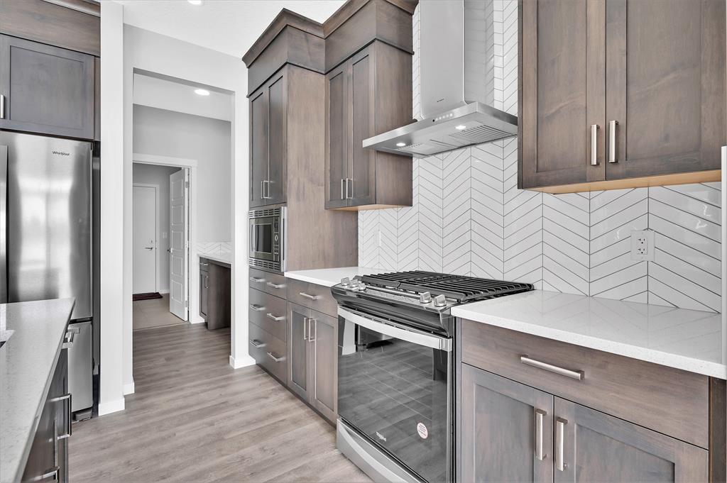 Welcome to BRAND NEW EAST FACING 2023 Built FRONT ATTACHED GARAGE home with MODERN ELEVATION & BACKING TO A BEAUTIFUL POND/GREEN AREA on a HUGE PIE SHAPED LOT (close to 6000 SqFt) in the young developing community of Cornerstone. The home offers total 5 BEDROOM & 3 FULL WASHROOMS with unfinished basement having SEPARATE SIDE ENTRANCE. MAIN FLOOR invites you with foyer, FULL 3PC WASHROOM, Den/Office/5th Bed room, elegant kitchen with tons of upgrades, WORK STATION STUDY AREA, dedicated pantry, dining area, bright spacious living room having electric fireplace with feature wall, mud room and front attached 2 car garage finishes the level. The home has MANY UPGRADES INCLUDING HIGH 9’ CEILING, LUXURY LVP FLOORING, QUARTZ COUNTERTOP, STAINLESS STEEL APPLIANCES, FULL HEIGHT CABINETS, CHIMNEY HOODFAN, GAS STOVE, BUILT IN MICROWAVE, UPGRADED BACKSPLASH, LIGHTING AND PLUMBING FIXTURES. UPPER FLOOR features CENTRAL BONUS ROOM, laundry room, main 4 pc bath, total 4 large bedrooms including master bedroom facing to pond with beautiful views having 5pc ensuite and extra large walk in closet. Unfinished huge basement with separate side entrance having high ceiling and 3 LARGE EGRESS WINDWOS is ready for your creative ideas. For buyers peace of mind, the HOME COMES WITH BUILDER AND ALBERTA NEW HOME WARRANTY. This UNIQUE PIE SHAPED WEST FACING BACKYARD ON CONVENTIONAL LOT WHILE BACKING TO POND IS RARE GEM IN THE NEIGHBOURHOOD. The home is Located On A Quiet Street, WHILE STEPS AWAY From Transit, Parks And Playgrounds. Cornerstone is FEW MINS DRIVE to all major highways, Cross iron mills, YYC airport, shopping, shopping, schools and other amenities. Don’t Wait..Won’t last long..Call your favorite realtor now. 3D/Virtual Tour Available. (id:22211)