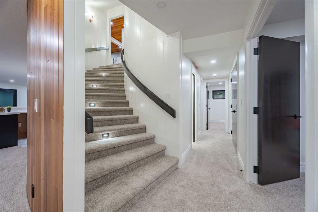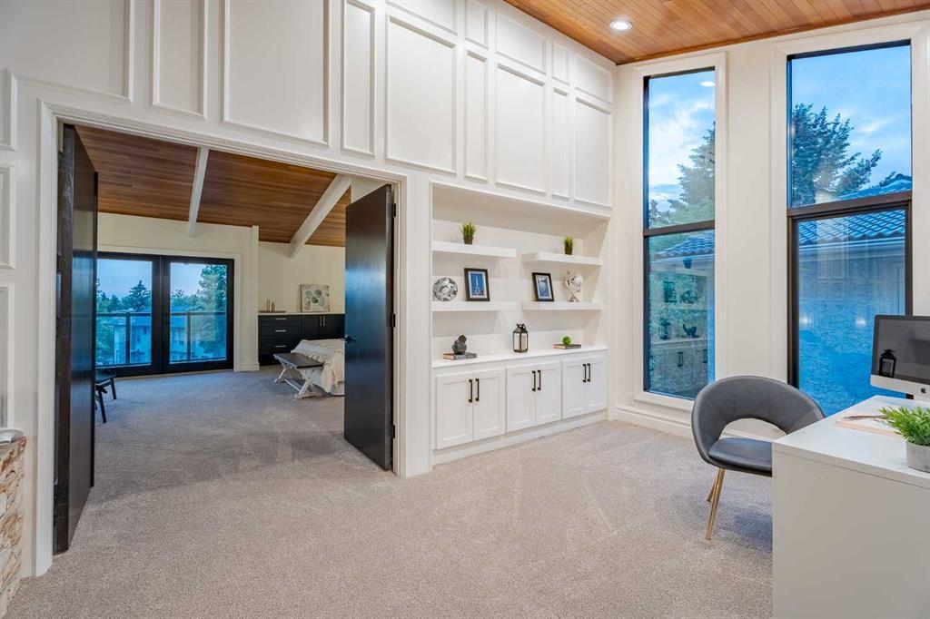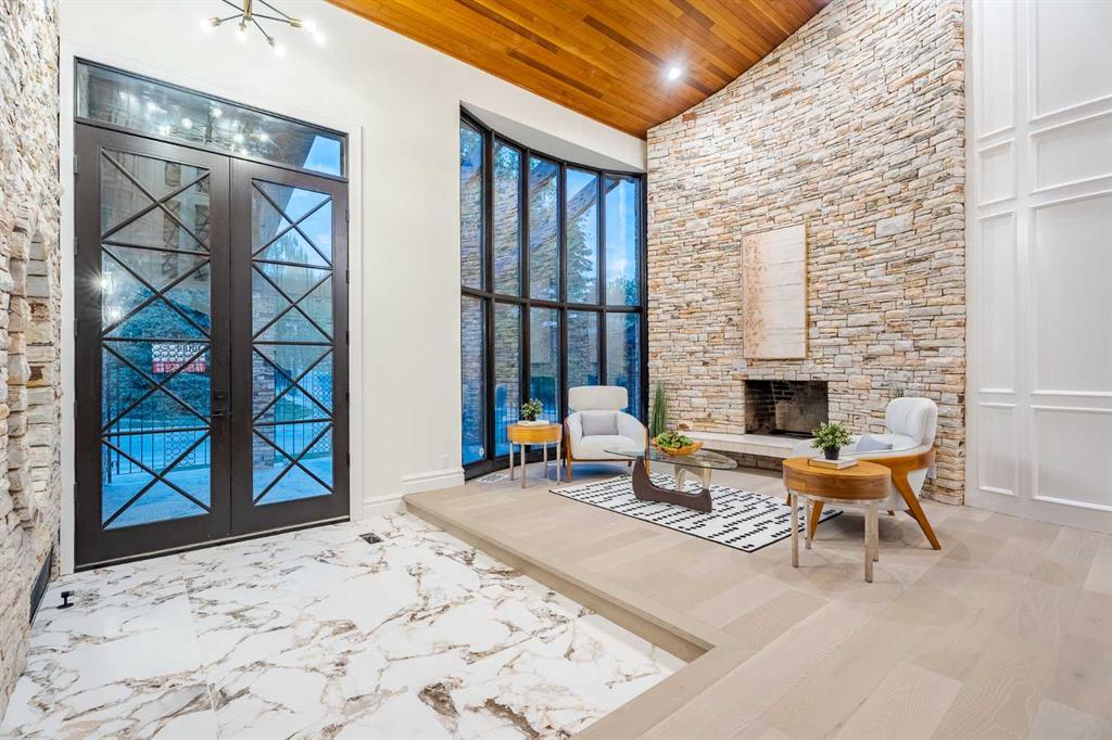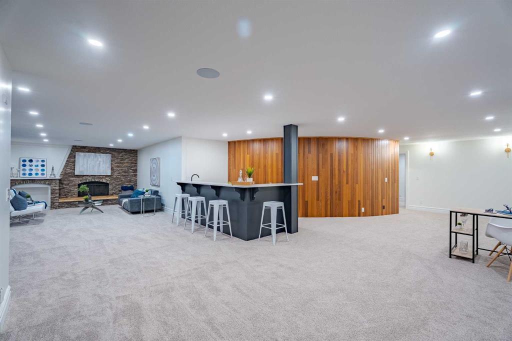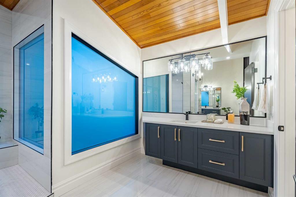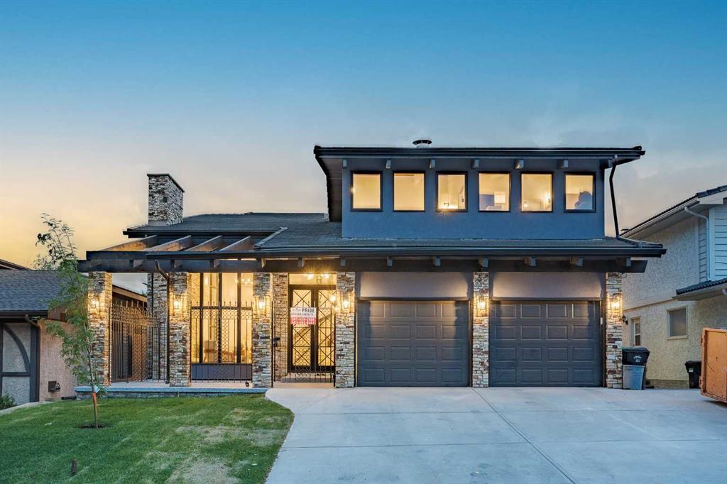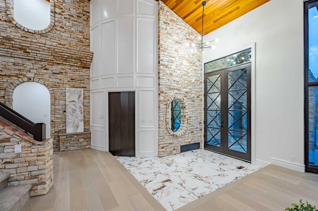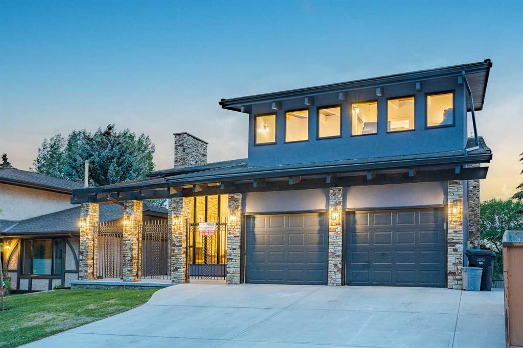 Every dream is fulfilled in this stunning modern-day Edgemont castle. Inside, a breathtaking family room is the start of nearly 5500 sq. ft. of living space. Soaring shiplap ceilings and a circular skylight bring the sky inside. Featuring metal clad windows throughout with a value of over $100,000. Curved, panelled walls are an engineering marvel, while stone elements in the hearth of the wood-burning fireplace and the stairway ground the space. Oval window peeks and arches in the feature walls enhance the castle's aesthetic. Curved windows along the front and dining area are a premium design choice that adds to the juxtaposition. In the kitchen, a waterfall island is a gorgeous centrepiece. The gas range has a pot filler faucet and a custom hood fan, and a hidden panel French door refrigerator is a coveted selection. Next to the breakfast nook, a glass tasting room displays your fine wines and spirits. French doors to the deck and picture windows create an open-air feel. The conversation will flow around the gas fireplace in the sunken living area. The powder room is beautifully appointed, and the oversized double attached garage entry contains a laundry room to complete this level. Upstairs, 22-foot shiplap ceilings and open rafters are both cozy and expansive. The primary retreat is a serene oasis with built-in dressers, a sitting area, and a balcony. A dressing room features a vanity with a sink opposite the ample walk-in closet. An epic shower dominates the ensuite, with a bench, a window, rainfall and angled shower-heads, and body jets. The freestanding soaker tub enjoys a secluded corner and a private laundry room here. The second and third bedrooms have walk-in closets and share Jack and Jill access to a phenomenal bathroom with a triple vanity and a separate wash closet holding the toilet, tub, and shower. A curved anteroom is an ideal desk space next to the bedrooms, and there is a fantastic den at the head of the stairs. Sconces line the stairwell curving down to the walkout basement, where a rec area with a wet bar and a covered patio are a quintessential setup for entertaining. A custom theatre room offers the ultimate movie night setting. Two more bedrooms have a Jack and Jill ensuite and a powder room, too. The utility area has four furnaces: main floor, primary bedroom, top level, and basement. A cold room is also ideal for a more extensive wine collection or pantry. Outside, the yard backs onto a green space, doubling the lawn area, and you have phenomenal views of westward skies from the patio or the deck. Set on the edge of Edgemont Estates, there is a sprawling network of parks and pathways to all sides. Iconic Nose Hill Park is within walking distance, as is the local athletic centre. Nearby, Northland Mall, Dalhousie, and Crowfoot Crossing offer a plethora of shops and dining options, and commuters will love the easy drive to downtown. Of course, the mountains are also a draw; you can be out of town in less than ten minutes. See this one today! (id:22211)