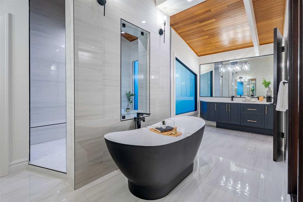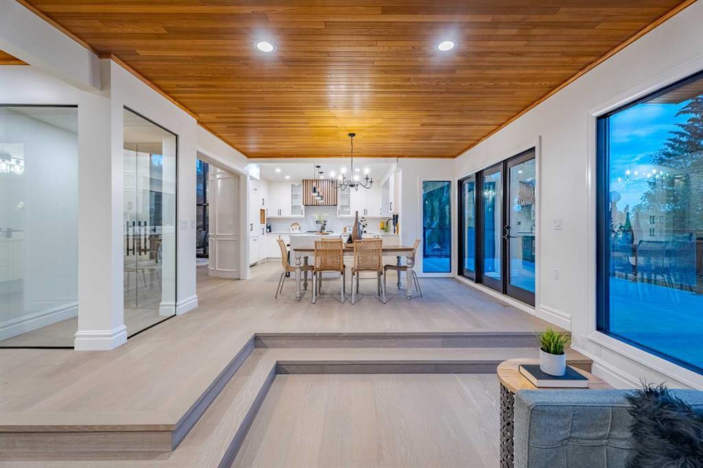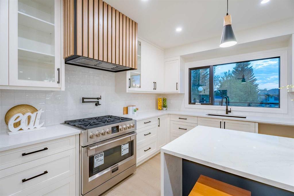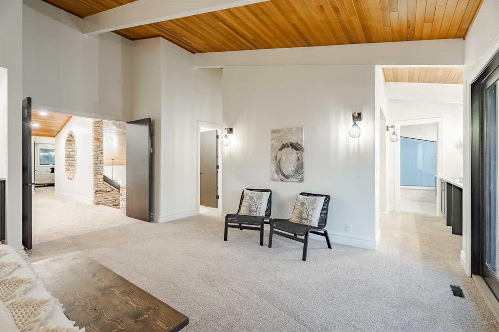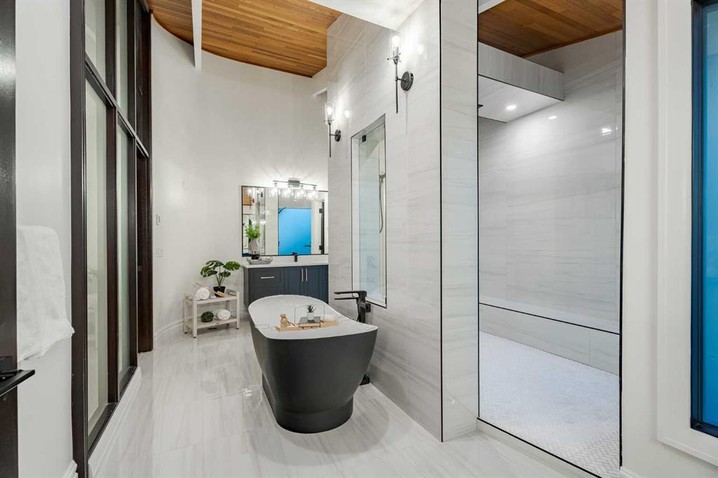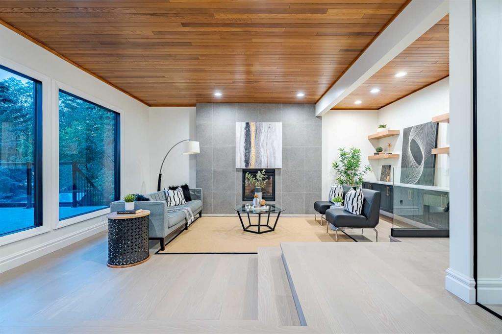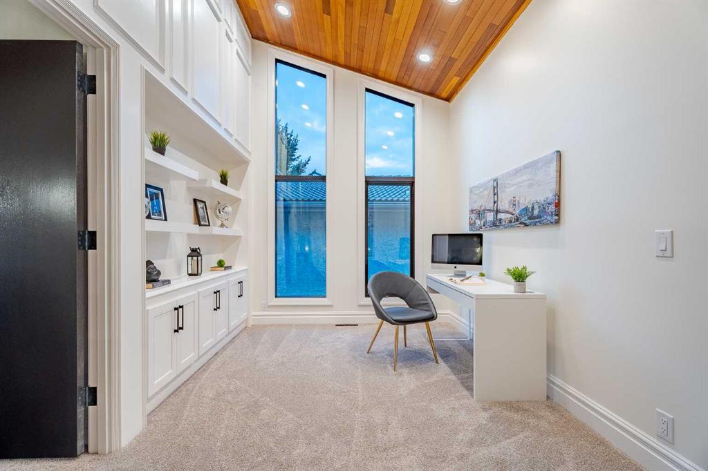 Every dream is fulfilled in this stunning modern-day Edgemont castle. Inside, a breathtaking family room is the start of nearly 5500 sq. ft. of living space. Soaring shiplap ceilings and a circular skylight bring the sky inside. Featuring metal clad windows throughout with a value of over $100,000. Curved, panelled walls are an engineering marvel, while stone elements in the hearth of the wood-burning fireplace and the stairway ground the space. Oval window peeks and arches in the feature walls enhance the castle's aesthetic. Curved windows along the front and dining area are a premium design choice that adds to the juxtaposition. In the kitchen, a waterfall island is a gorgeous centrepiece. The gas range has a pot filler faucet and a custom hood fan, and a hidden panel French door refrigerator is a coveted selection. Next to the breakfast nook, a glass tasting room displays your fine wines and spirits. French doors to the deck and picture windows create an open-air feel. The conversation will flow around the gas fireplace in the sunken living area. The powder room is beautifully appointed, and the oversized double attached garage entry contains a laundry room to complete this level. Upstairs, 22-foot shiplap ceilings and open rafters are both cozy and expansive. The primary retreat is a serene oasis with built-in dressers, a sitting area, and a balcony. A dressing room features a vanity with a sink opposite the ample walk-in closet. An epic shower dominates the ensuite, with a bench, a window, rainfall and angled shower-heads, and body jets. The freestanding soaker tub enjoys a secluded corner and a private laundry room here. The second and third bedrooms have walk-in closets and share Jack and Jill access to a phenomenal bathroom with a triple vanity and a separate wash closet holding the toilet, tub, and shower. A curved anteroom is an ideal desk space next to the bedrooms, and there is a fantastic den at the head of the stairs. Sconces line the stairwell curving down to the walkout basement, where a rec area with a wet bar and a covered patio are a quintessential setup for entertaining. A custom theatre room offers the ultimate movie night setting. Two more bedrooms have a Jack and Jill ensuite and a powder room, too. The utility area has four furnaces: main floor, primary bedroom, top level, and basement. A cold room is also ideal for a more extensive wine collection or pantry. Outside, the yard backs onto a green space, doubling the lawn area, and you have phenomenal views of westward skies from the patio or the deck. Set on the edge of Edgemont Estates, there is a sprawling network of parks and pathways to all sides. Iconic Nose Hill Park is within walking distance, as is the local athletic centre. Nearby, Northland Mall, Dalhousie, and Crowfoot Crossing offer a plethora of shops and dining options, and commuters will love the easy drive to downtown. Of course, the mountains are also a draw; you can be out of town in less than ten minutes. See this one today! (id:22211)