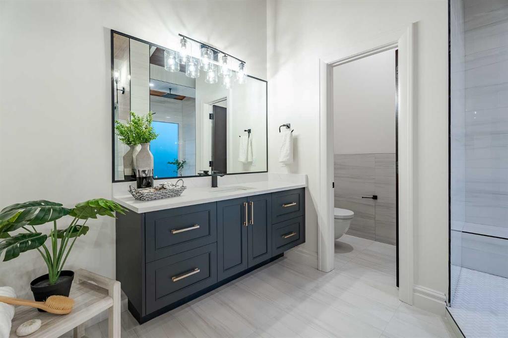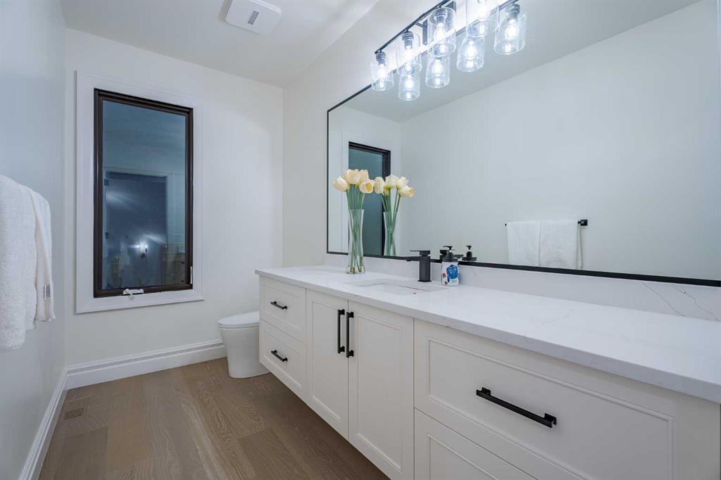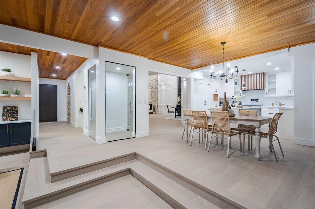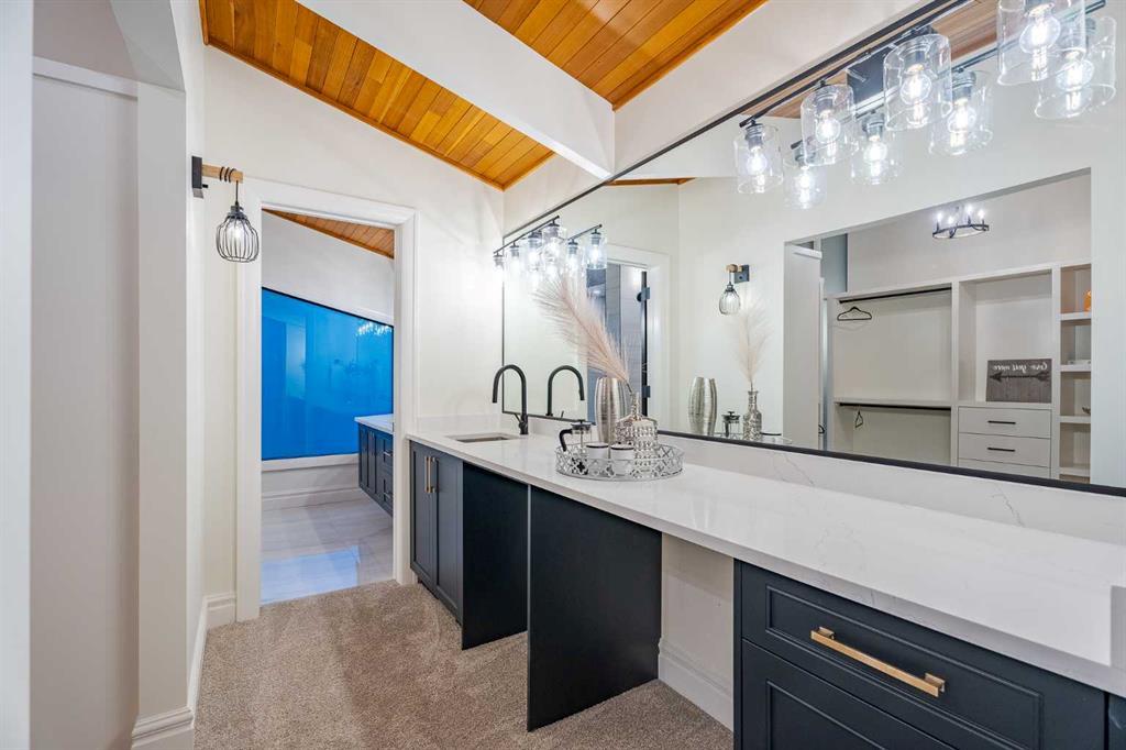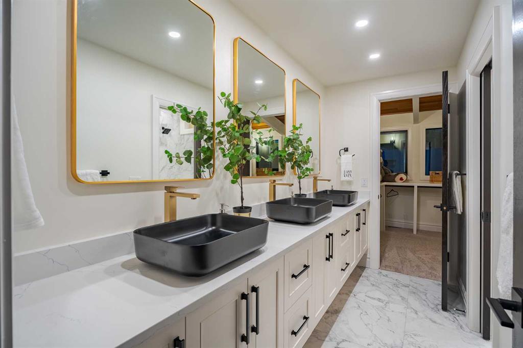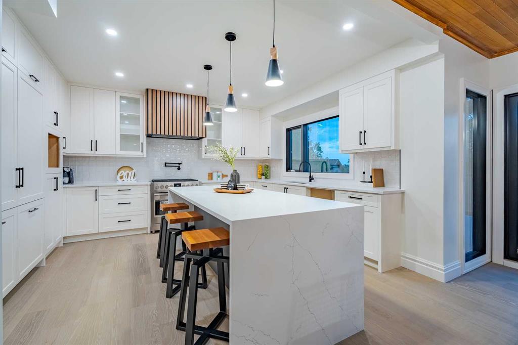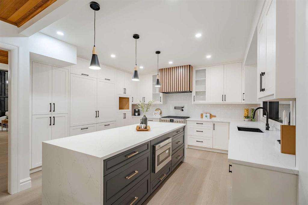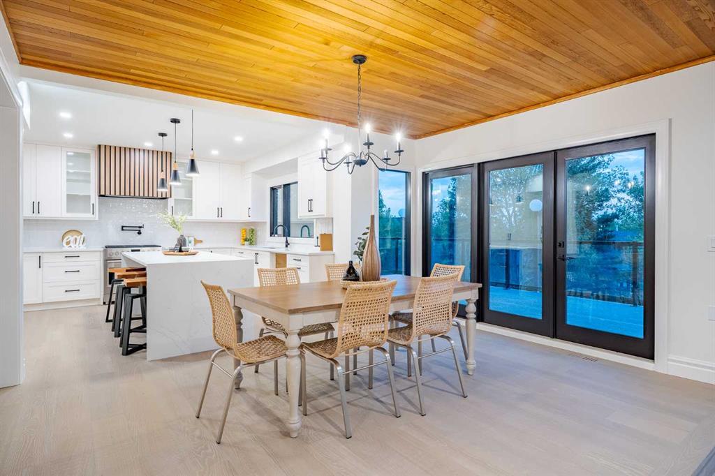 Every dream is fulfilled in this stunning modern-day Edgemont castle. Inside, a breathtaking family room is the start of nearly 5500 sq. ft. of living space. Soaring shiplap ceilings and a circular skylight bring the sky inside. Featuring metal clad windows throughout with a value of over $100,000. Curved, panelled walls are an engineering marvel, while stone elements in the hearth of the wood-burning fireplace and the stairway ground the space. Oval window peeks and arches in the feature walls enhance the castle's aesthetic. Curved windows along the front and dining area are a premium design choice that adds to the juxtaposition. In the kitchen, a waterfall island is a gorgeous centrepiece. The gas range has a pot filler faucet and a custom hood fan, and a hidden panel French door refrigerator is a coveted selection. Next to the breakfast nook, a glass tasting room displays your fine wines and spirits. French doors to the deck and picture windows create an open-air feel. The conversation will flow around the gas fireplace in the sunken living area. The powder room is beautifully appointed, and the oversized double attached garage entry contains a laundry room to complete this level. Upstairs, 22-foot shiplap ceilings and open rafters are both cozy and expansive. The primary retreat is a serene oasis with built-in dressers, a sitting area, and a balcony. A dressing room features a vanity with a sink opposite the ample walk-in closet. An epic shower dominates the ensuite, with a bench, a window, rainfall and angled shower-heads, and body jets. The freestanding soaker tub enjoys a secluded corner and a private laundry room here. The second and third bedrooms have walk-in closets and share Jack and Jill access to a phenomenal bathroom with a triple vanity and a separate wash closet holding the toilet, tub, and shower. A curved anteroom is an ideal desk space next to the bedrooms, and there is a fantastic den at the head of the stairs. Sconces line the stairwell curving down to the walkout basement, where a rec area with a wet bar and a covered patio are a quintessential setup for entertaining. A custom theatre room offers the ultimate movie night setting. Two more bedrooms have a Jack and Jill ensuite and a powder room, too. The utility area has four furnaces: main floor, primary bedroom, top level, and basement. A cold room is also ideal for a more extensive wine collection or pantry. Outside, the yard backs onto a green space, doubling the lawn area, and you have phenomenal views of westward skies from the patio or the deck. Set on the edge of Edgemont Estates, there is a sprawling network of parks and pathways to all sides. Iconic Nose Hill Park is within walking distance, as is the local athletic centre. Nearby, Northland Mall, Dalhousie, and Crowfoot Crossing offer a plethora of shops and dining options, and commuters will love the easy drive to downtown. Of course, the mountains are also a draw; you can be out of town in less than ten minutes. See this one today! (id:22211)