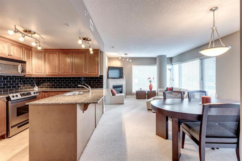 EXECUTIVE CONDO IN FIVE WEST WITH BEAUTIFUL CITY VIEWS AND GLORIOUS SUNSHINE FROM THIS SOUTH FACING UNIT! THIS MANAHATTAN FLOOR PLAN IS FANTASTIC - 2 BEDROOMS, 2 BATHROOMS, GOURMET KITCHEN WITH A GRANITE ISLAND-GREAT FOR ENTERTAINING! UPGRADES include Granite Vanities, Solid wood Maple Cabinets with Engineered Hardwood, Commercial Grade UV Protected Windows, Gas Fireplace, Custom Blinds, Laundry Room, Lots of Storage in the Unit plus a large separate storage locker, 1 Titled Parking Stall, Large Storage Locker on L2, Central A/C, Acoustic Sound Proofing, ETC. This Building offers daily concierge service, building manager, visitor parking and a party room. THIS LOCATION IS EXCEPTIONAL in WEST END DOWNTOWN, CLOSE TO YOUR DOWNTOWN OFFICE, SHOPPING, RESTAURANTS, COFFEE SHOPS AND JUST STEPS TO THE BOW RIVER PATHWAY - GREAT FOR BIKE RIDES, JOGS or WALKS! ALSO A GREAT INVESTMENT OPPORTUNITY TO OWN A LUXURY RENTAL. CALL TO VIEW THIS AMAZING PROPERTY! YOU WON'T WANT TO MISS THIS ONE! (id:22211)